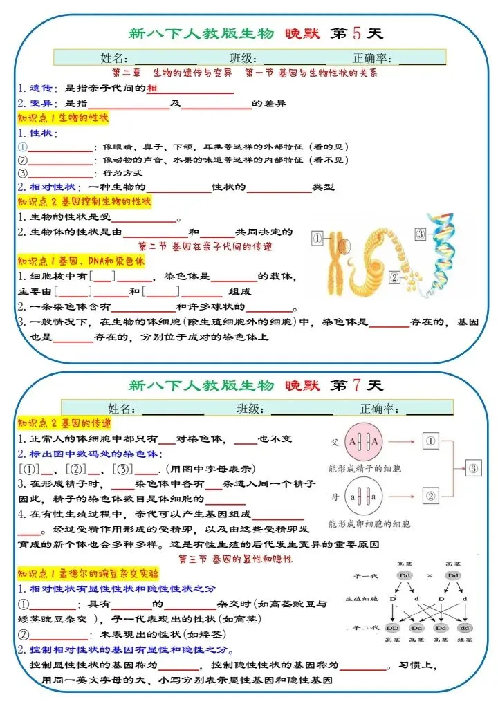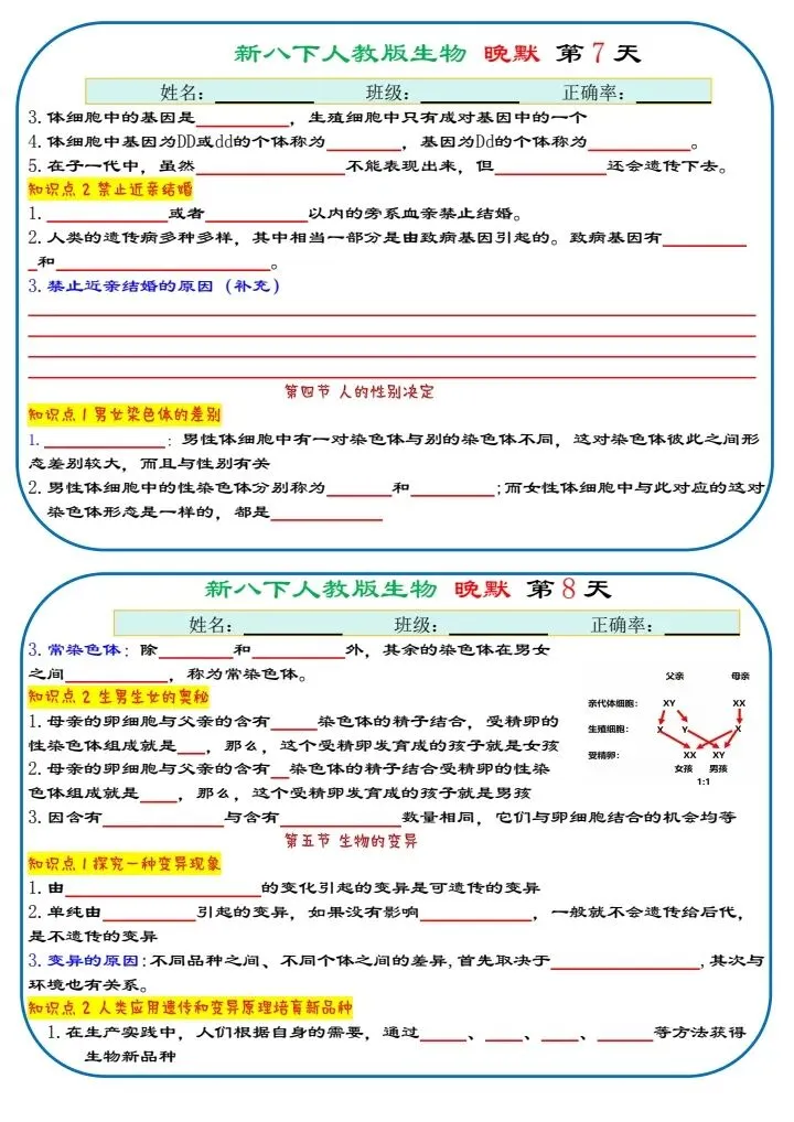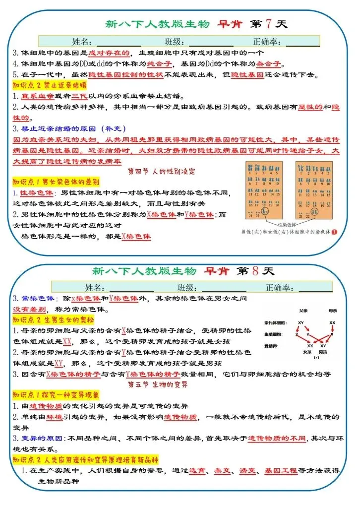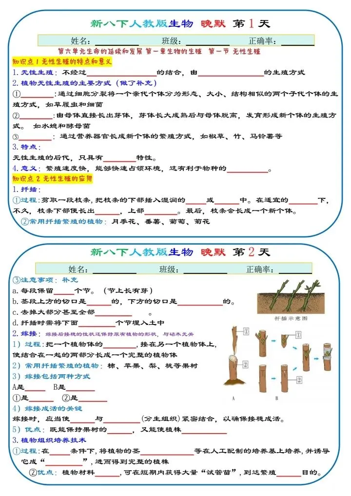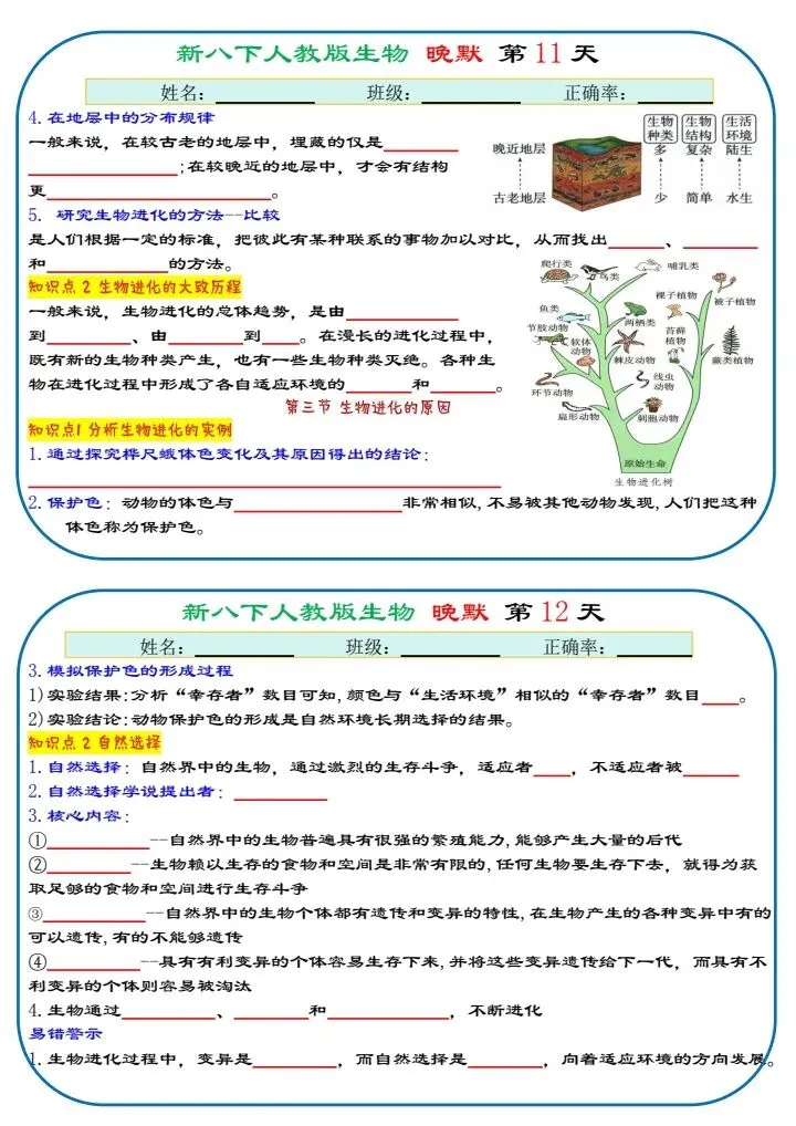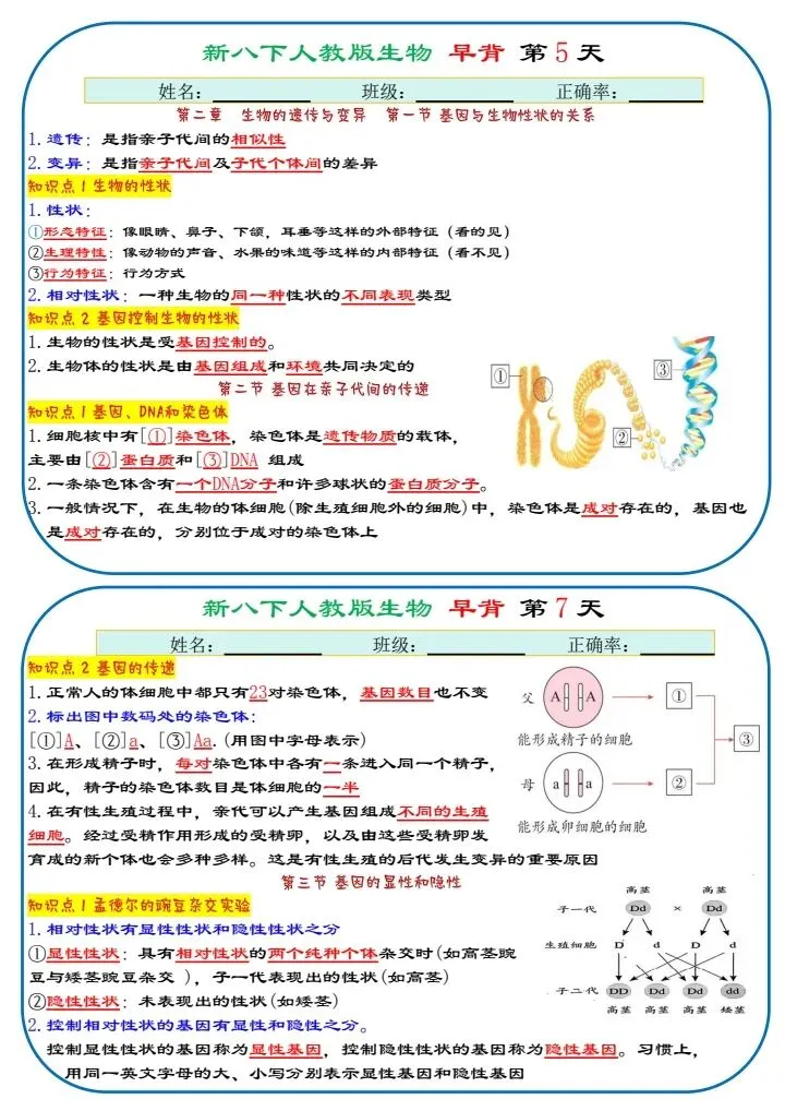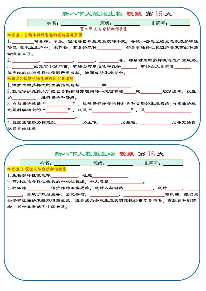 八下生物|2026年春期最新版八年级下册生物寒假预习(默写版+背诵版)小纸条,提分必备!预习必备!完整电子版可打印!