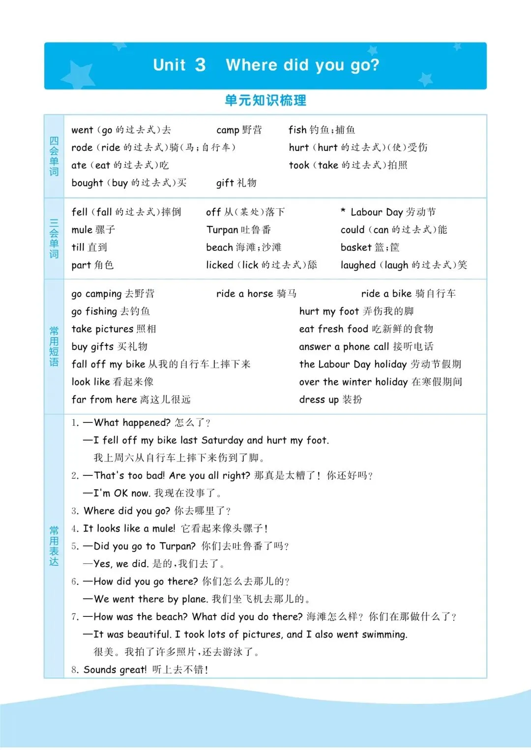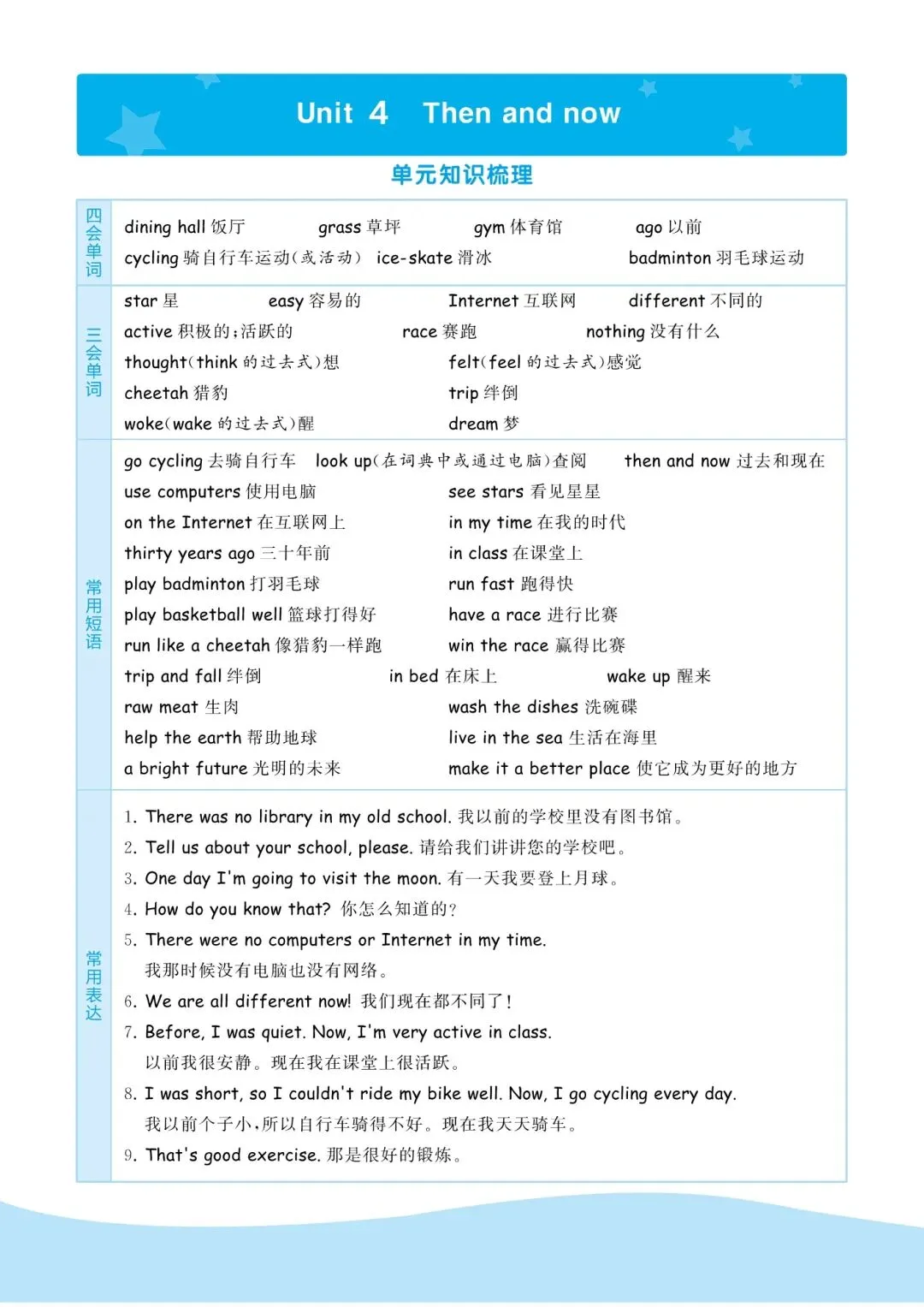 六年级下册人教PEP版英语《单元必备知识点汇总|词汇+短语+句子表达+语音+词汇分类汇总+句型》,可打印