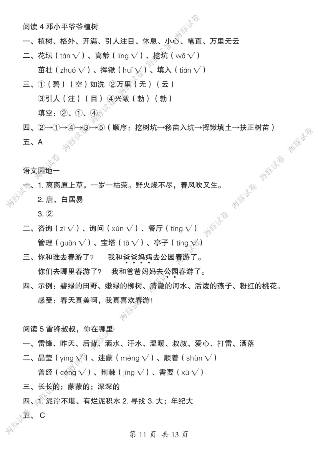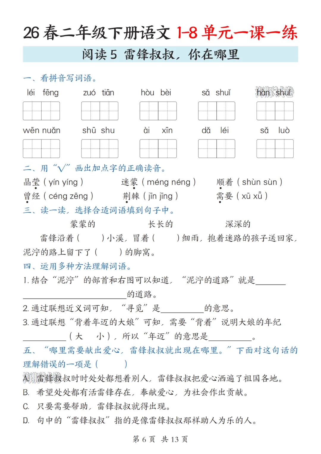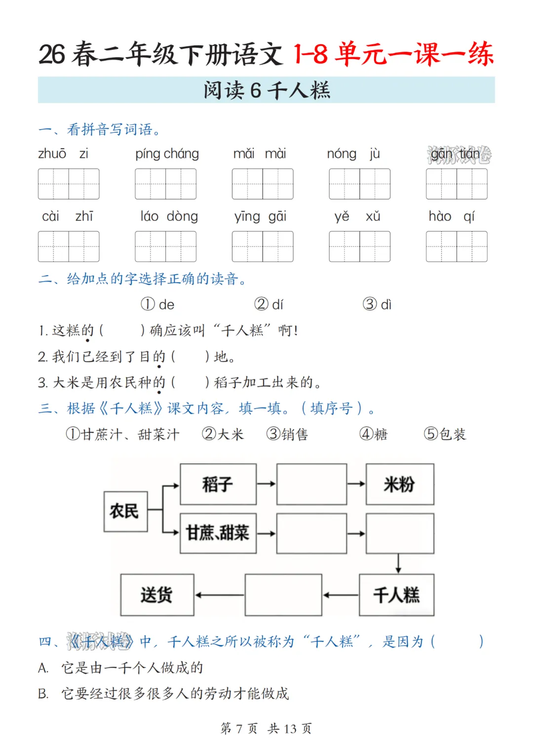 二年级下册语文人教部编版【第1-8单元一课一练】| 完整高清可打印