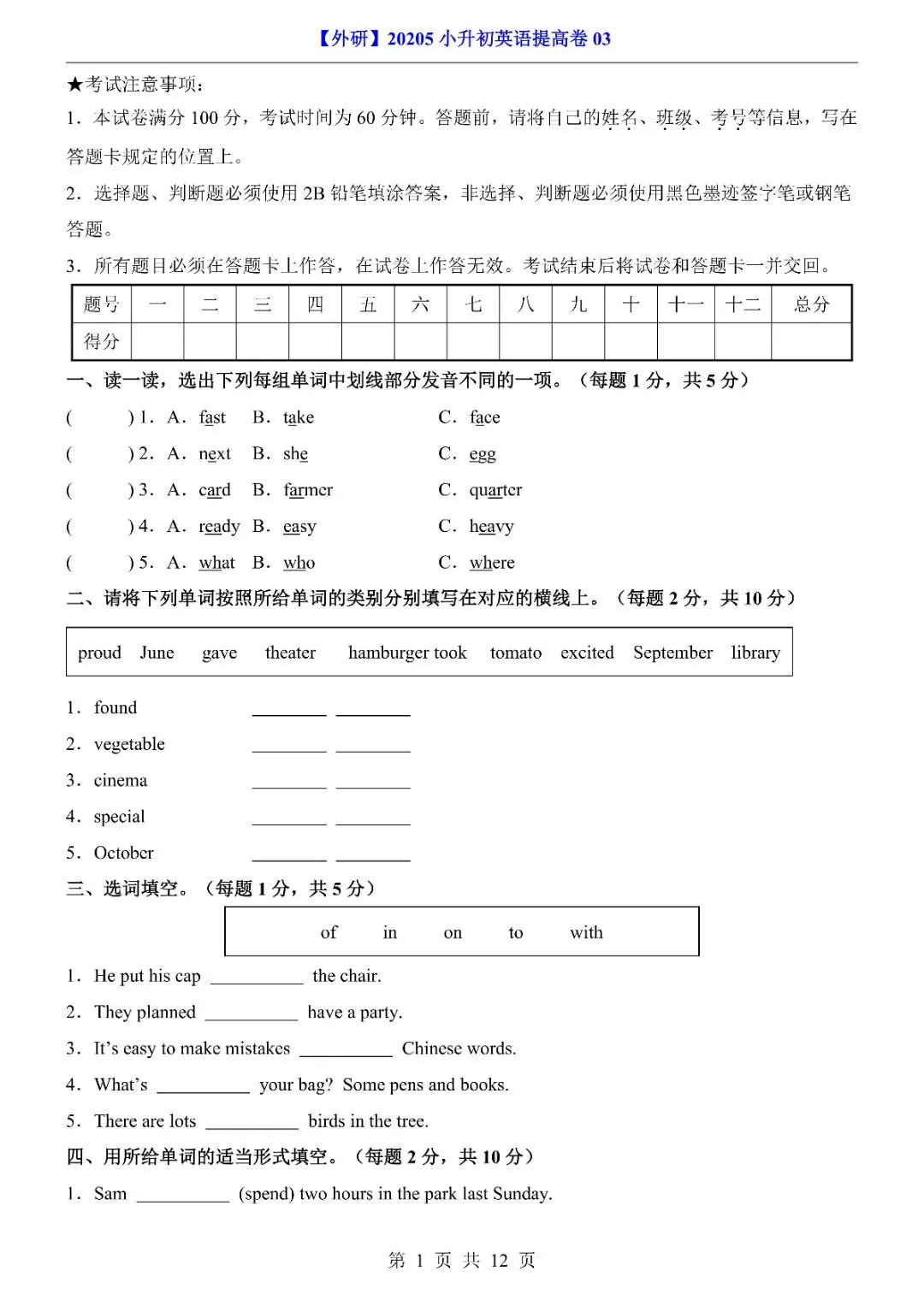 26年春《小升初外研英语提高卷03》完整电子版