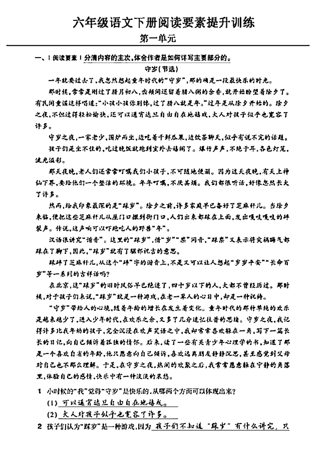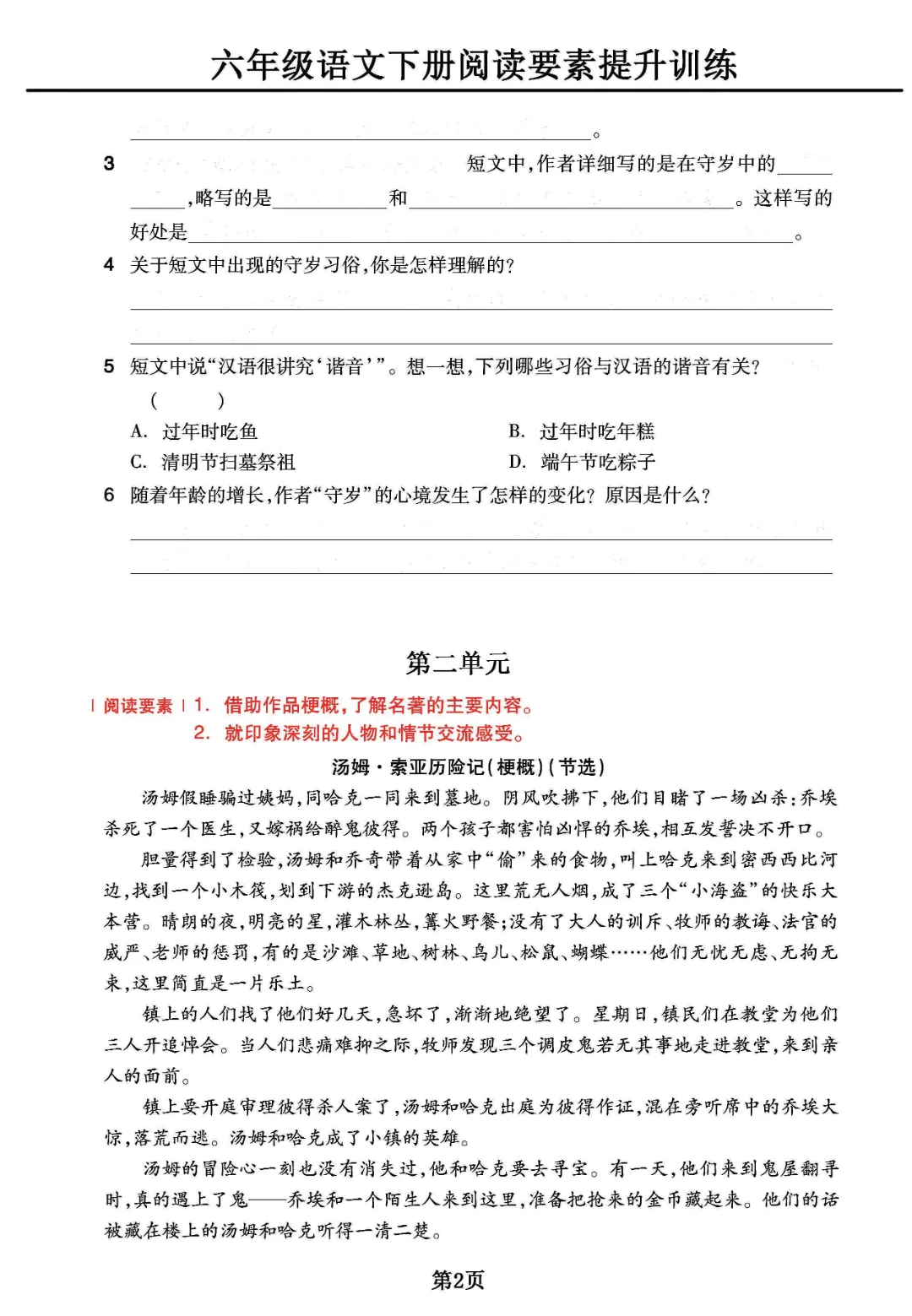 今天为大家分享《六年级下册语文阅读素养提升训练》电子版可打印。这份阅读要素提升训练,紧扣教材单元阅读核心要求,聚焦内容主次梳理、名著梗概解读、人物情节分析等关键能力点设计练习。精准贴合六年级阅读素养提升需求,既能帮助孩子吃透单元阅读要素,掌握阅读答题逻辑,又能深化文本理解与名著认知,是小升初阶段阅读专项巩固、能力进阶的核心资料。