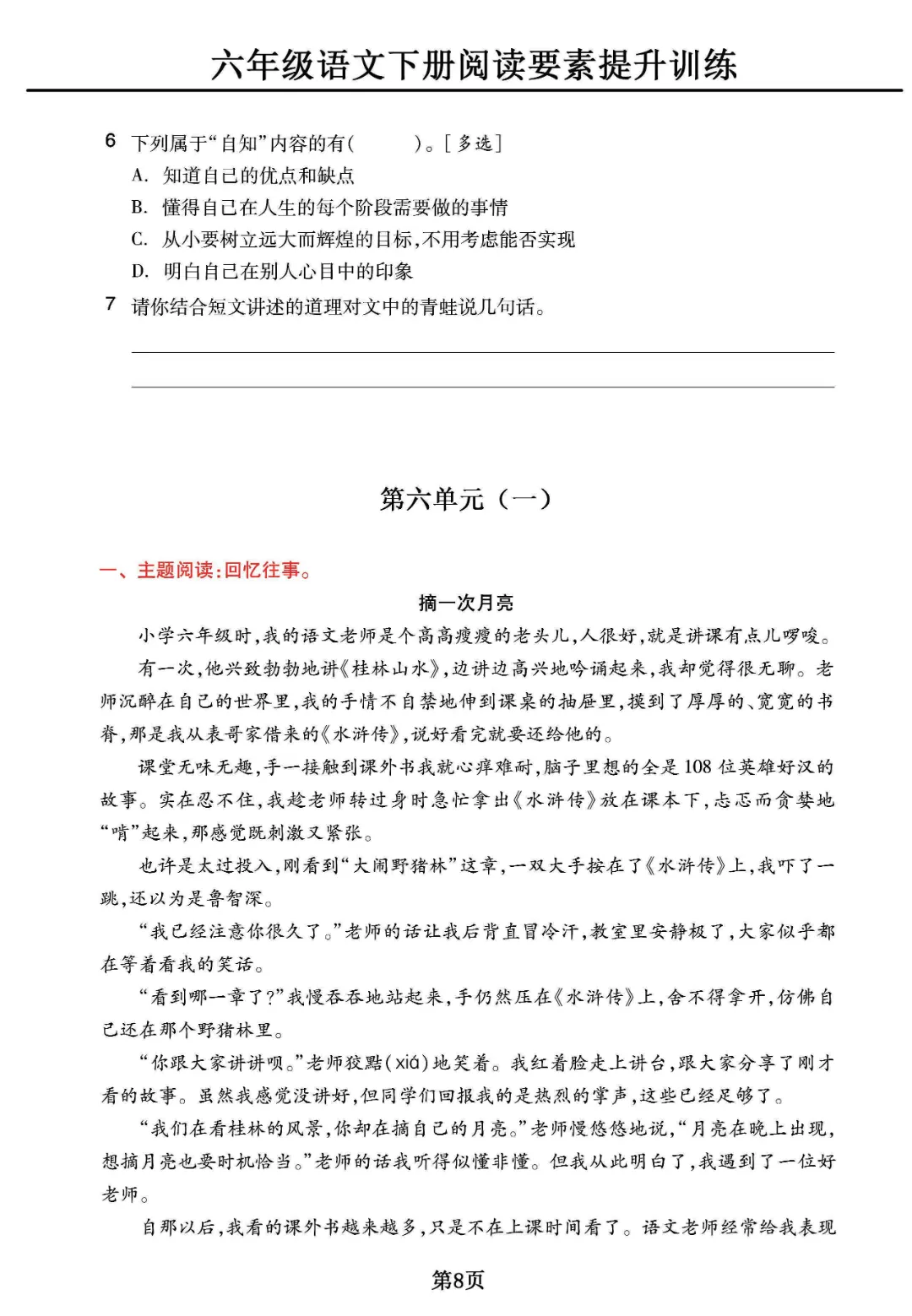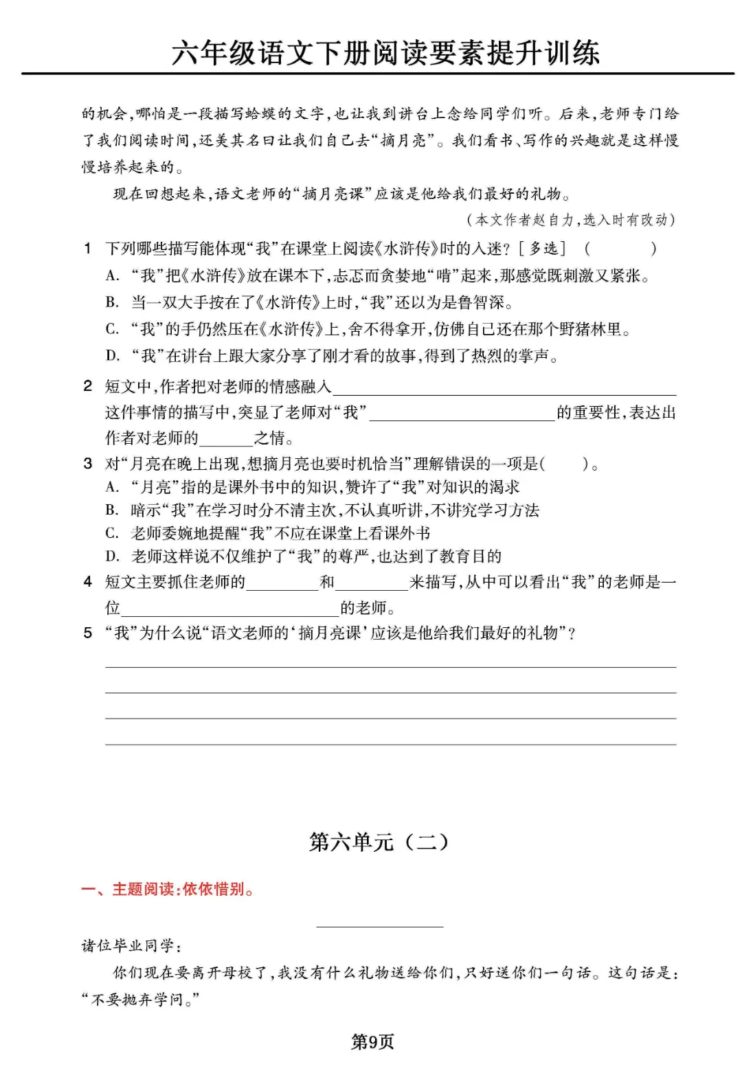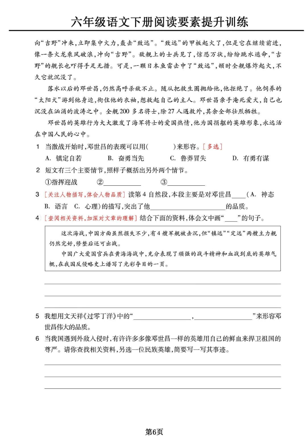 《六年级下册语文阅读素养提升训练》电子版可打印