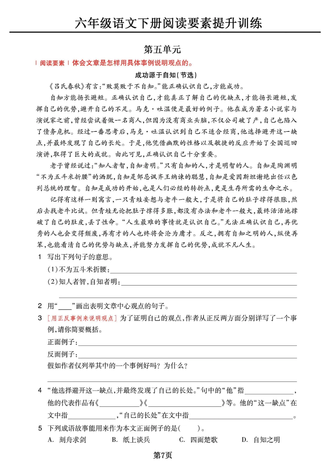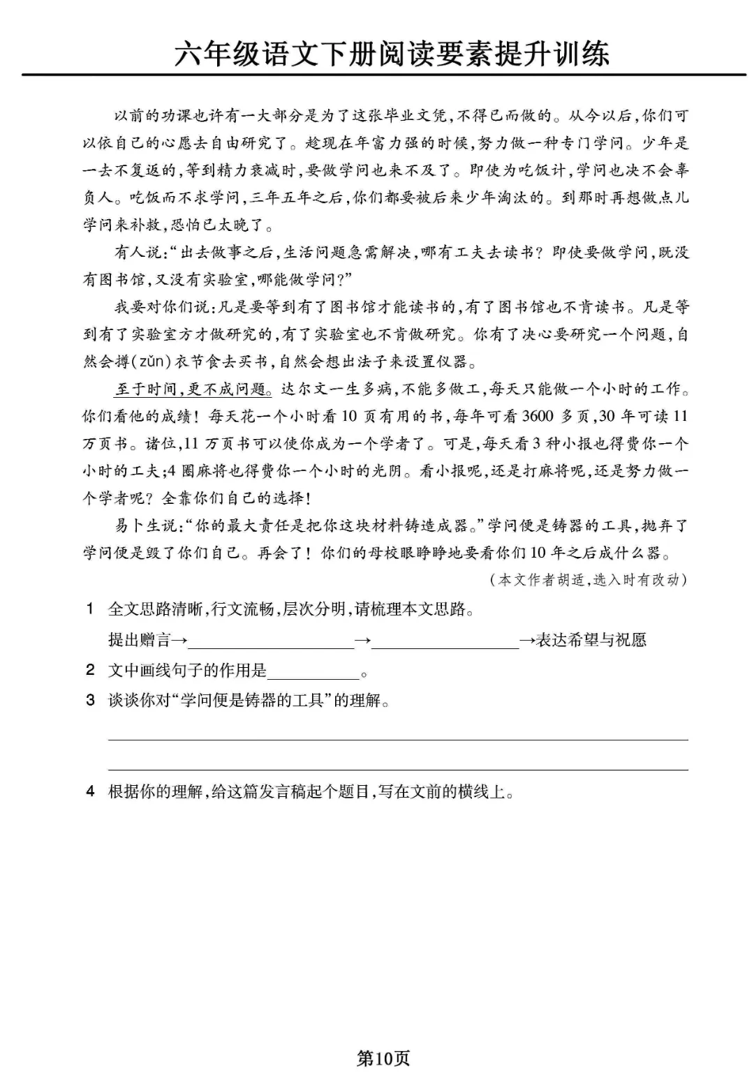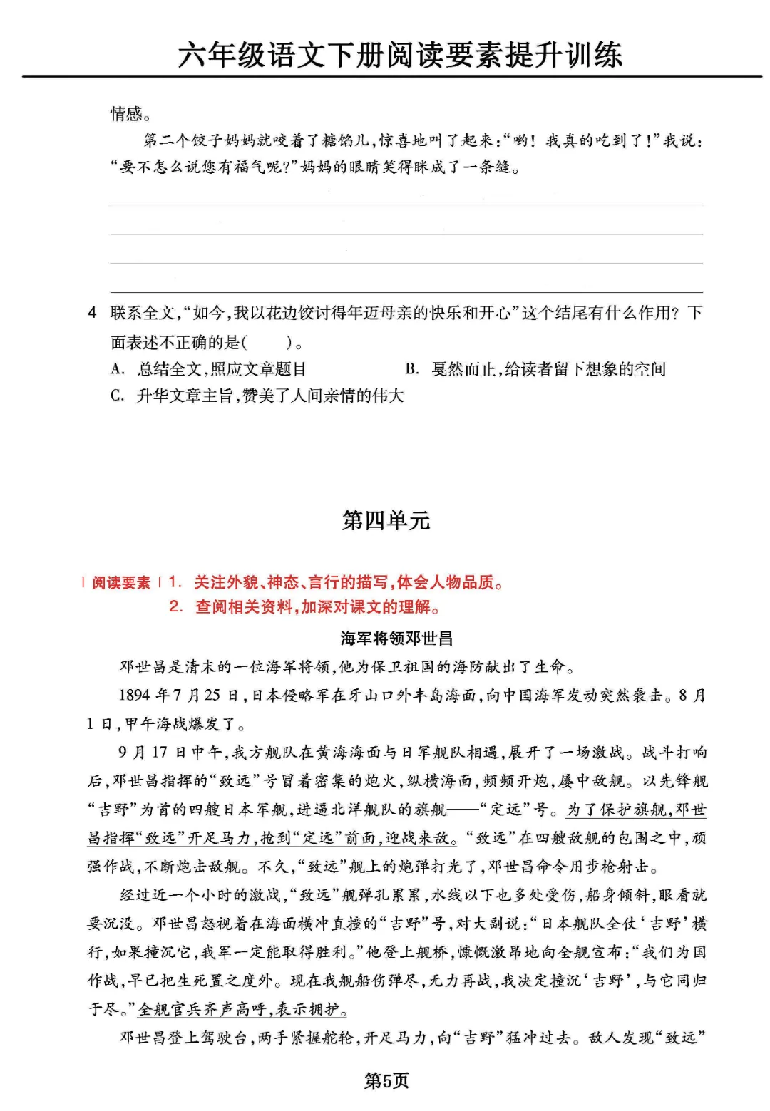 《六年级下册语文阅读素养提升训练》电子版可打印