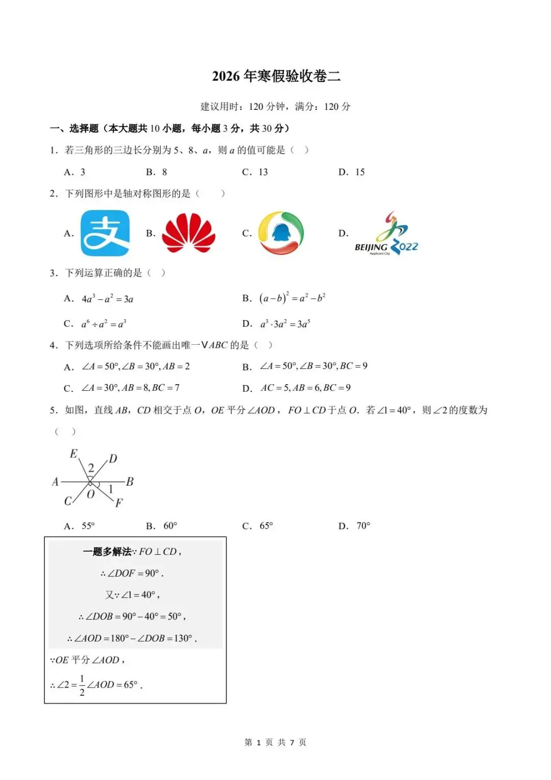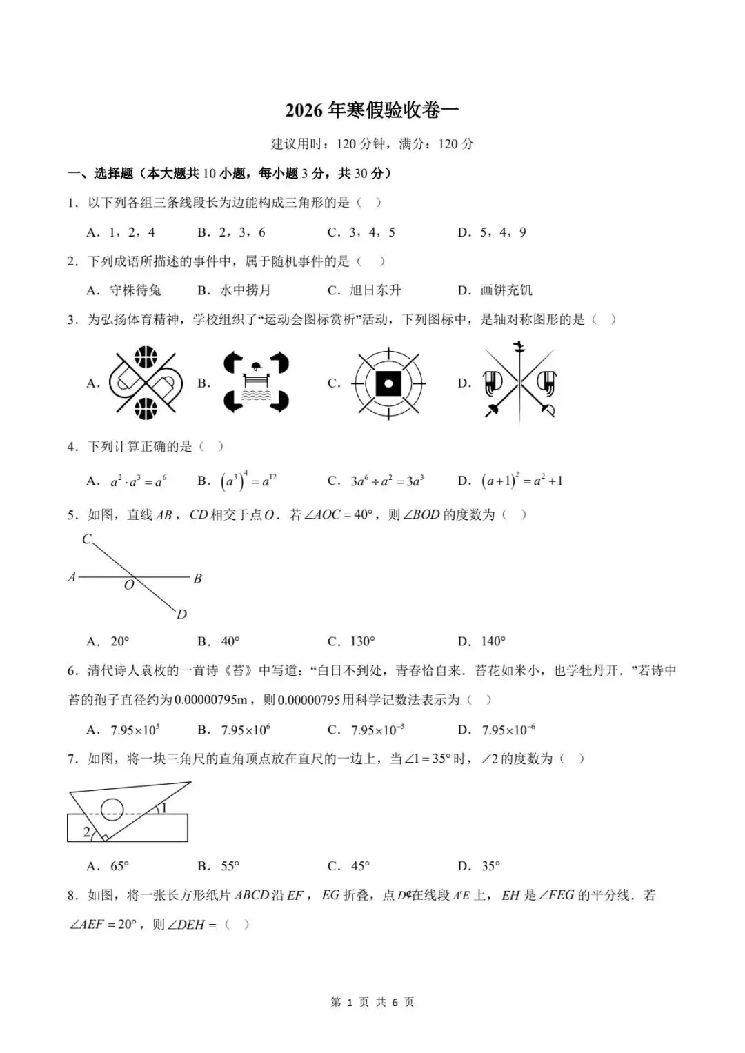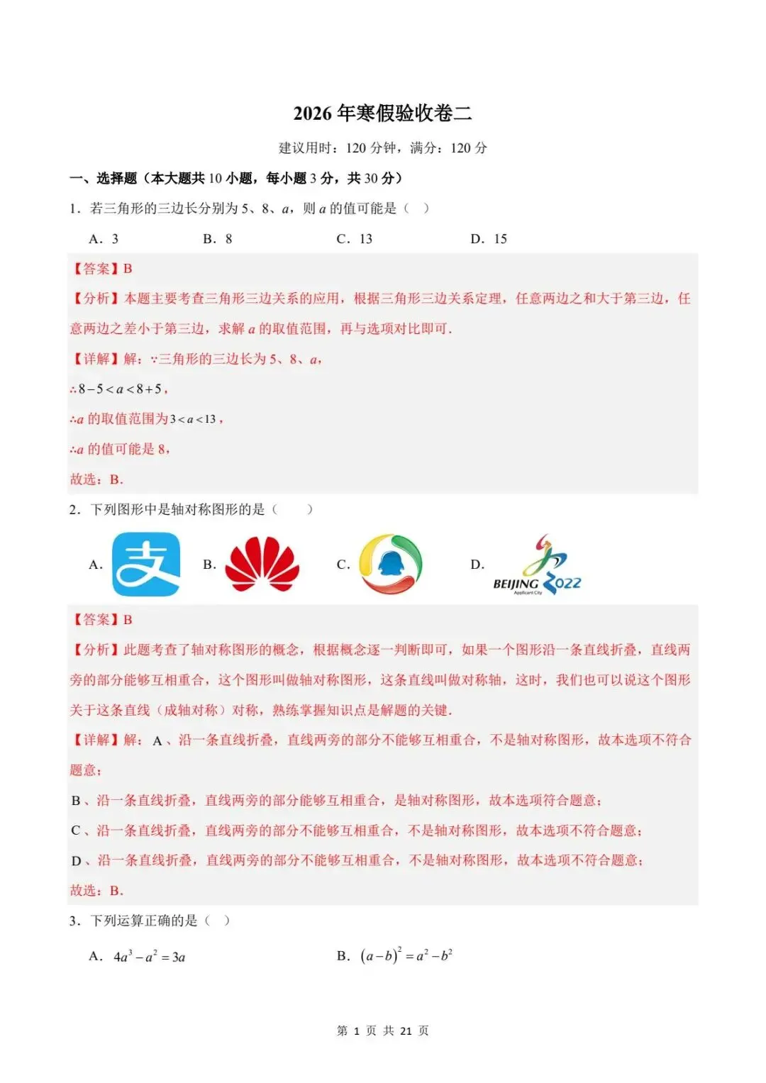 💎 2026春北师大版七年级下册数学《开学摸底测试卷》寒假验收测试卷(共3套,含答案解析),帮助孩子新学期预习情况,做到心中有数,明确重难点,为新学期学习助力!欢迎转发到班级群或朋友圈,帮助更多孩子轻松预习~