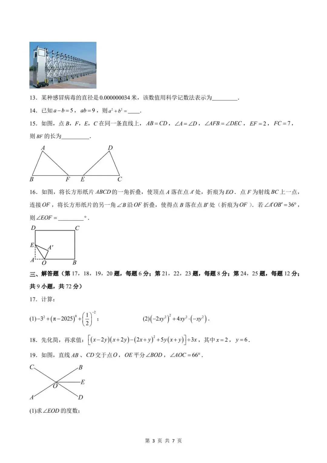 2026春北师大版七年级下册数学《开学摸底测试卷》(寒假验收卷)共3套,含答案解析,高清完整可打印