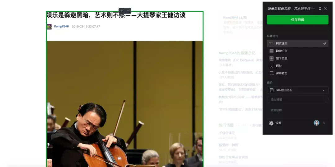 我们可以在浏览器上安装「剪藏」的插件,这样网页阅读时,可以整理上面的精华内容。