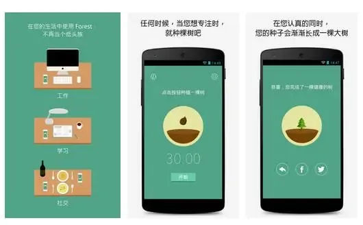 同类的 Forest 专注森林,也是帮助你专心于生活中每个重要时刻的 App。Forest 能帮助您远离智能手机的引诱。每当你想要专注时,种下种籽吧!在接下来的 30 分钟内,它将成长成为一棵大树。
