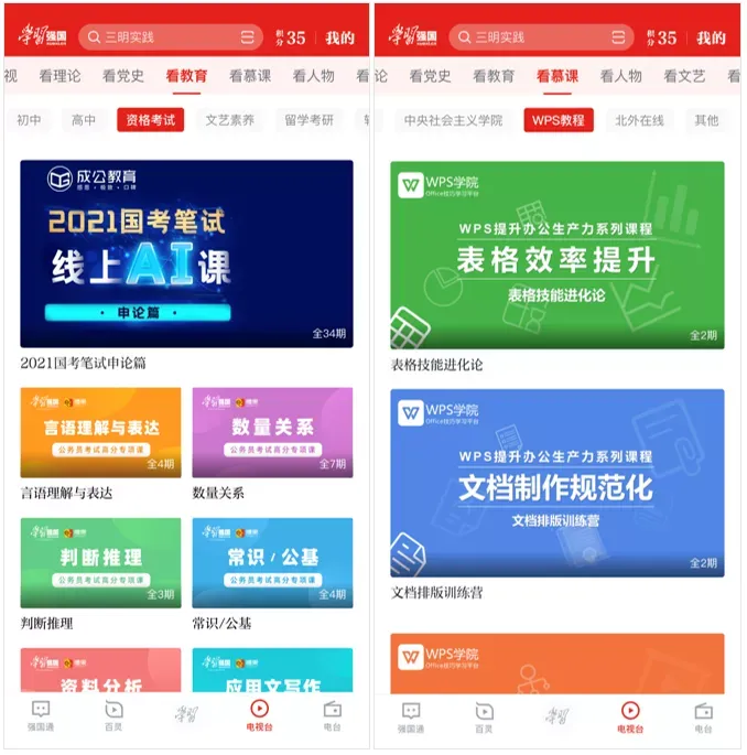 作为中央宣传部出品的学习 App,学习强国拥有海量知识信息,除了大家都知道的慕课,还有纪录片、电视直播等宝藏。