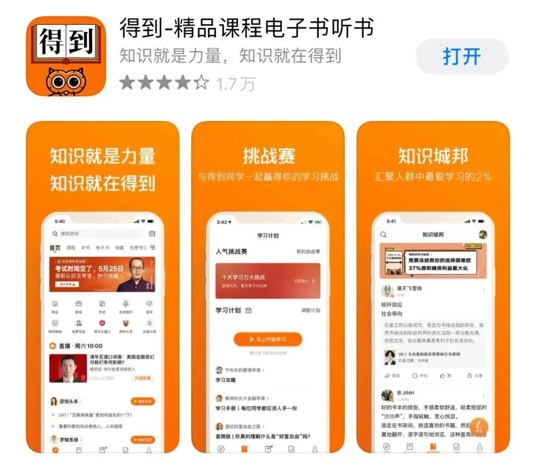 得到 App 应该很多律师是它的忠实用户。它是罗辑思维官方推出的一款资讯阅读类 App,提倡碎片化学习方式,让用户短时间内获得有效的知识。通过音频、电子书、听书等的方式提供知识,旨在让用户利用碎片化时间学习,提高自身竞争力。在清晨时刻、通勤途中都可以收听。