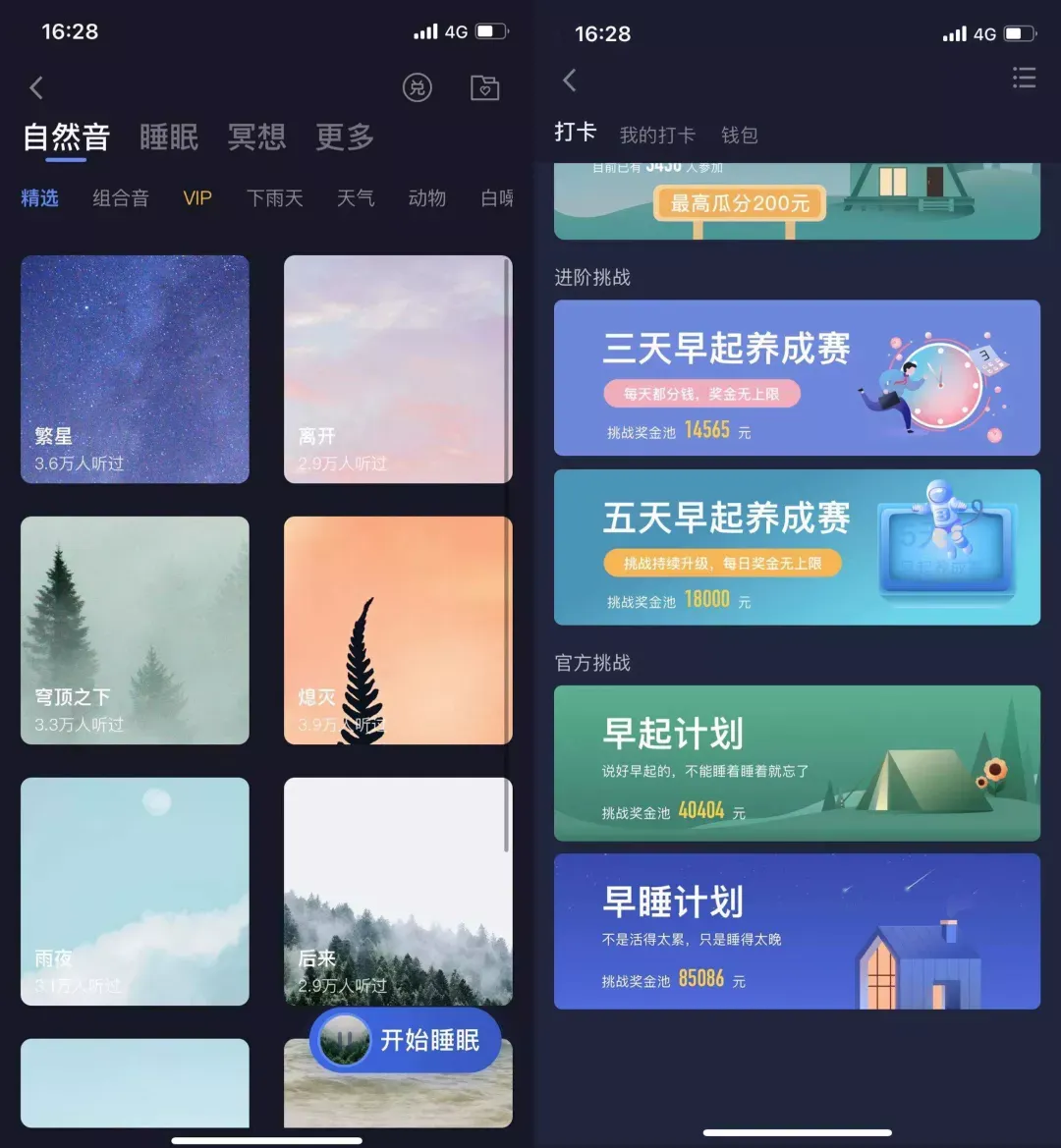 当你在蜗牛睡眠的助眠音乐中入睡的时候,手机会记录你的呼噜声和梦话,分析你的睡眠状态。