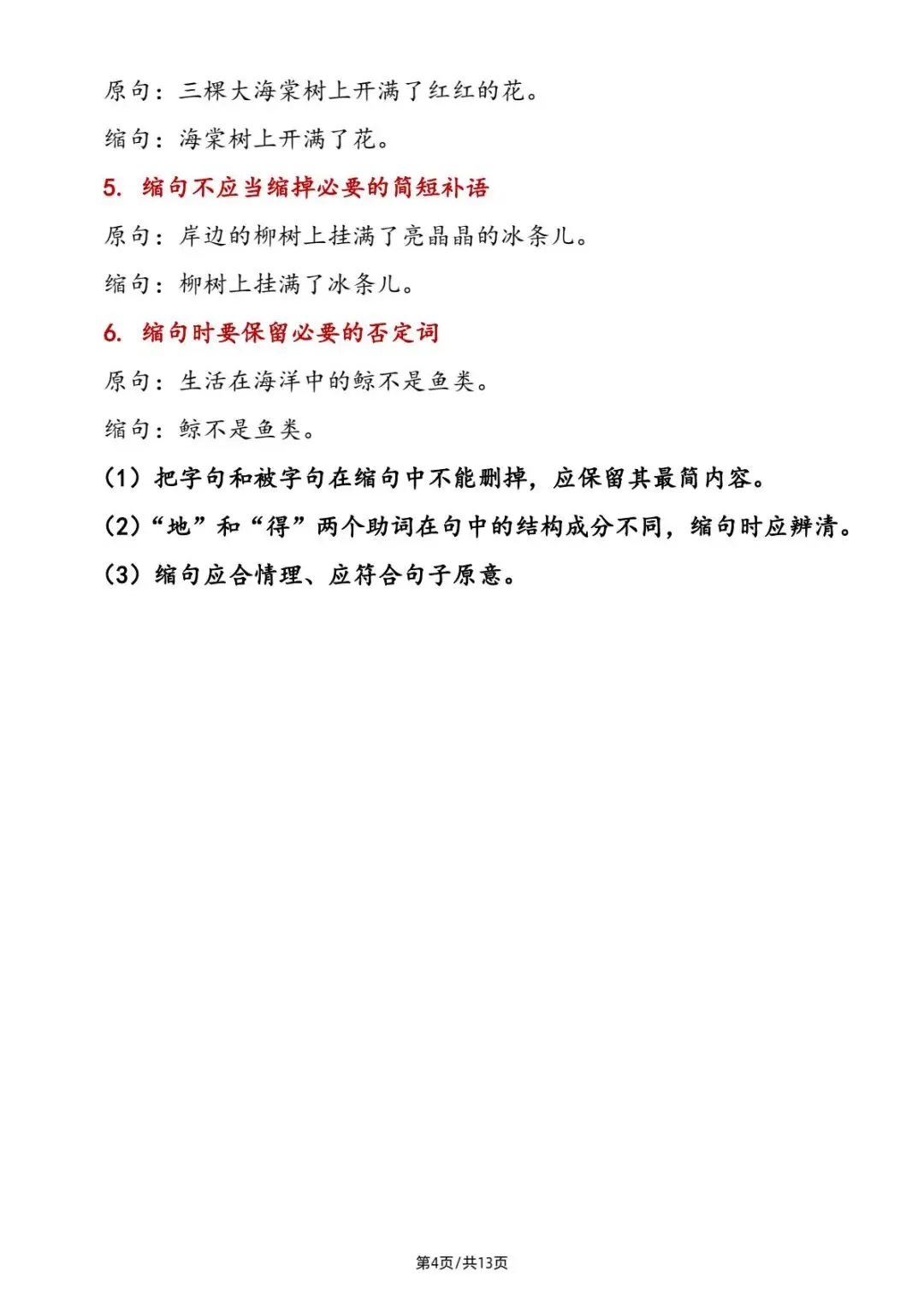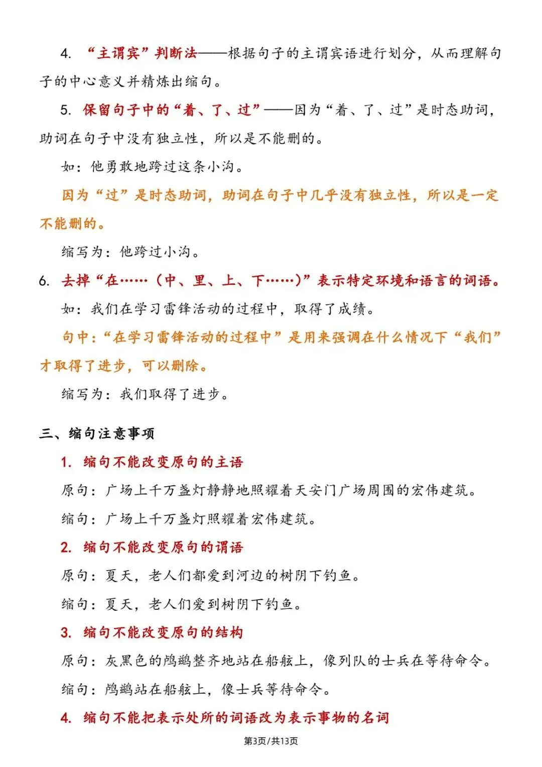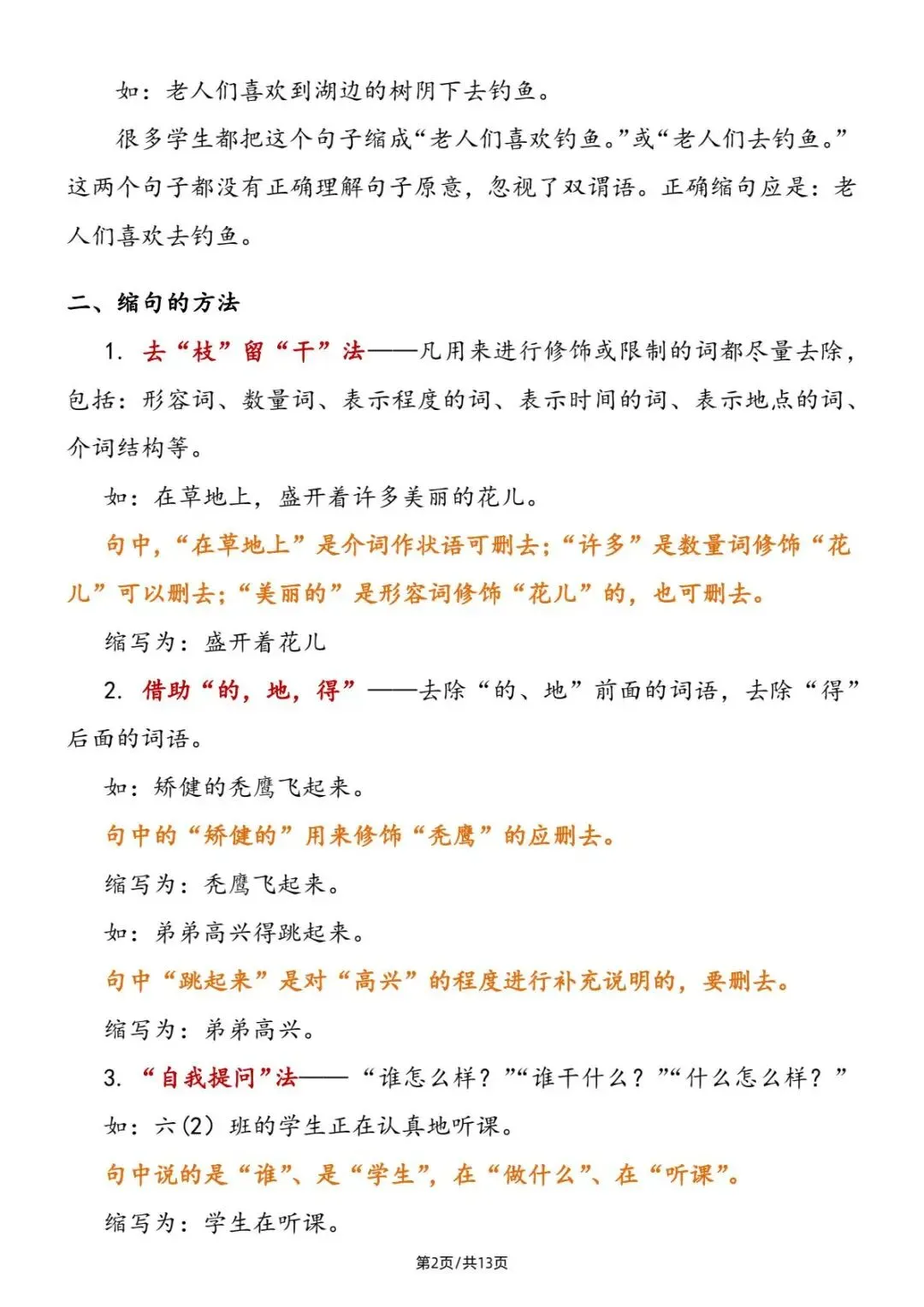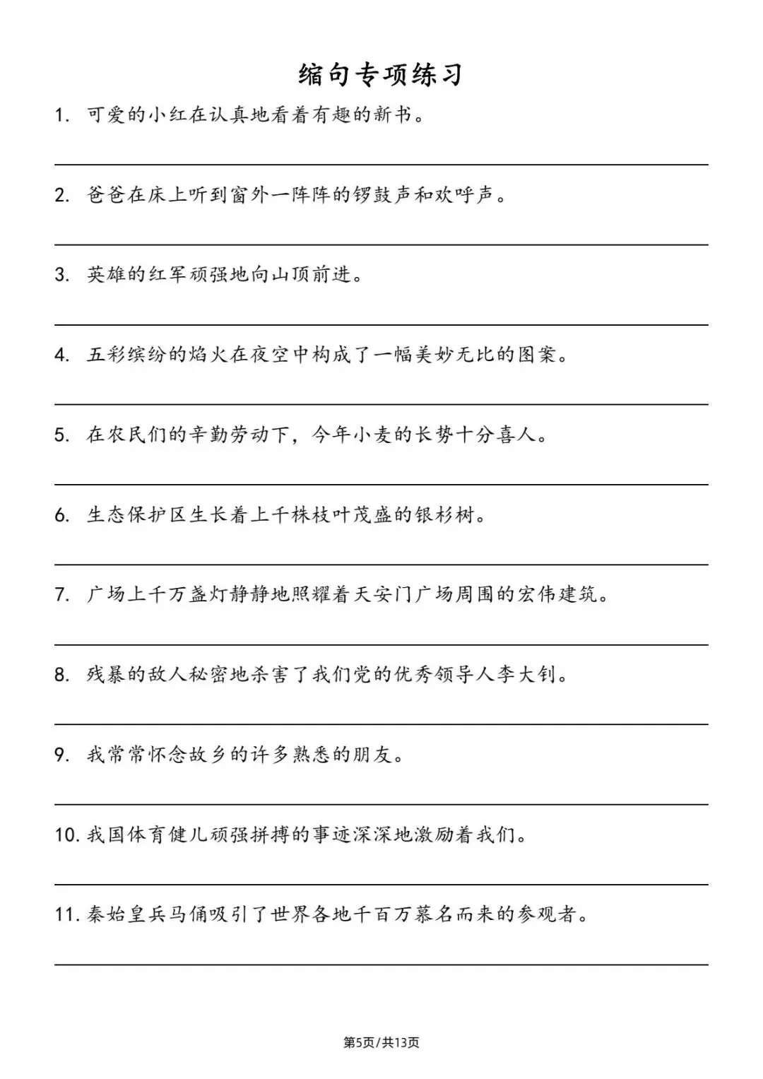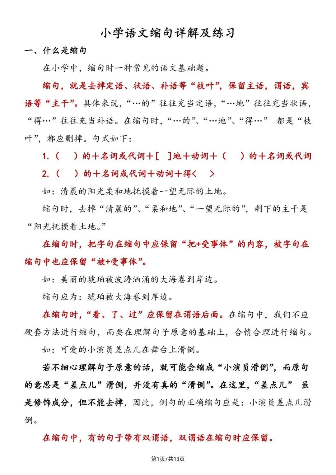小升初|小学语文缩句详解及练习|PDF可打印