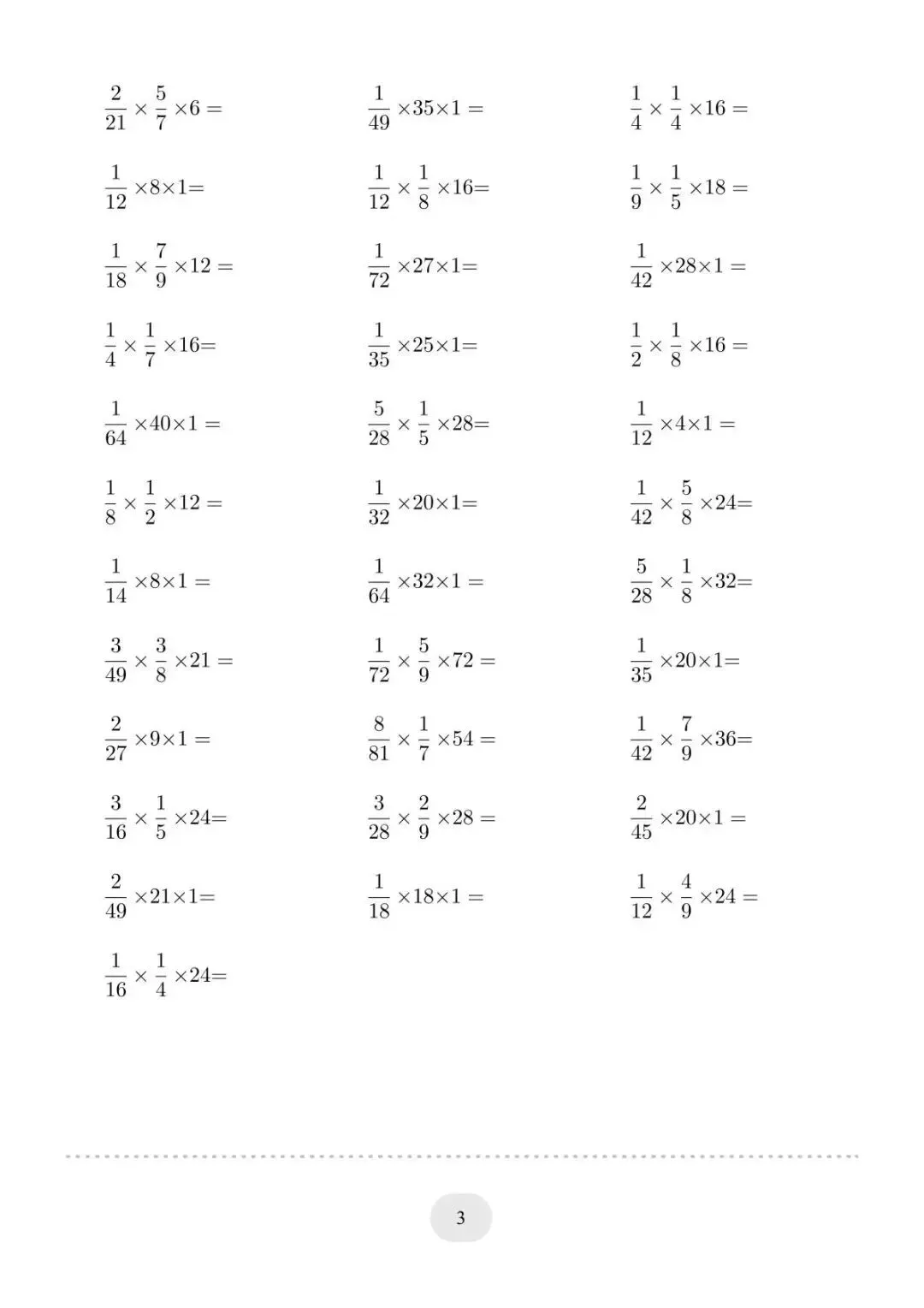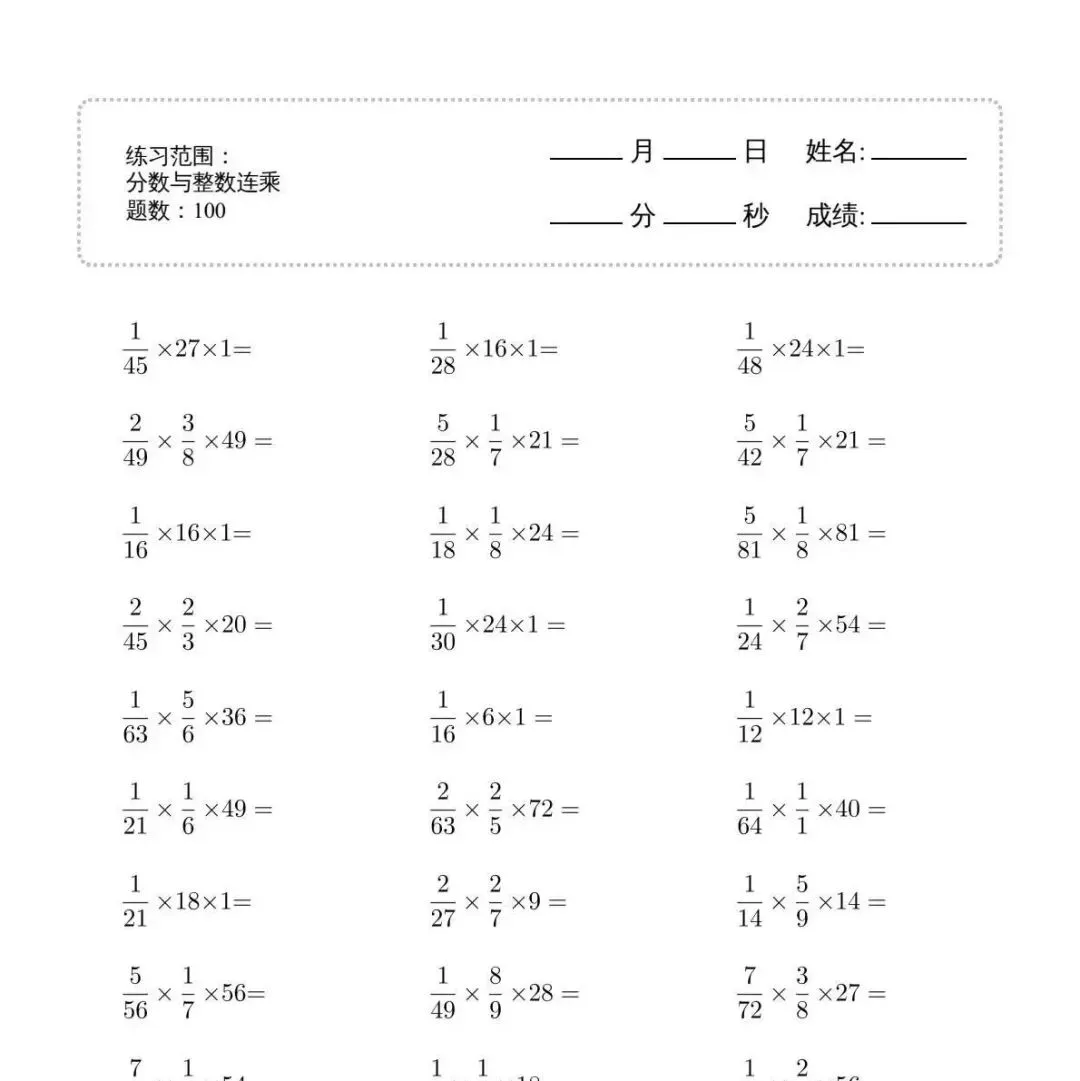 【免费下载】六年级分数与整数连乘计算题|45页2250道练习 | PDF高清电子版可打印