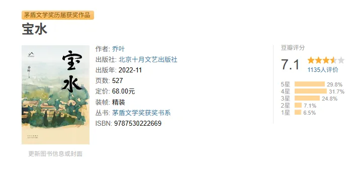第十一届茅盾文学奖获奖作品《宝水》,是作家乔叶耗时七年打磨的长篇突围之作,以太行山深处的宝水村为切口,用细腻温润的笔触,书写新时代乡村振兴背景下的嬗变与坚守,既是一部乡土书写的经典,也是治愈现代人精神困顿的佳作。