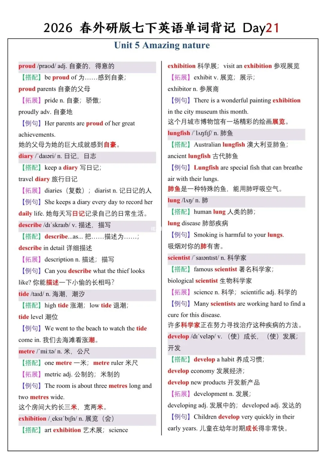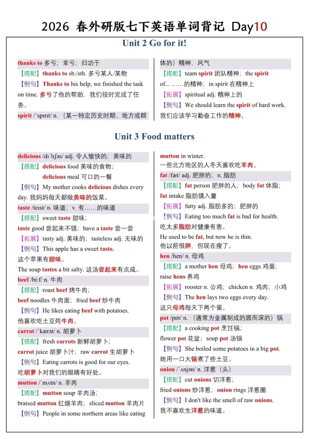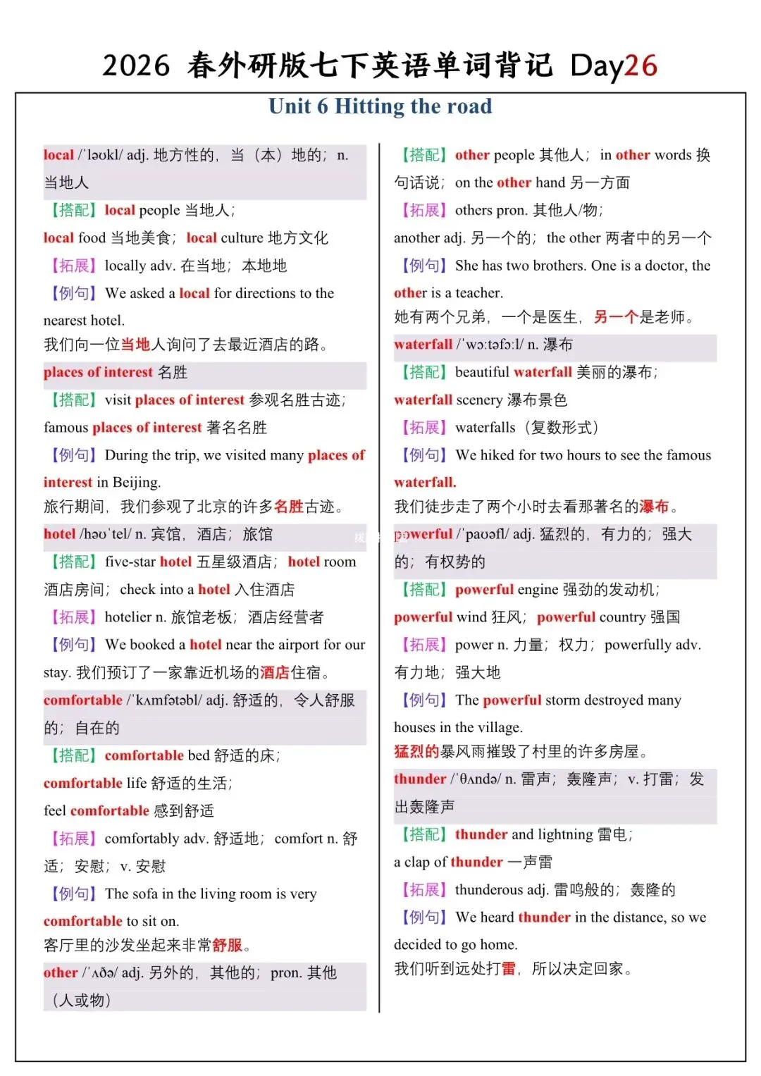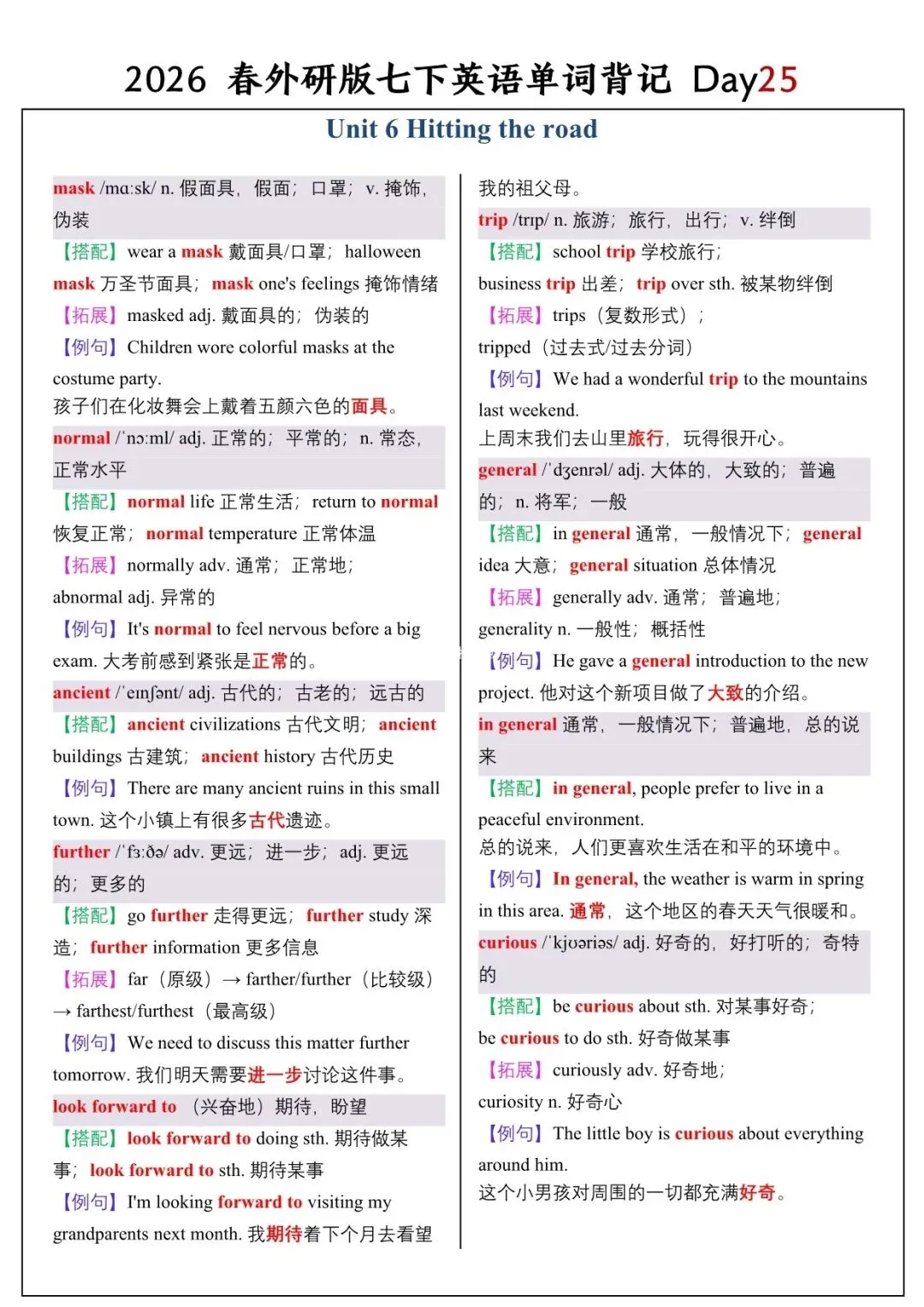 【26春新版】七年级下册英语外研版全册单词讲解(搭配+拓展+例句)电子版可下载!