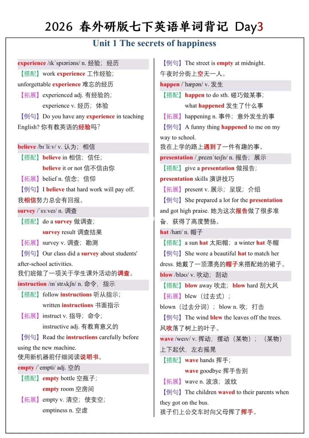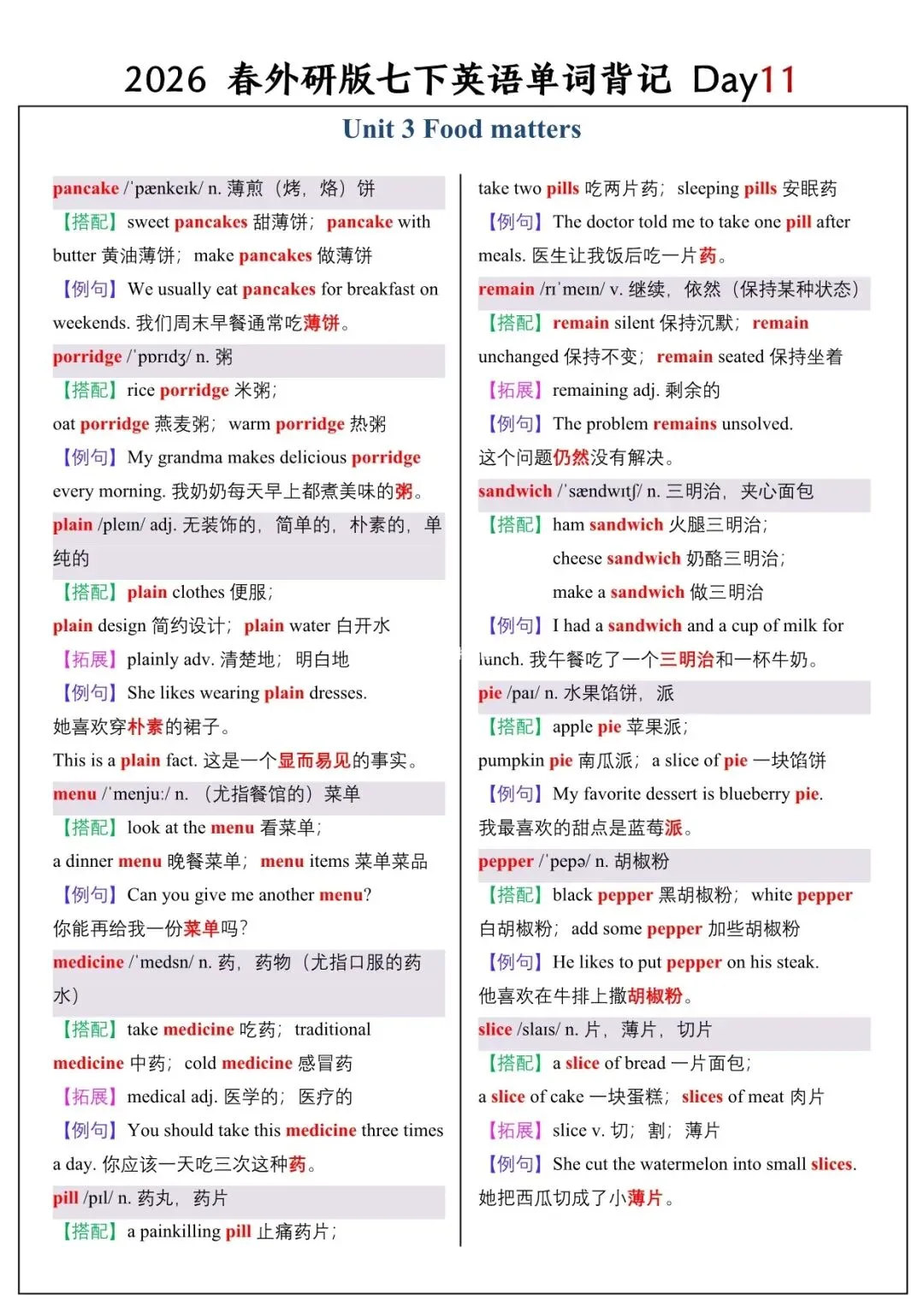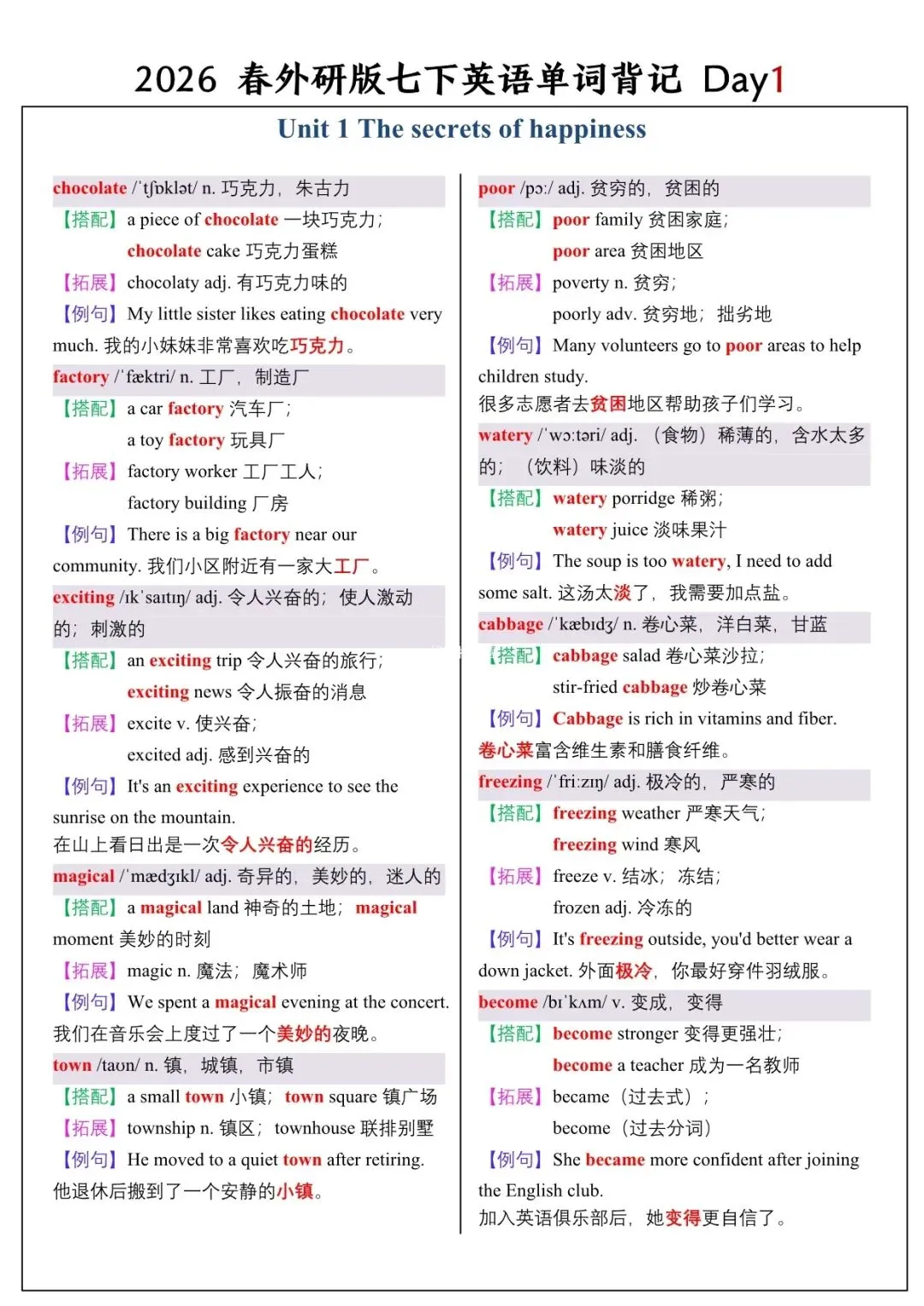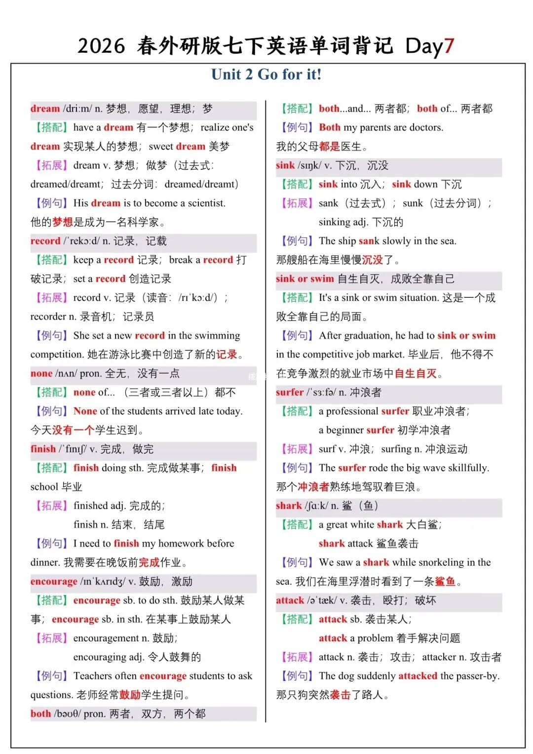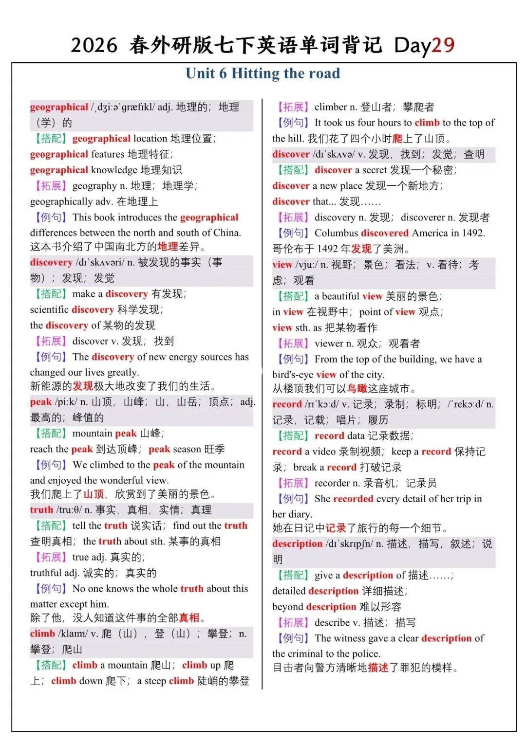 【26春新版】七年级下册英语外研版全册单词讲解(搭配+拓展+例句)电子版可下载!
