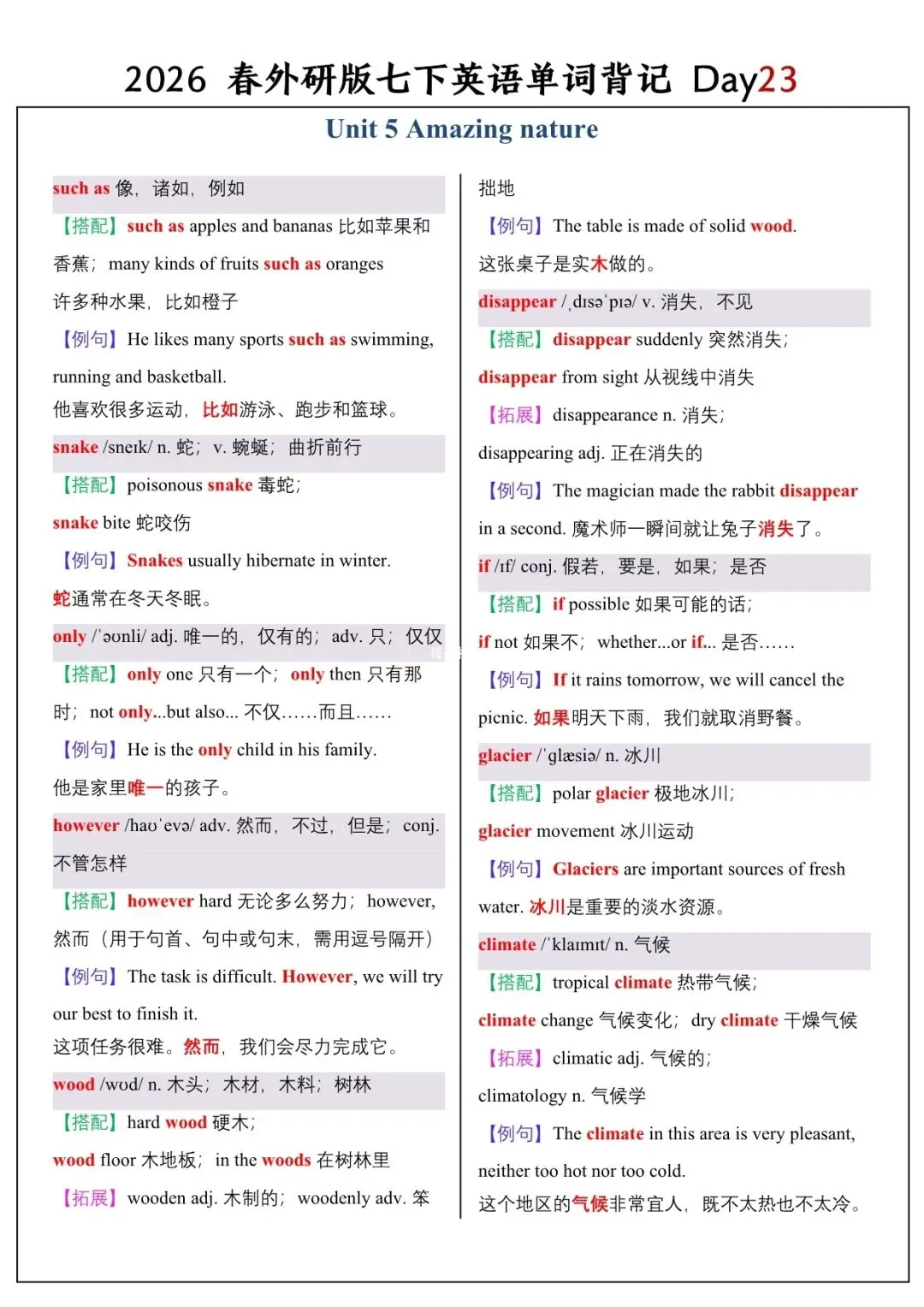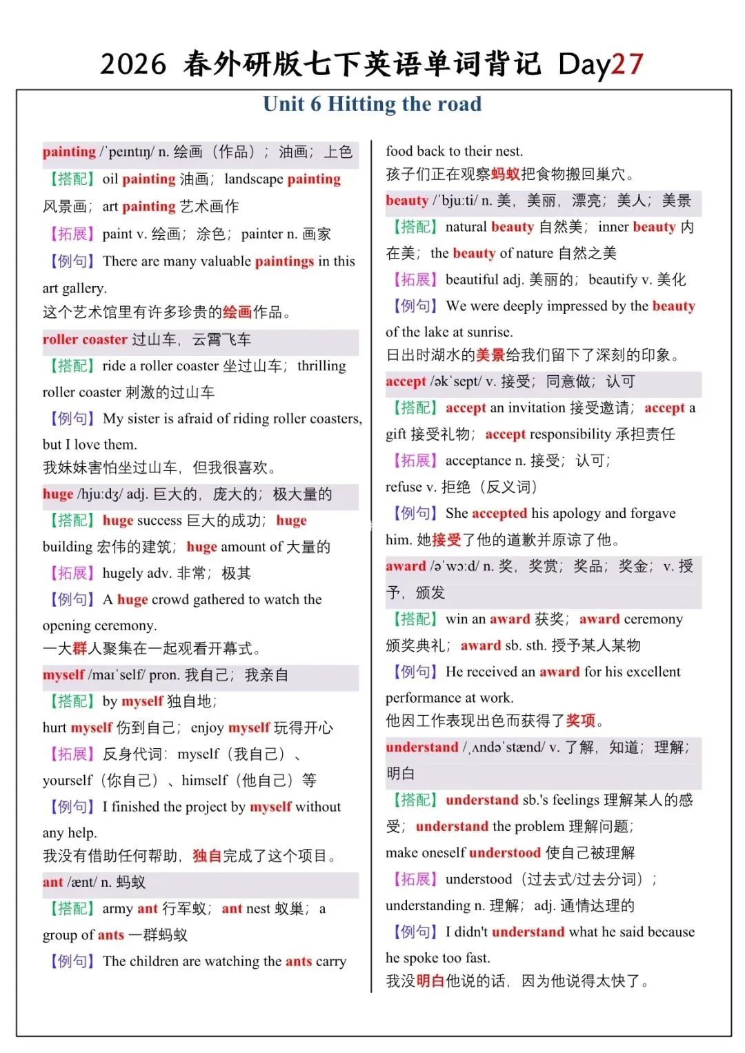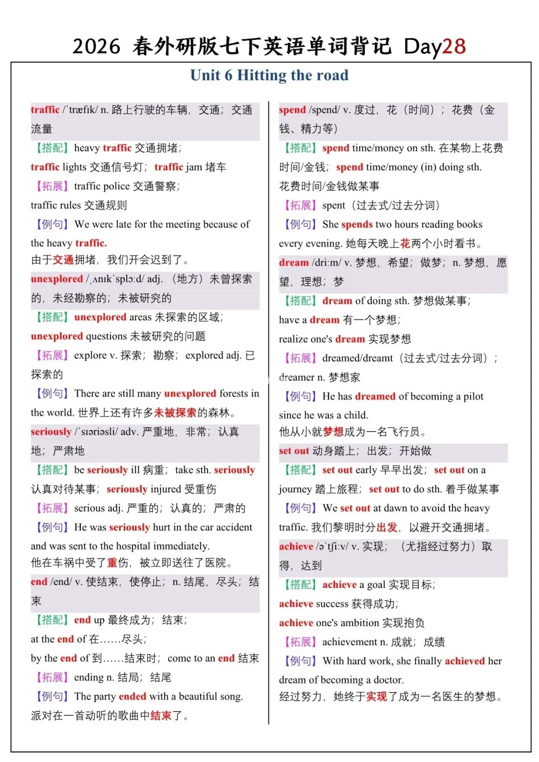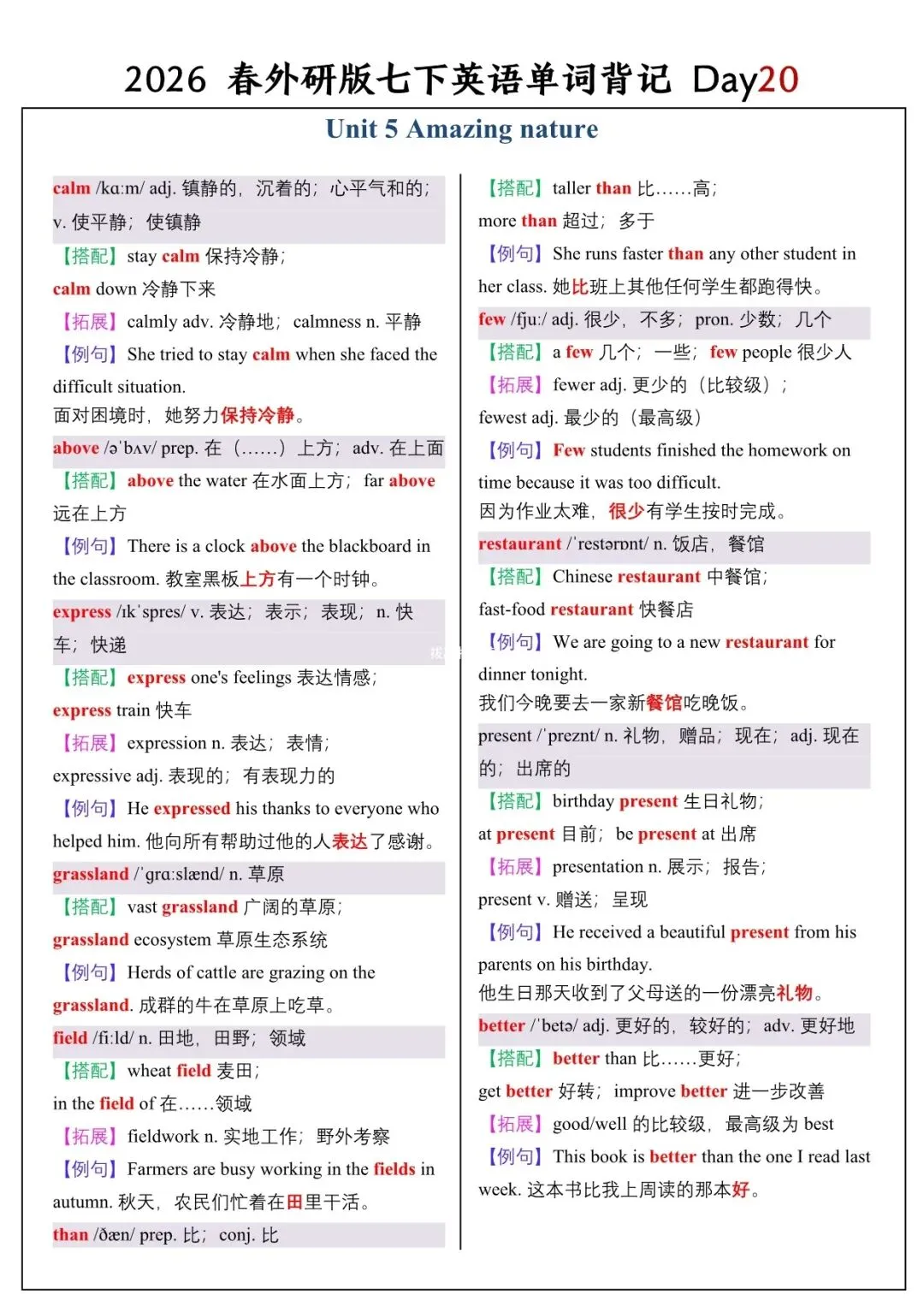 【26春新版】七年级下册英语外研版全册单词讲解(搭配+拓展+例句)电子版可下载!