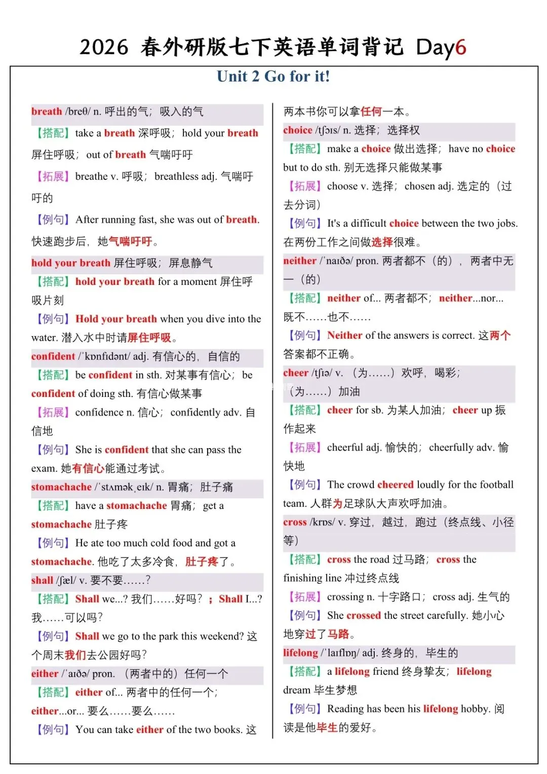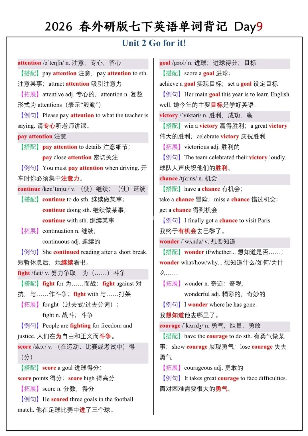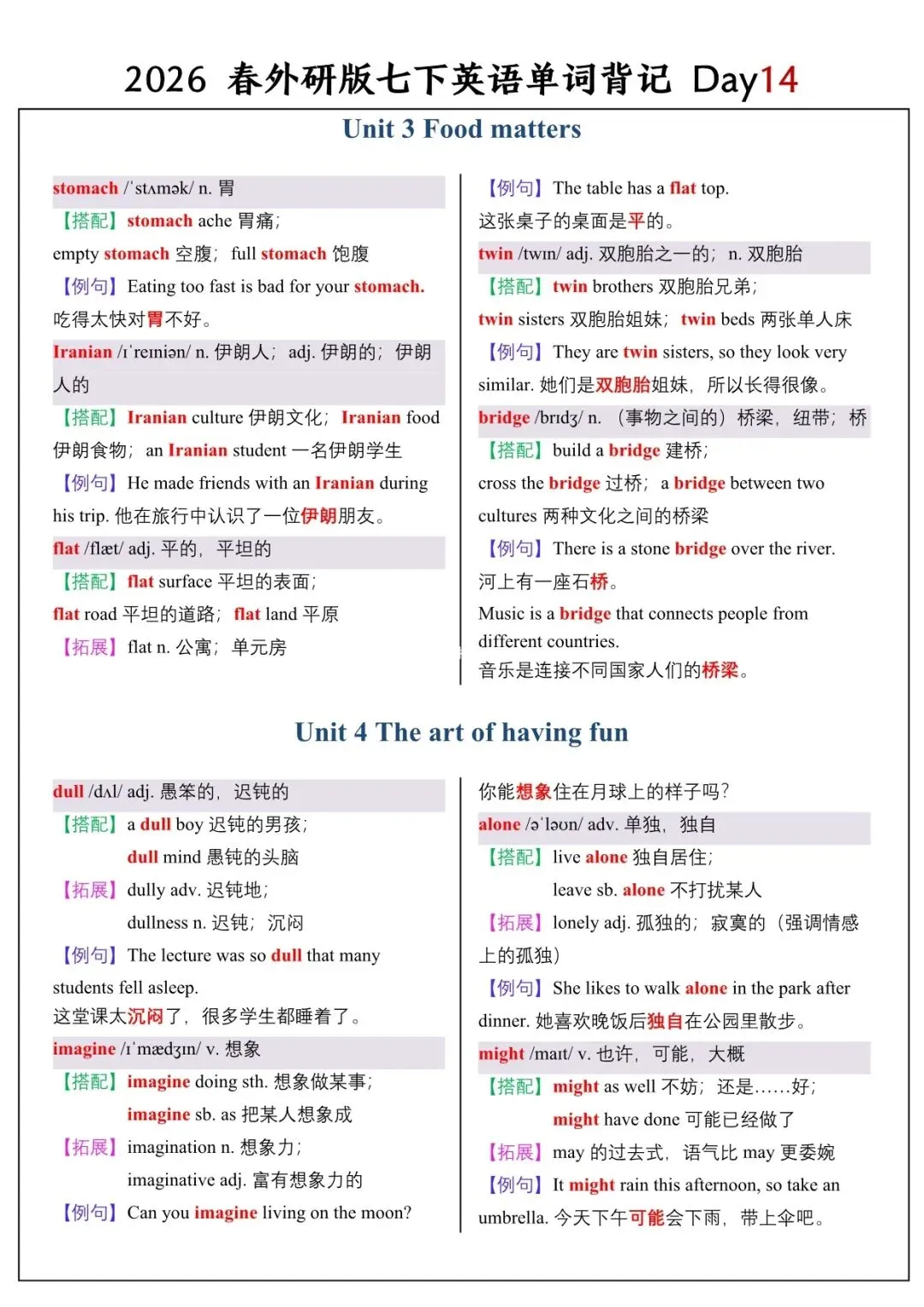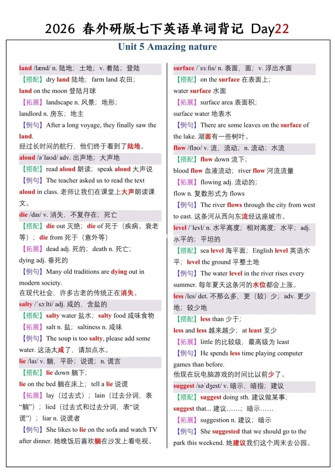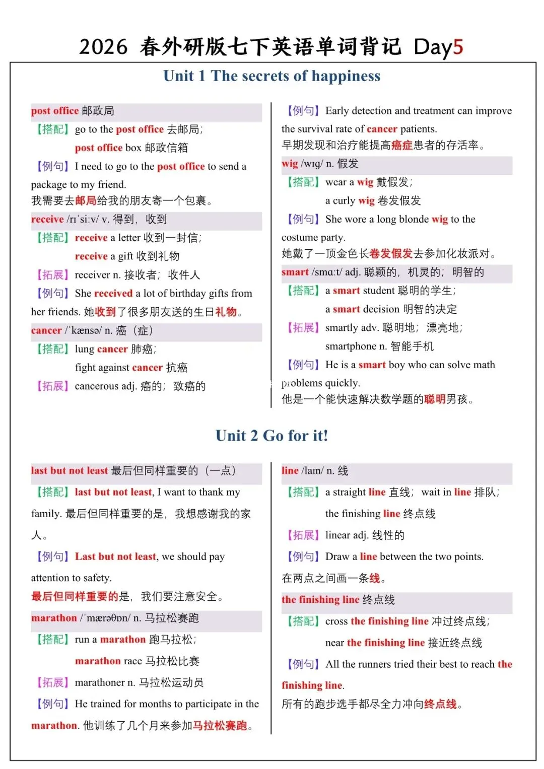 【26春新版】七年级下册英语外研版全册单词讲解(搭配+拓展+例句)电子版可下载!