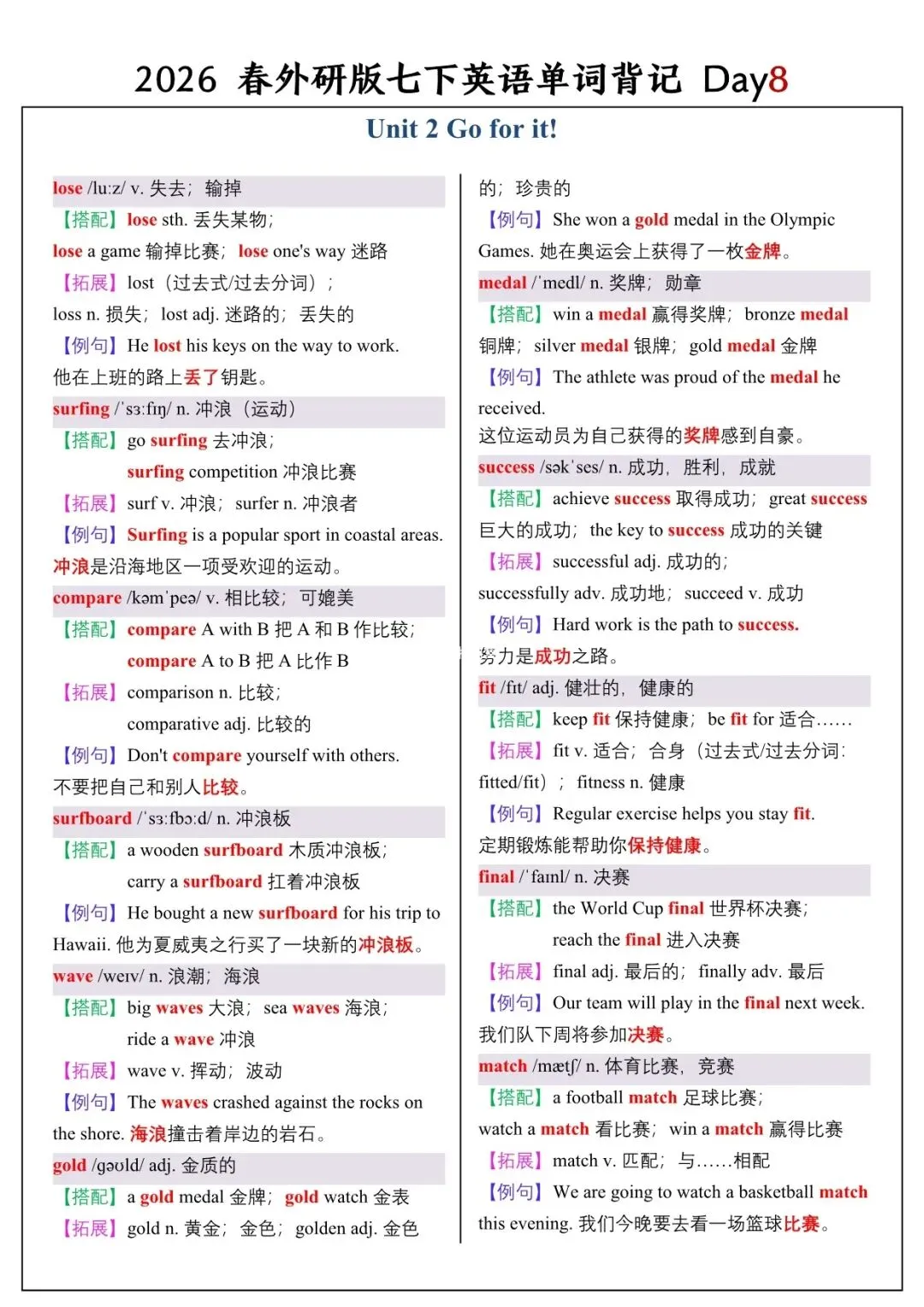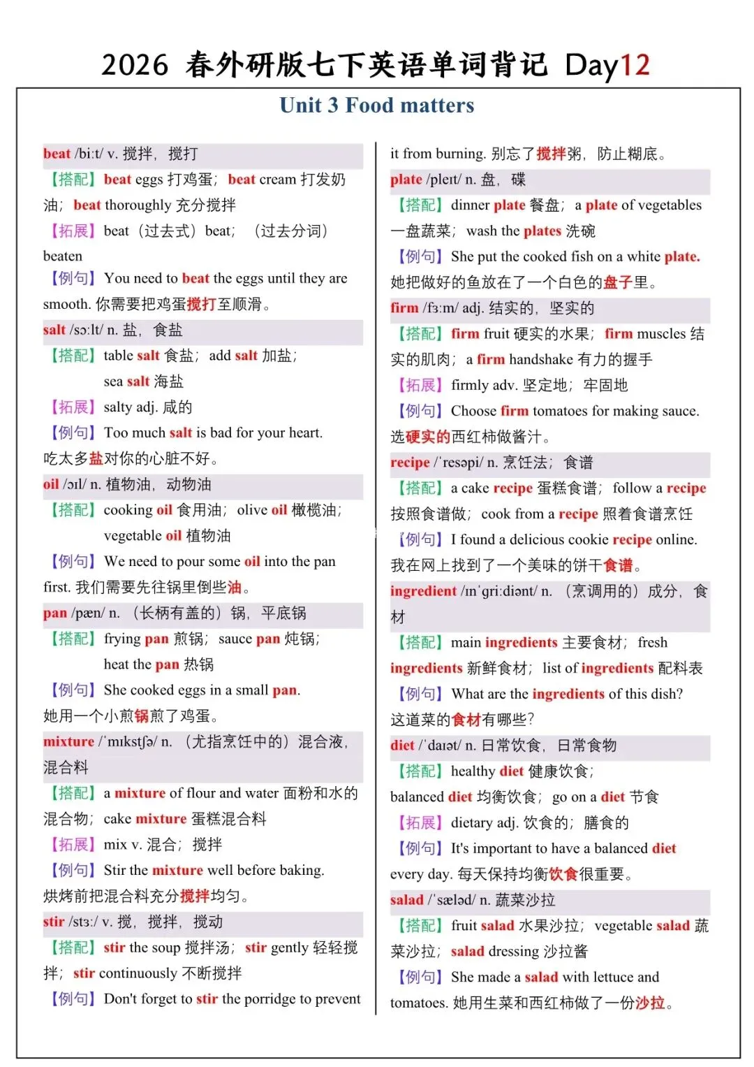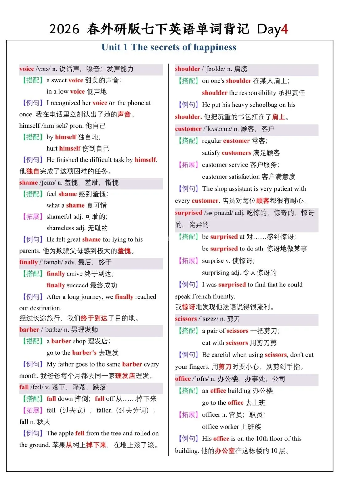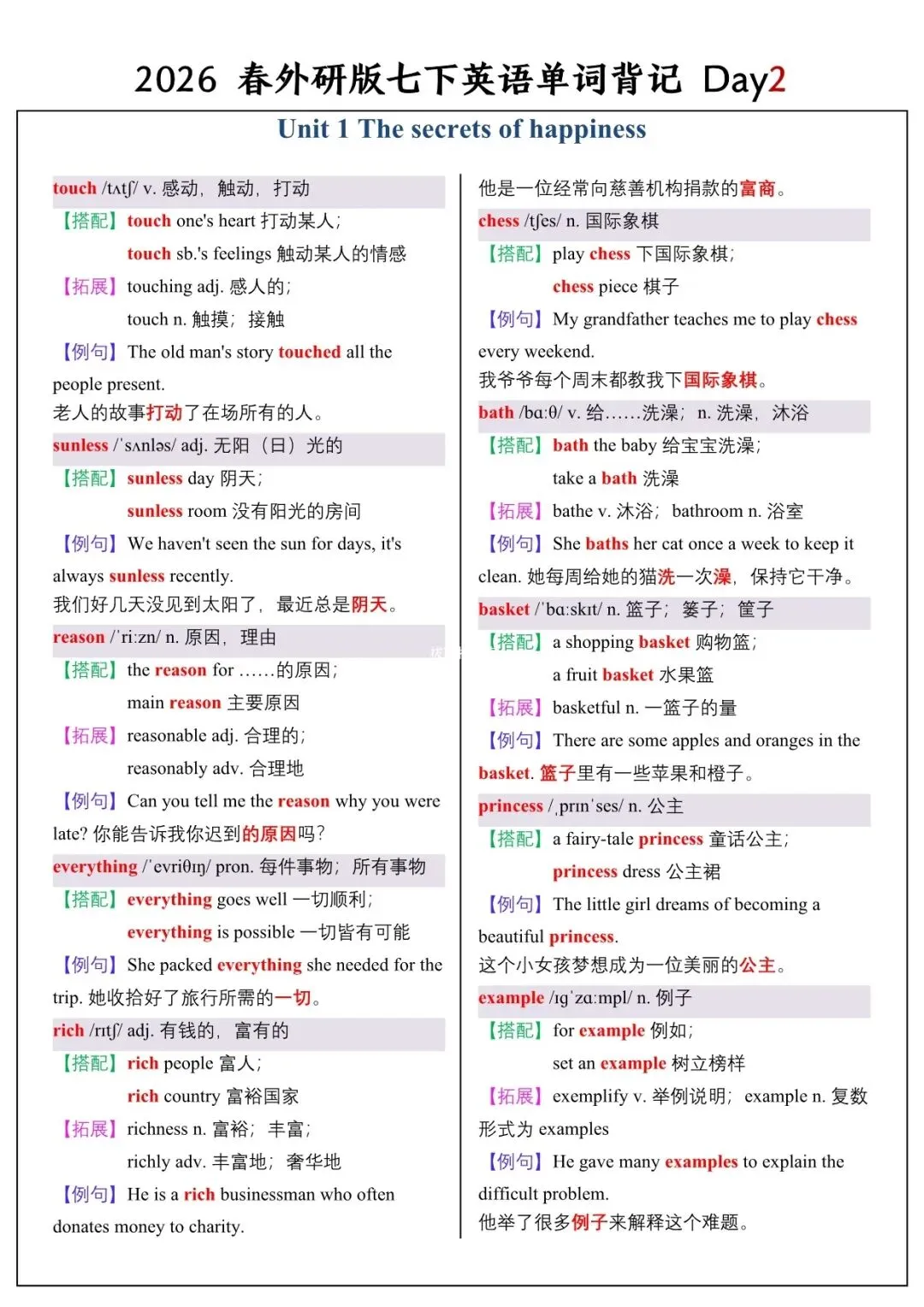 【26春新版】七年级下册英语外研版全册单词讲解(搭配+拓展+例句)电子版可下载!