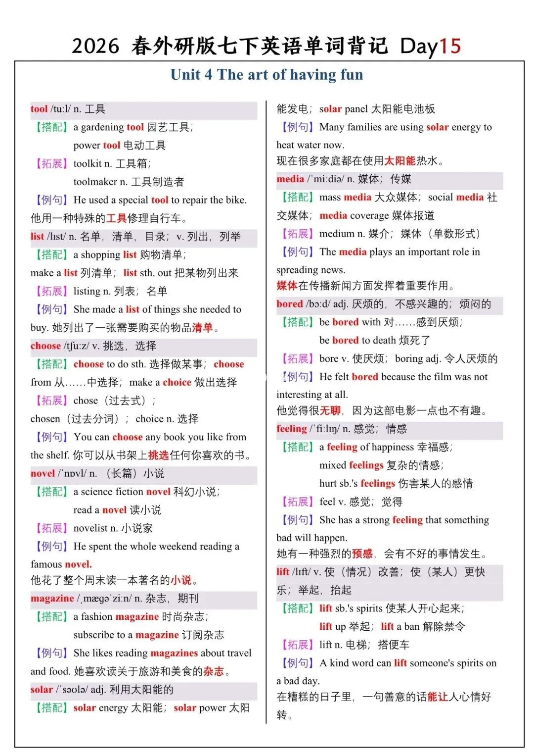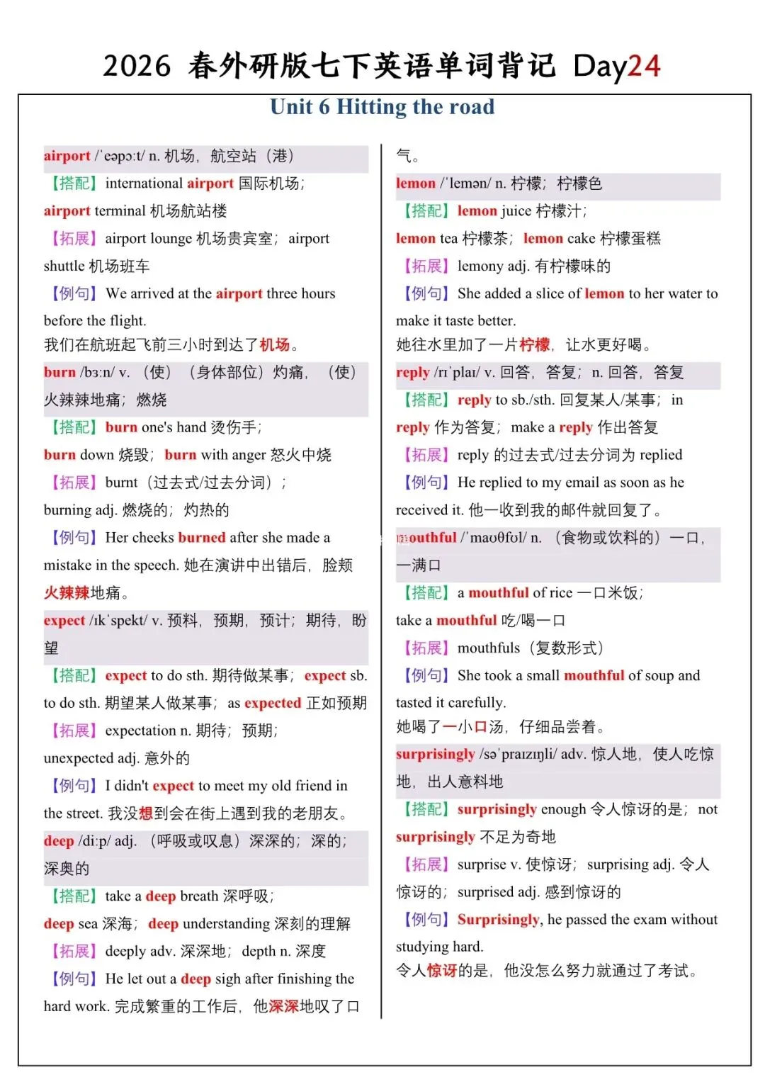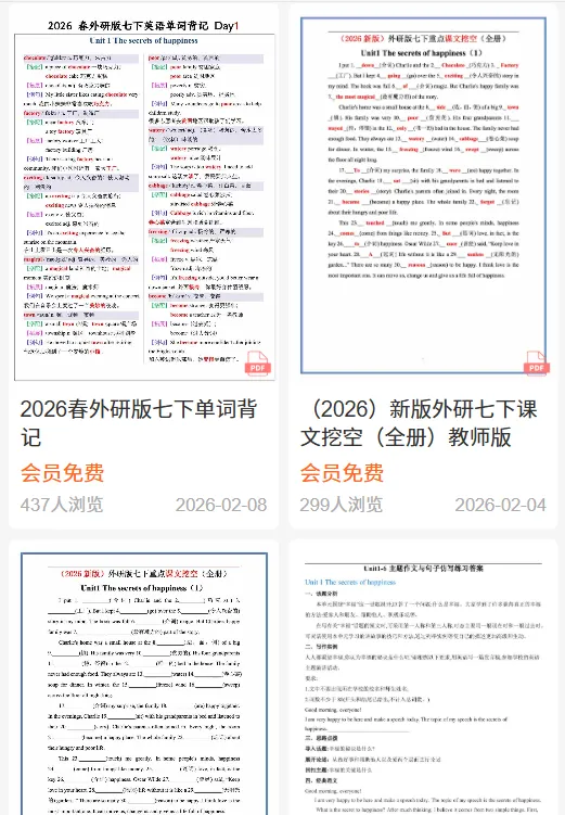【26春新版】七年级下册英语外研版全册单词讲解(搭配+拓展+例句)可下载!