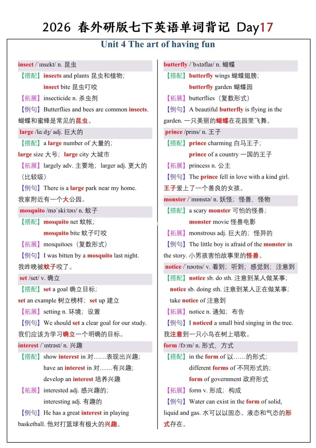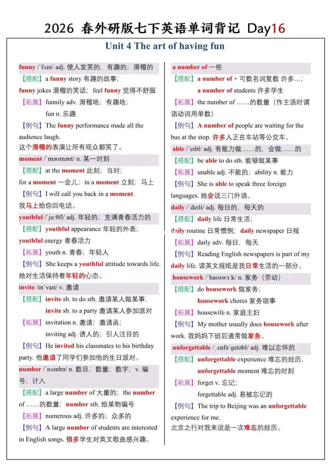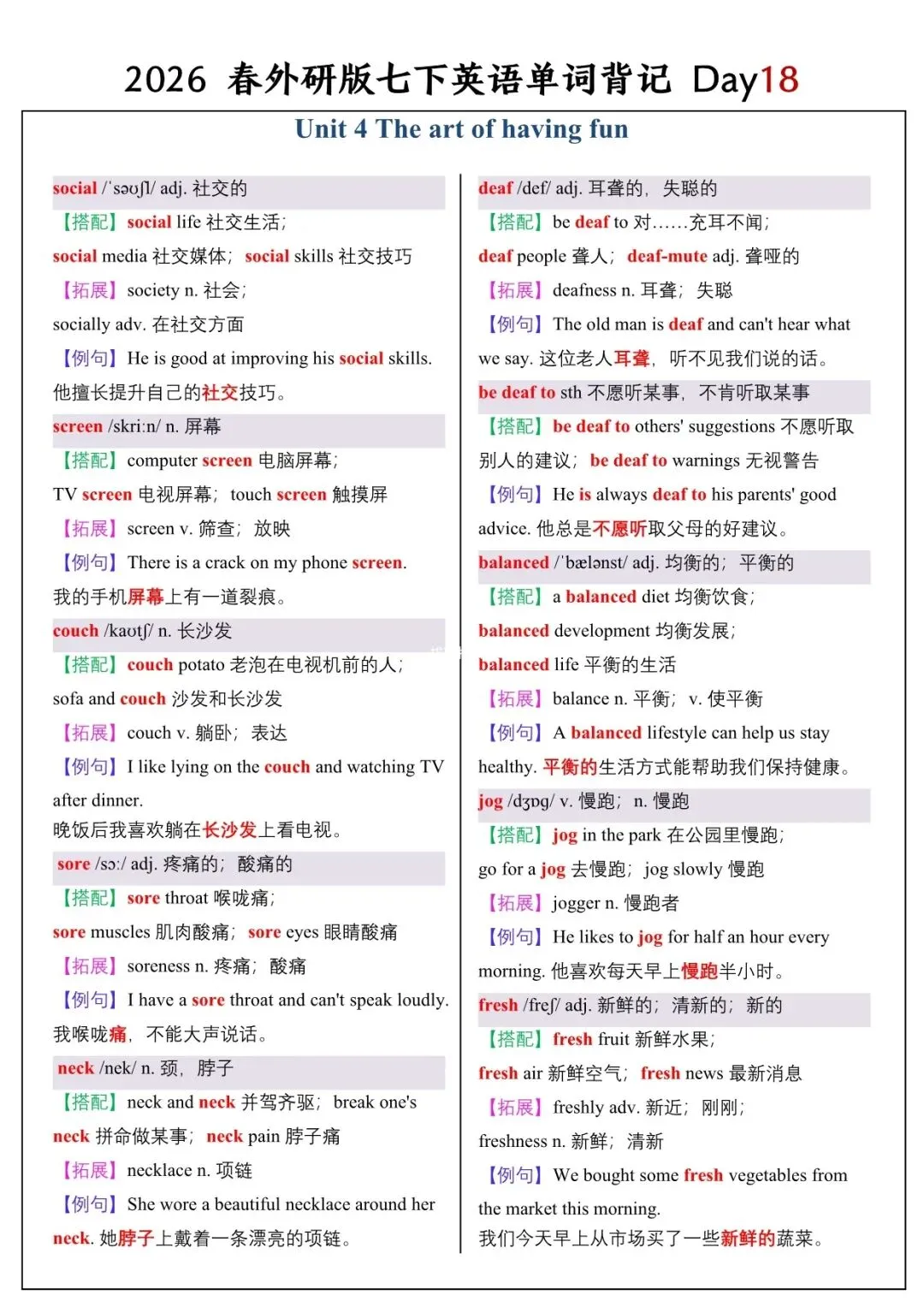 【26春新版】七年级下册英语外研版全册单词讲解(搭配+拓展+例句)可下载!