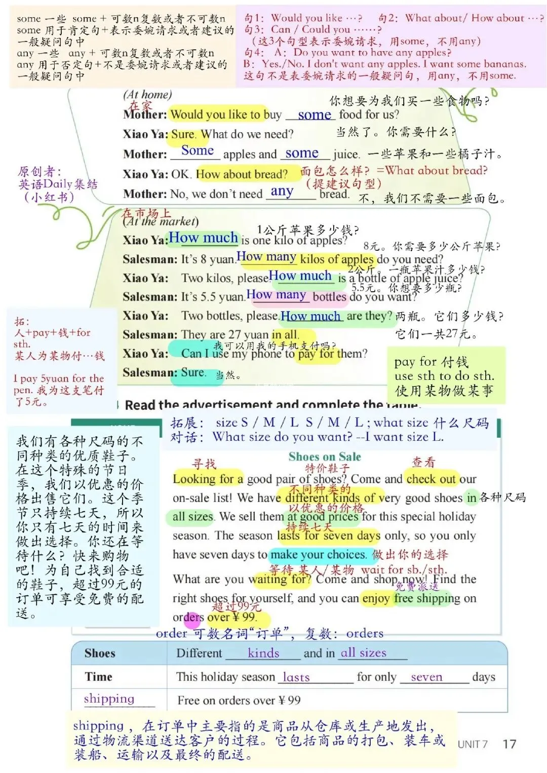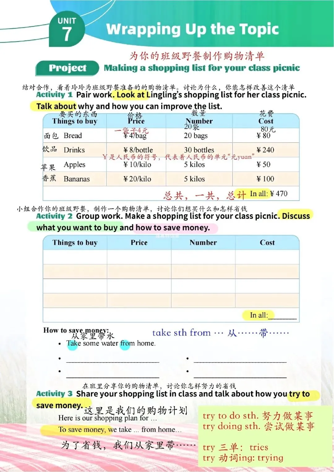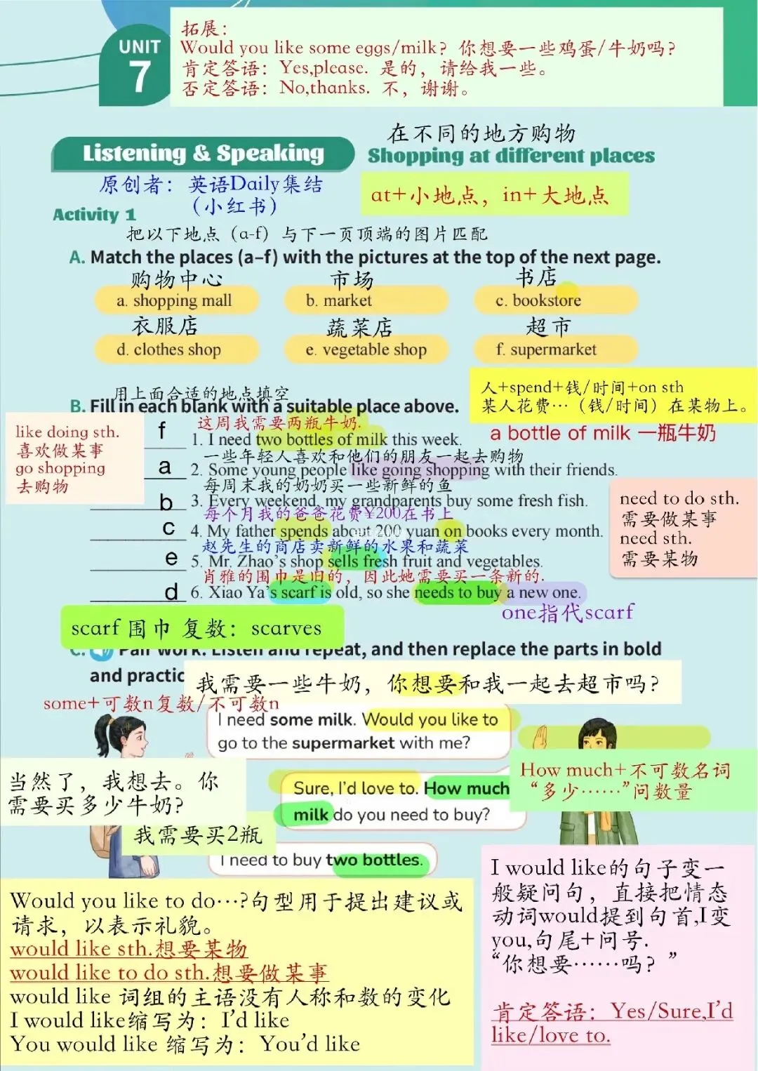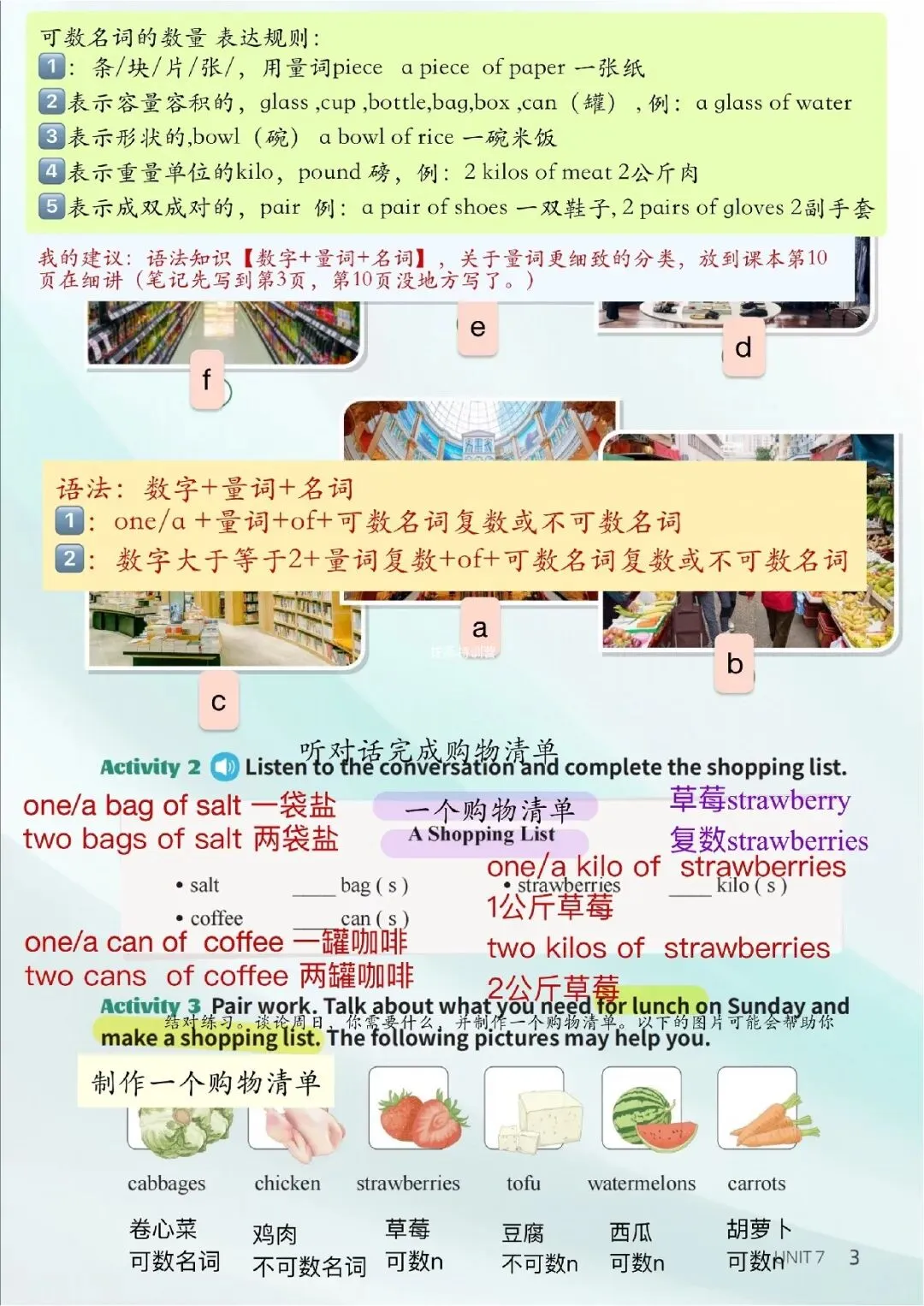 【26春新版】七年级下册英语仁爱版U7-U12全册课堂笔记,完整电子版可打印!