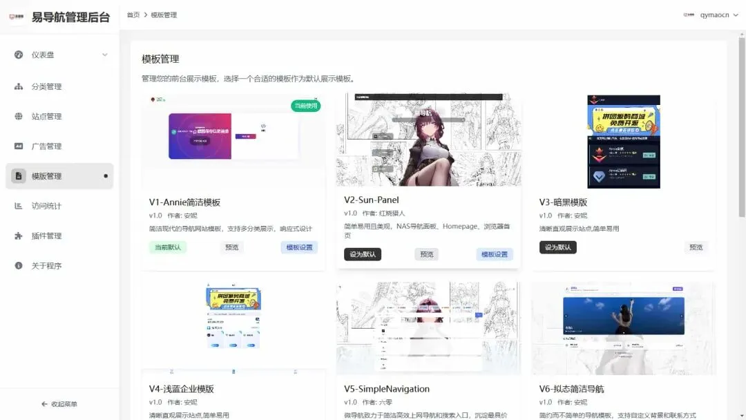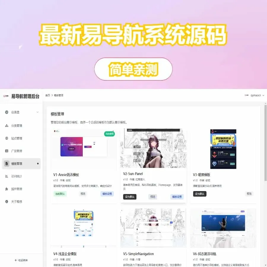 这是一款易导航集合市面大部分导航模板,并且直接给授权去掉了,简单的测试了这款导航系统,体验还是比较不错的,去掉了授权,后台可自定义前端模版,还是不错的导航系统,并且是开源支持二次开发,喜欢的自行部署吧!