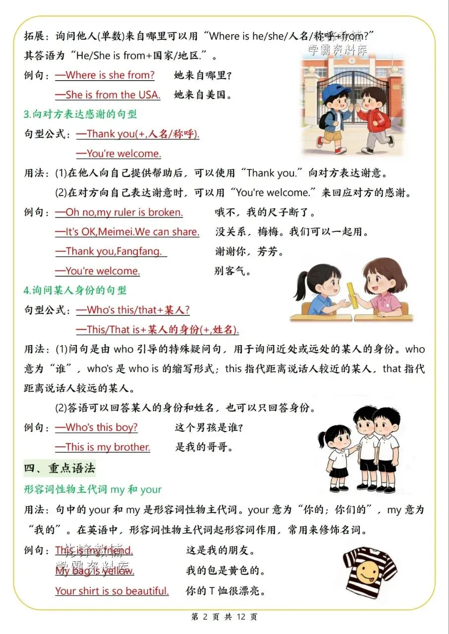 适配人教版教材,按单元系统梳理必记词汇、重点短语、核心句型与语法知识,搭配实用例句、发音指导与场景应用拓展。覆盖日常交流、生活场景等核心内容,逻辑清晰、重点突出,既注重基础知识点的夯实,又兼顾语言应用能力的提升,适配寒假预习使用,助力高效衔接课堂学习。家长快给孩子安排起来吧💪