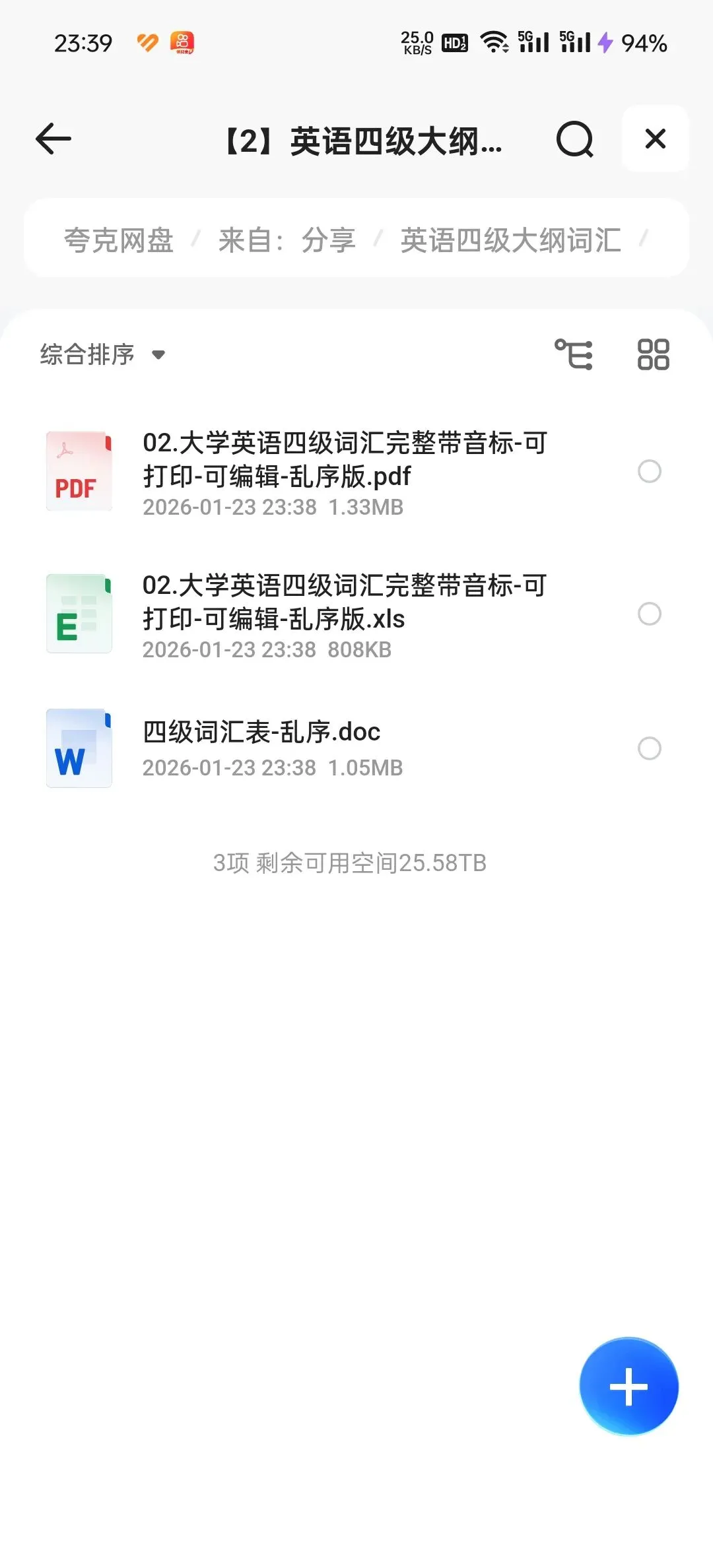 我用夸克网盘给你分享了「英语四级大纲词汇」,点击链接或复制整段内容,打开「夸克APP」即可获取。