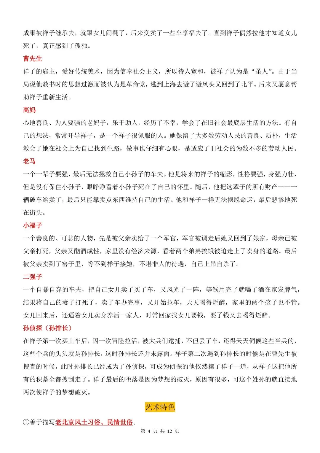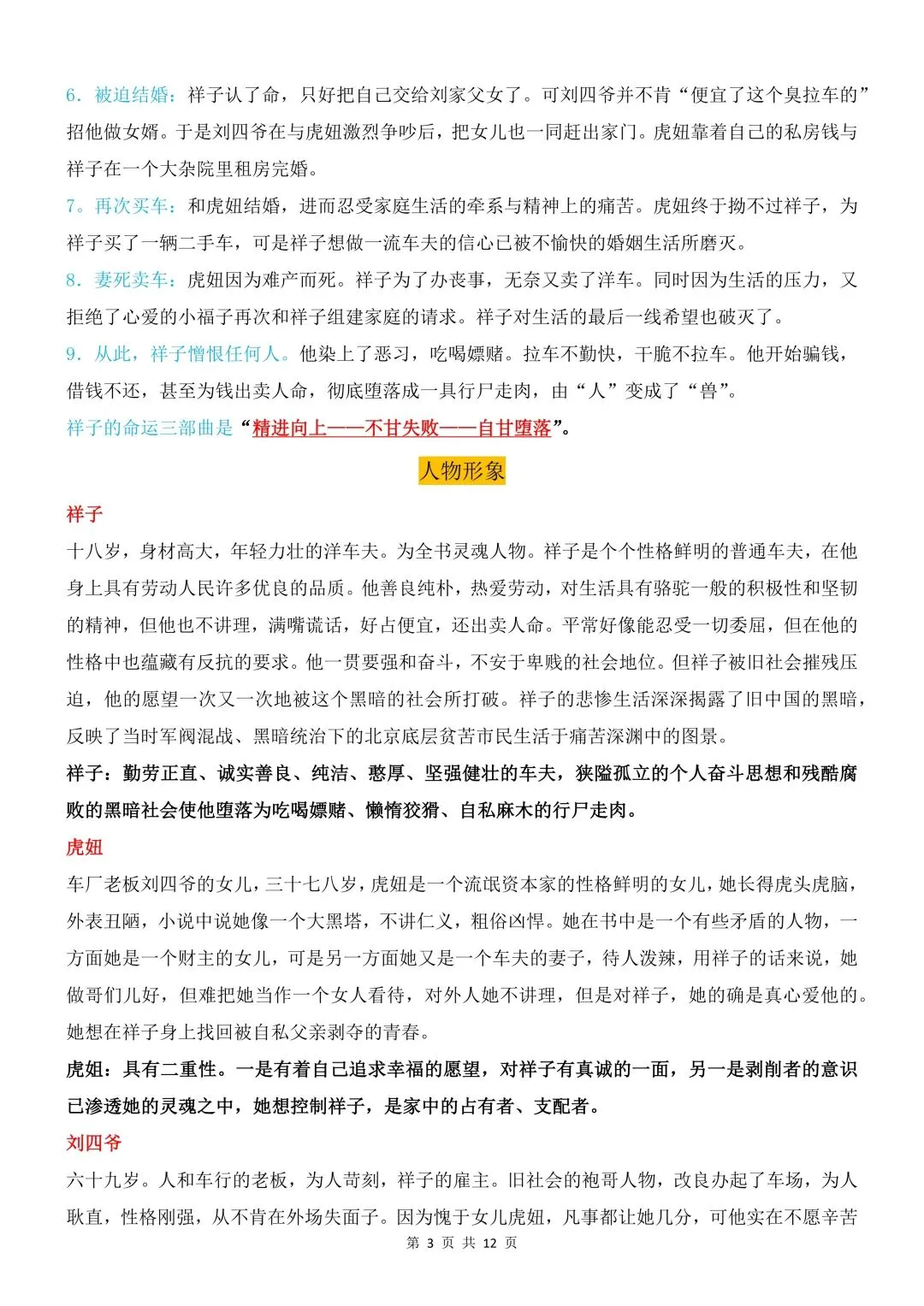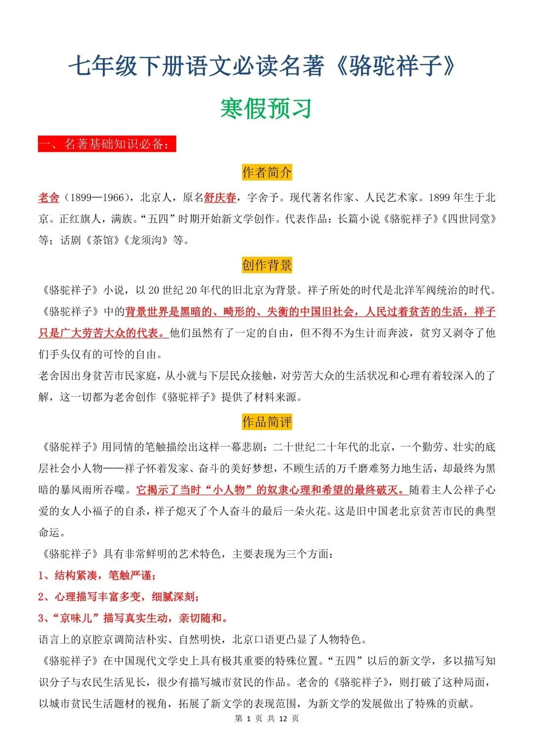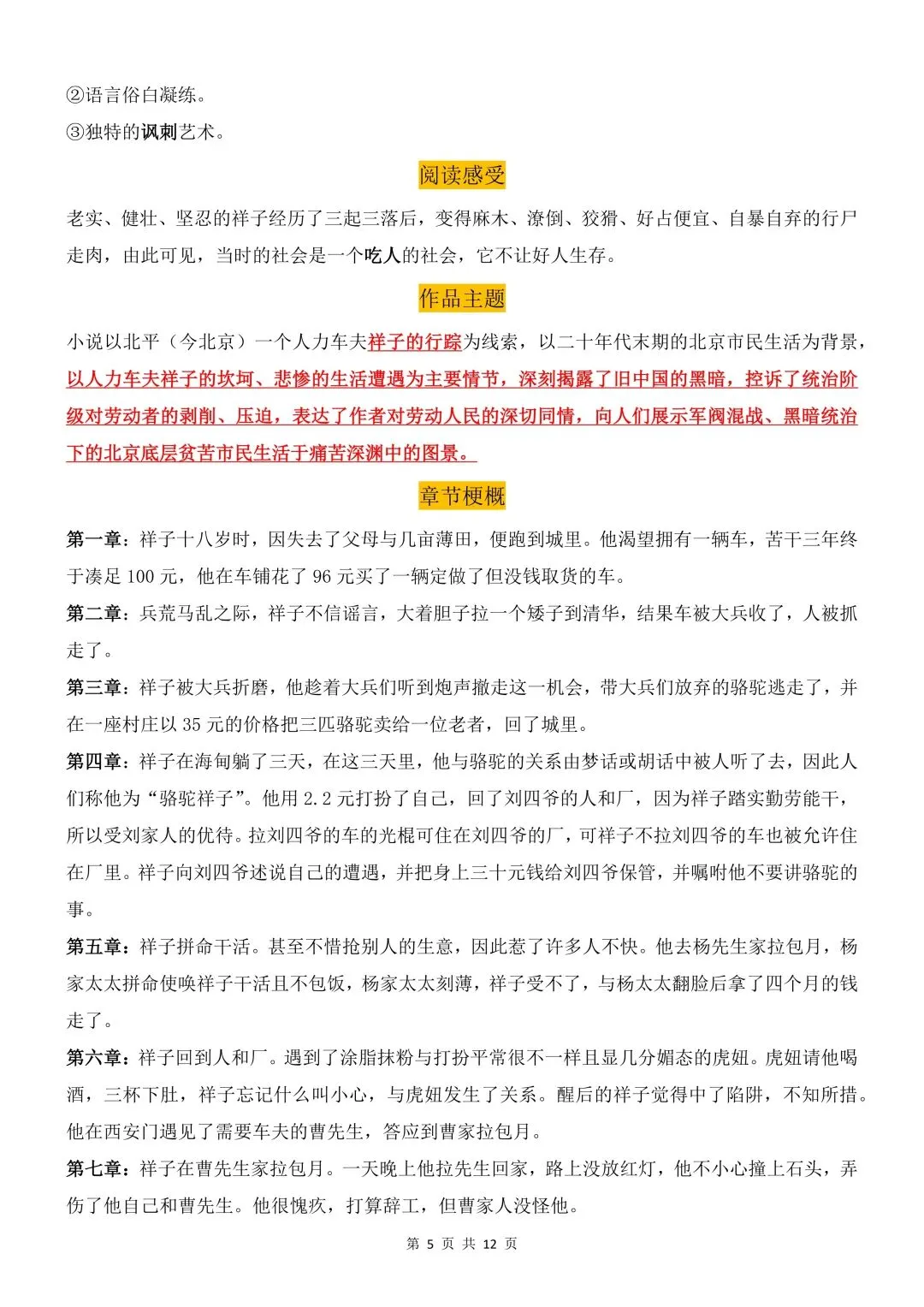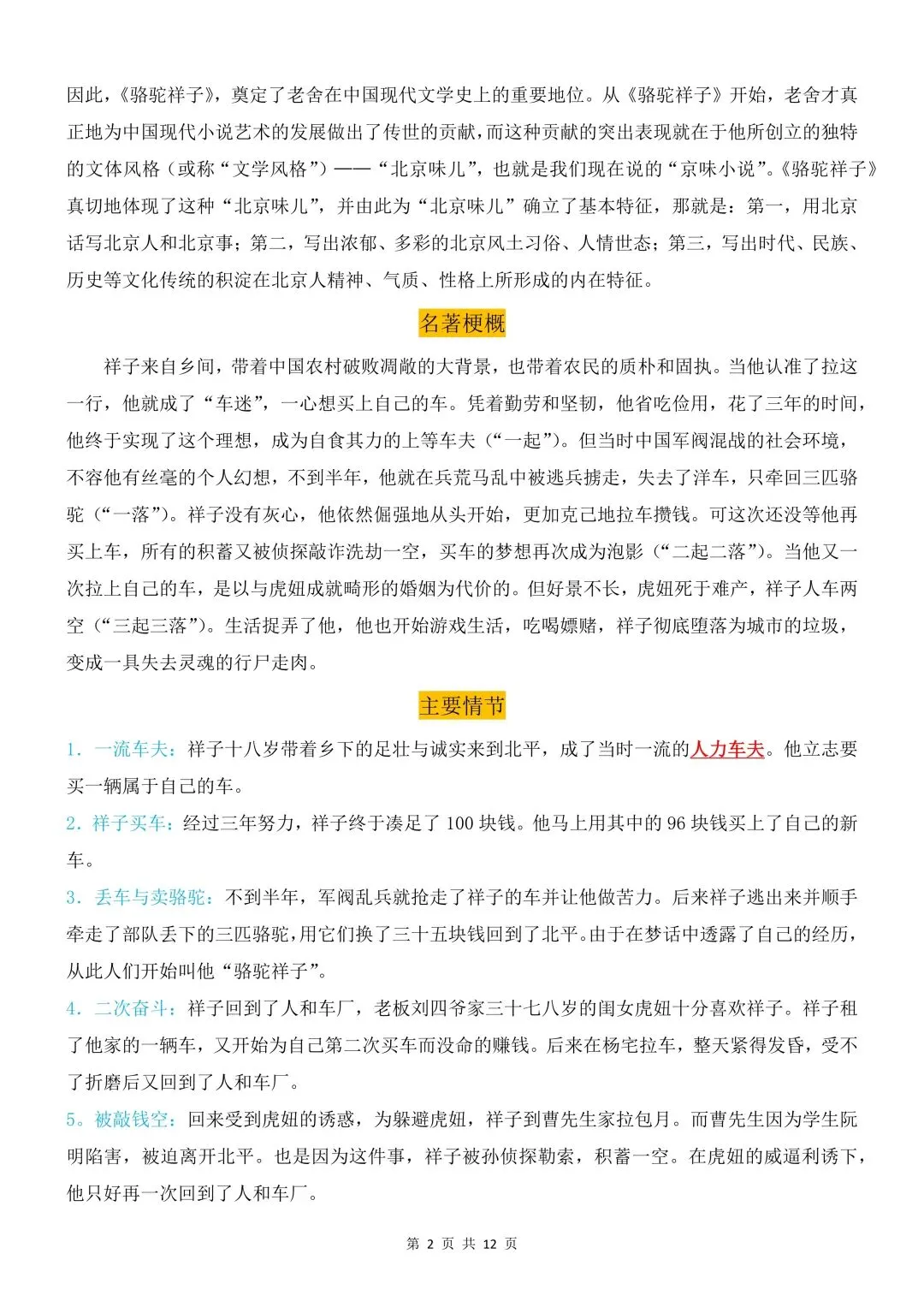 26年春人教(部编版)初一七年级语文下册骆驼祥子知识点梳理共12页丨完整高清可打印(213)