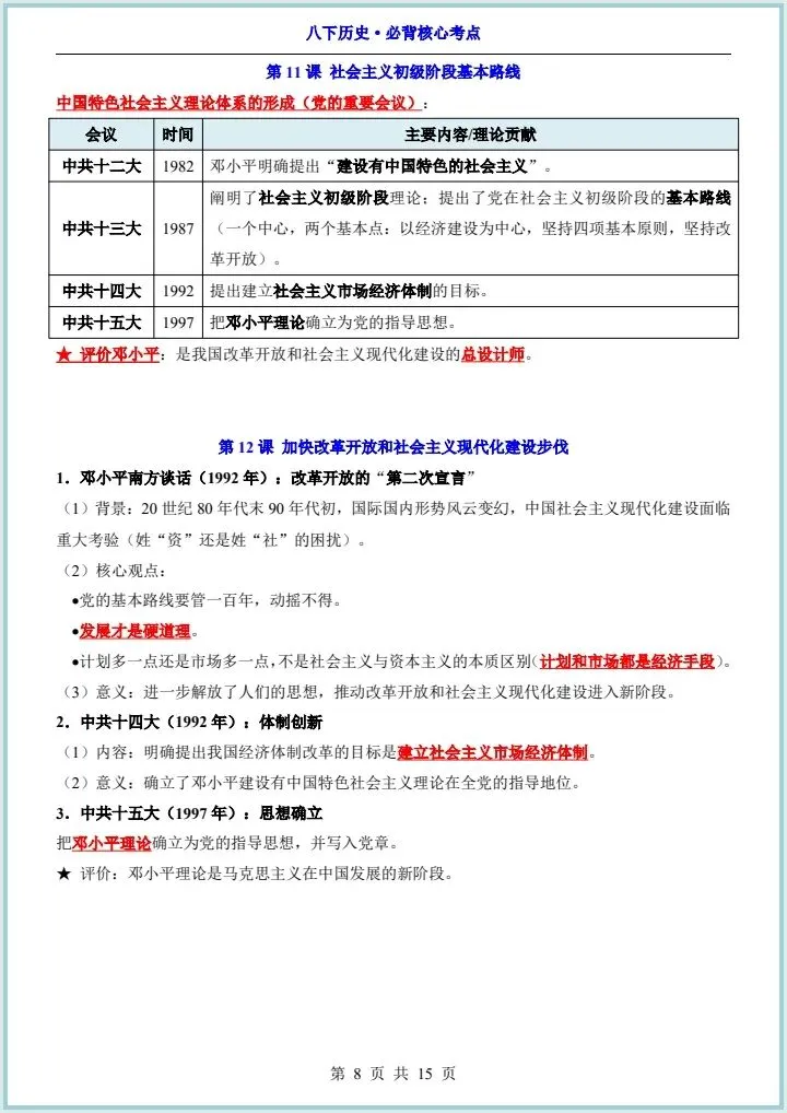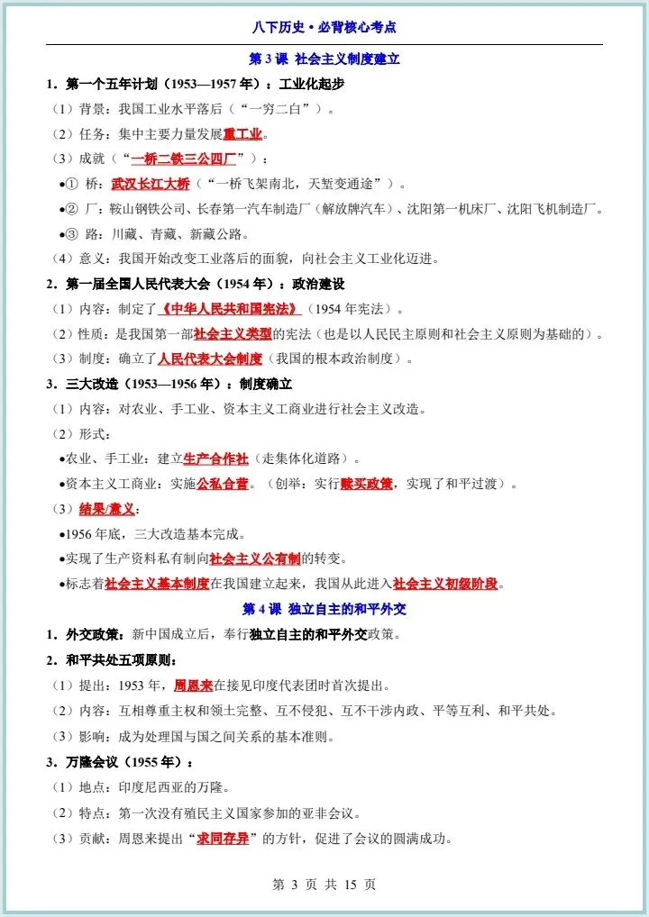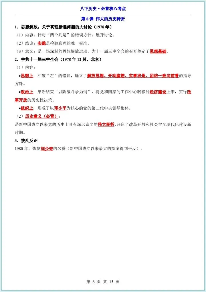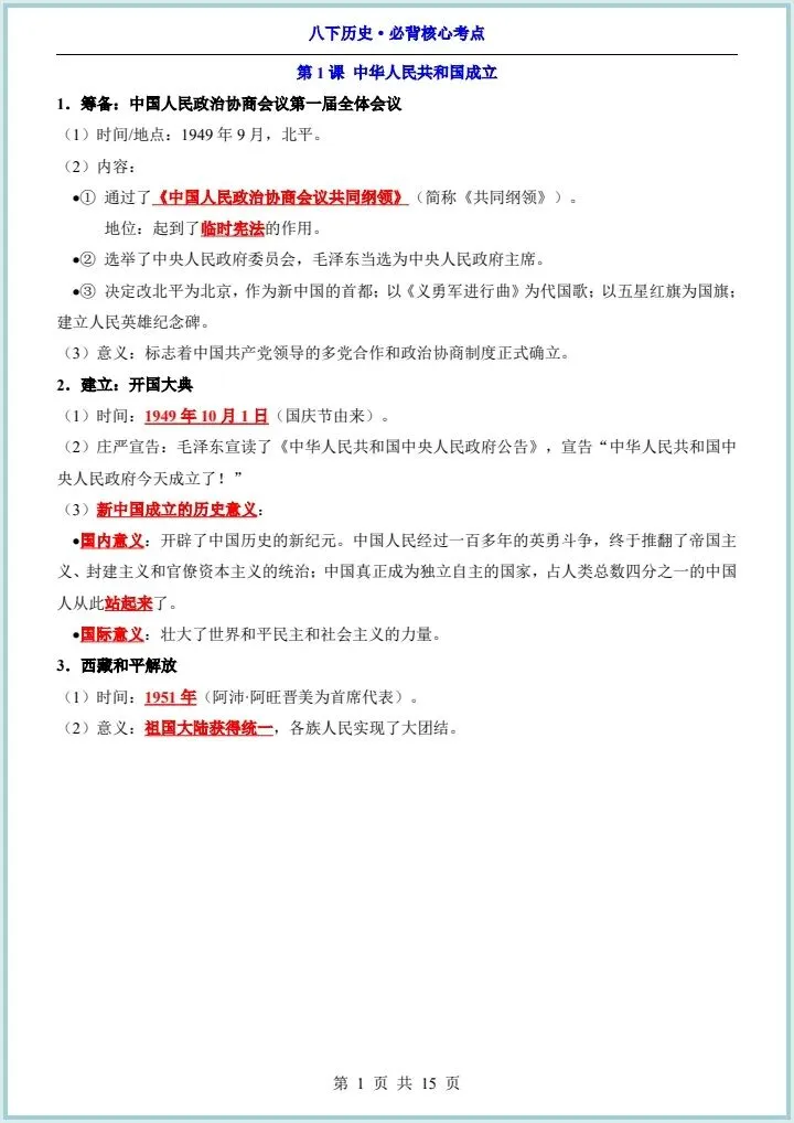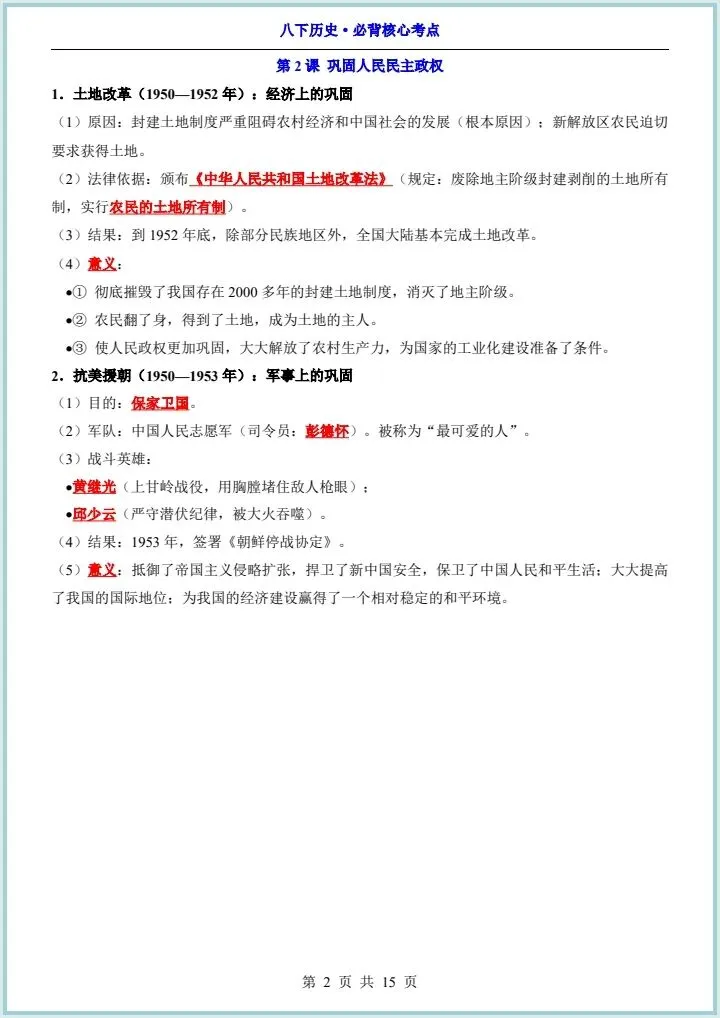 2026最新版八下历史《全册必背核心知识点汇总》,有完整电子版,可下载可打印