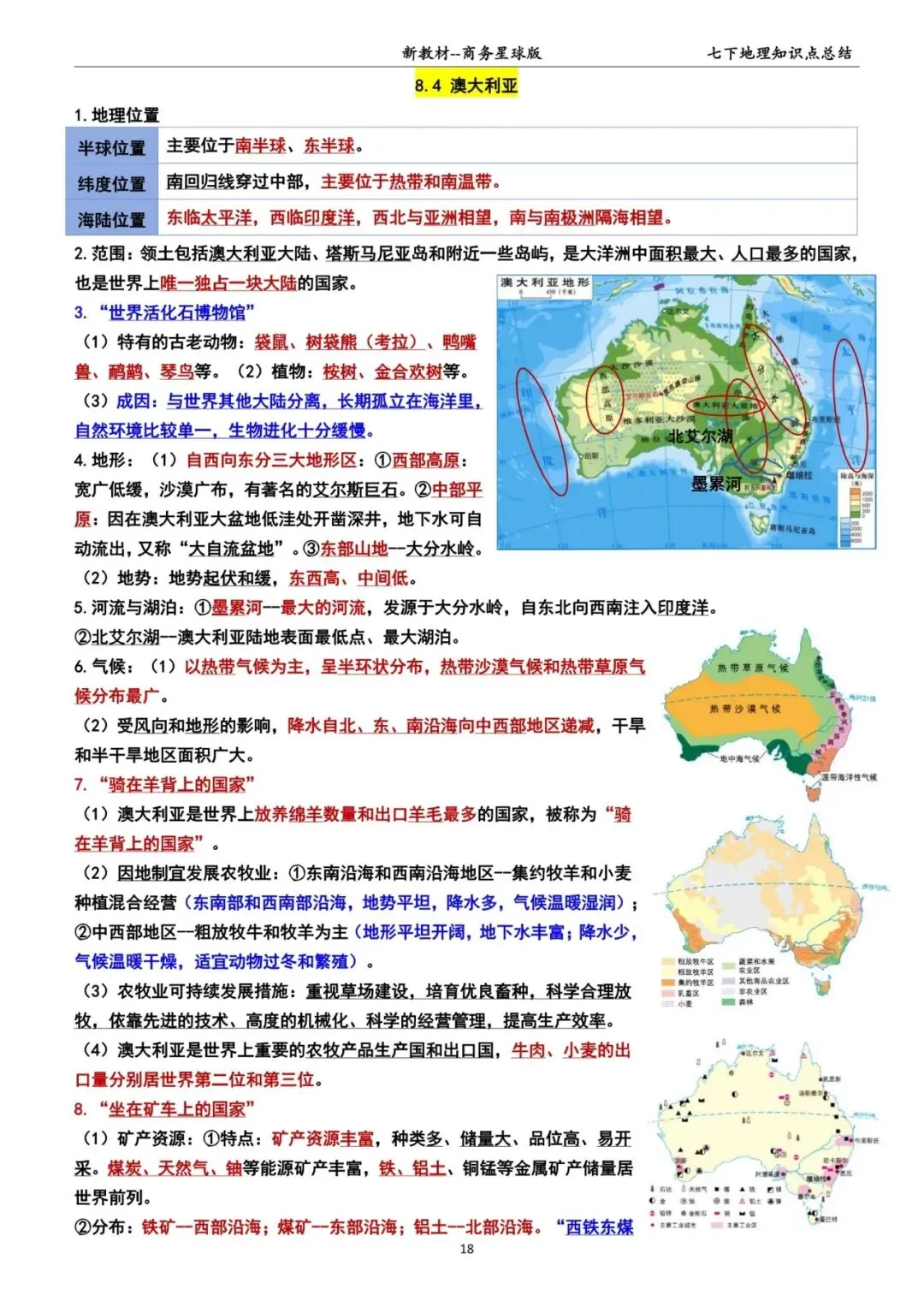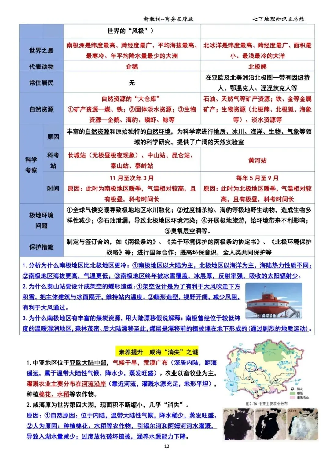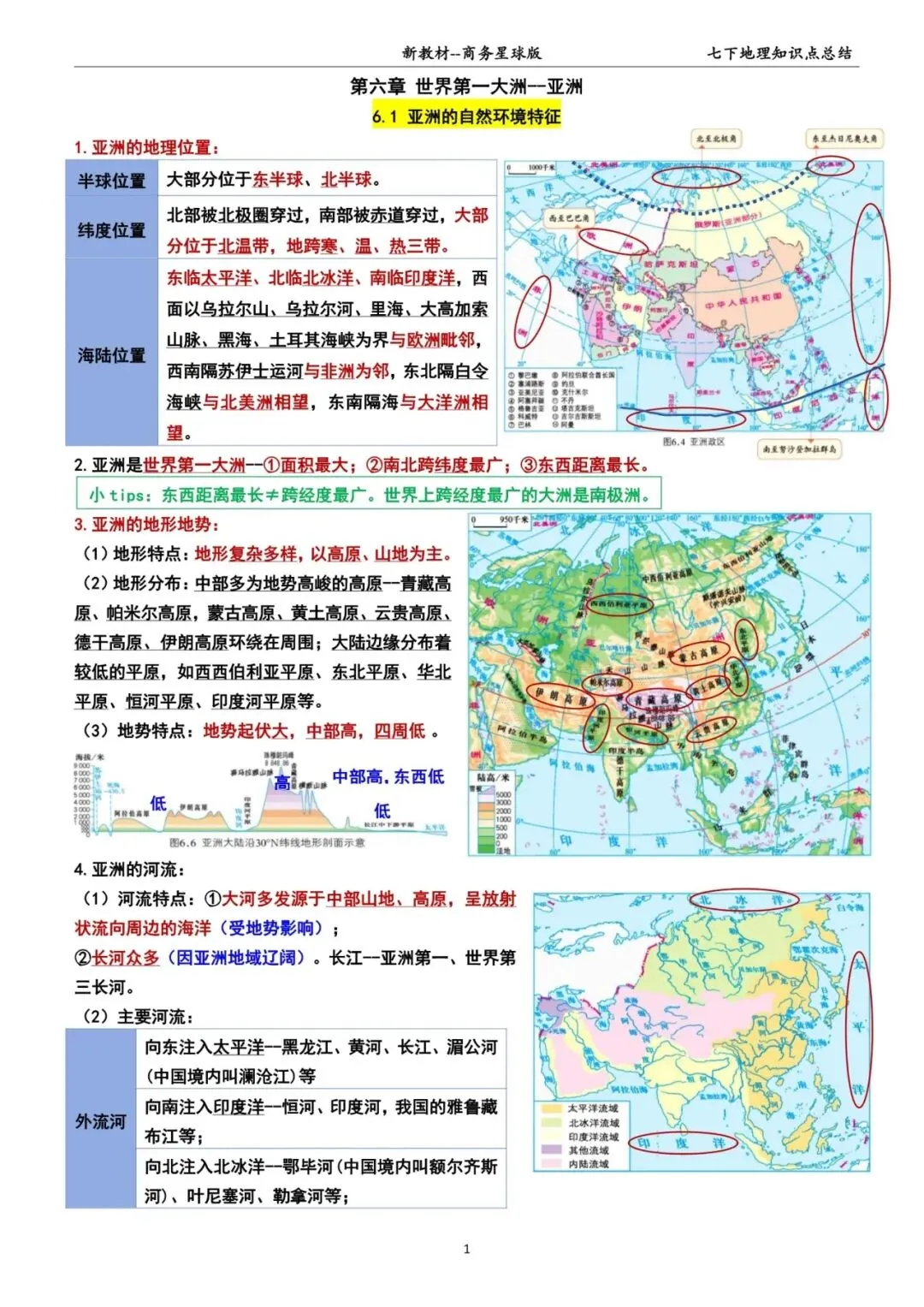 2026年春七年级下册商务星球版地理《知识点总结》,电子版可下载打印.