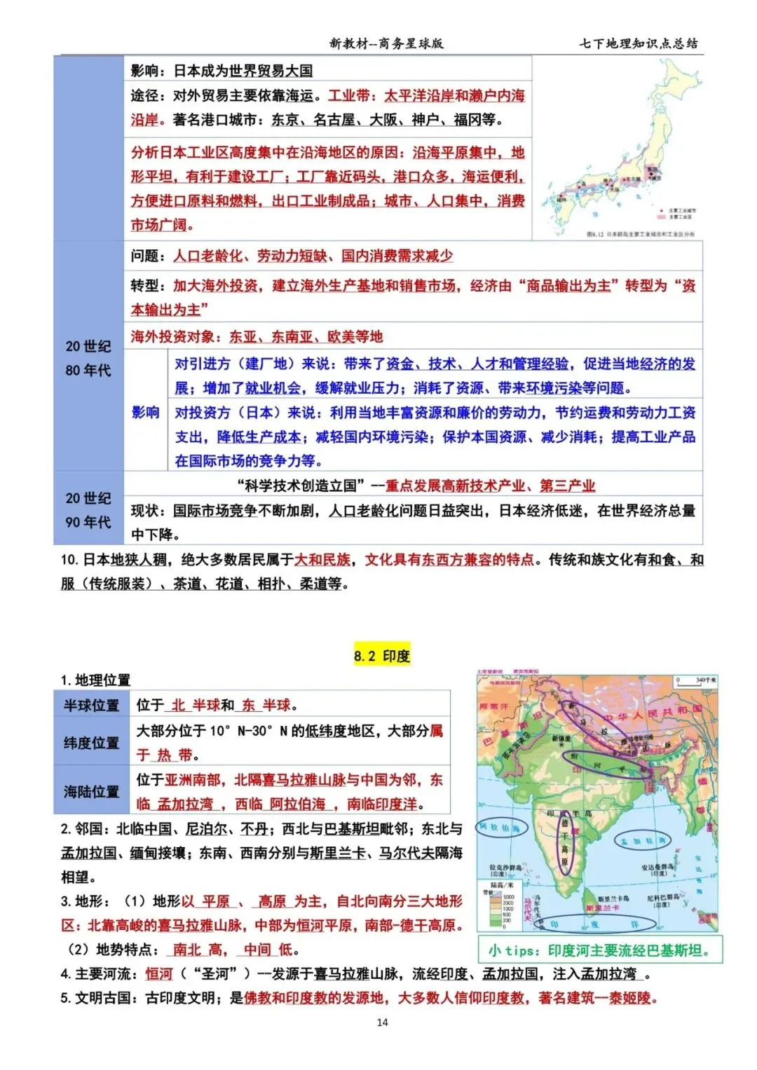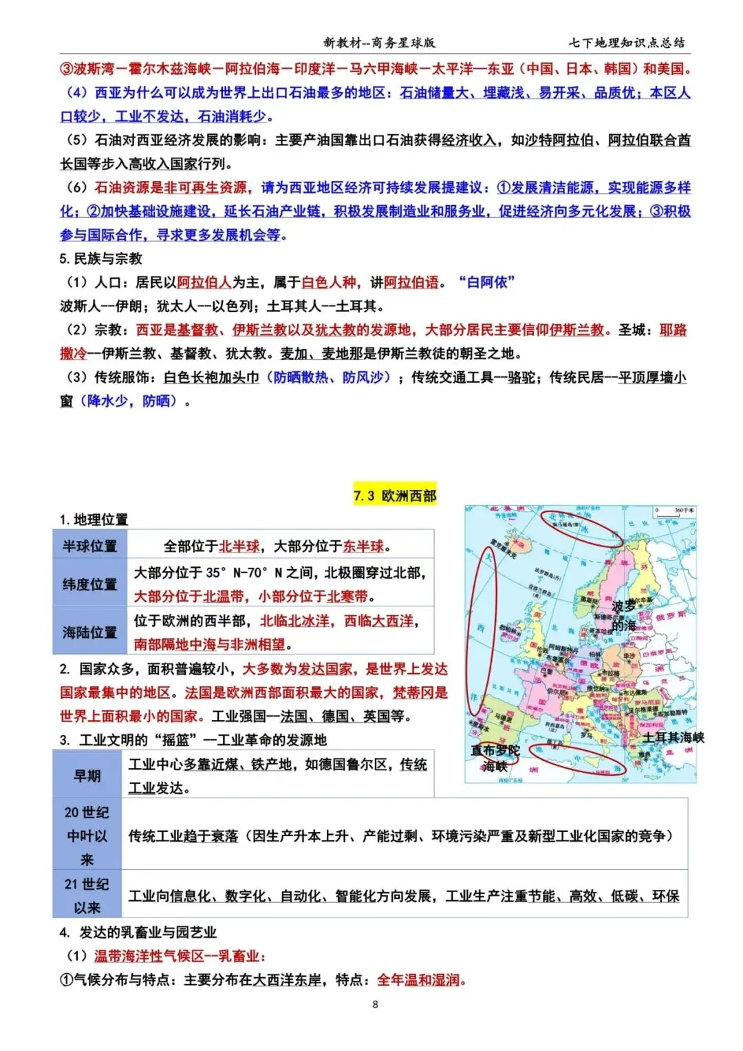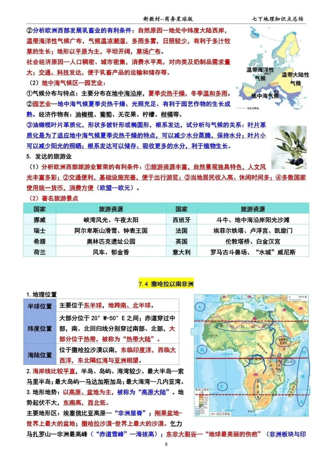 2026年春七年级下册商务星球版地理《知识点总结》,电子版可下载打印.