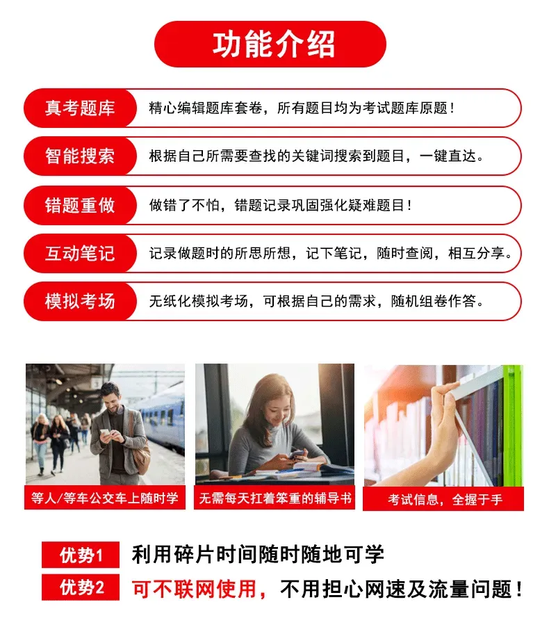 (电脑或手机可离线用) 软件下载安装后,第一次使用需要连接网络,激活和下载题库,平时做题就不用联网,定期联网更新题库就可以了