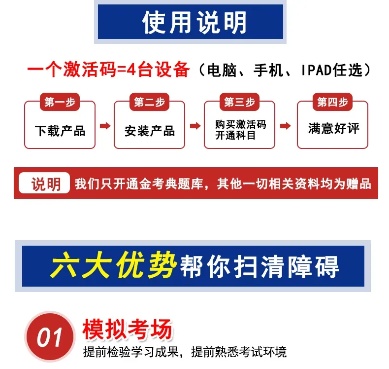 Tips: 如不懂安装使用,可点击【安装教程】查看,找到所需科目后,电脑版本点击“激活”,手机点击“激活软件”输入注册码(请加微信308252680获取永久激活码)。