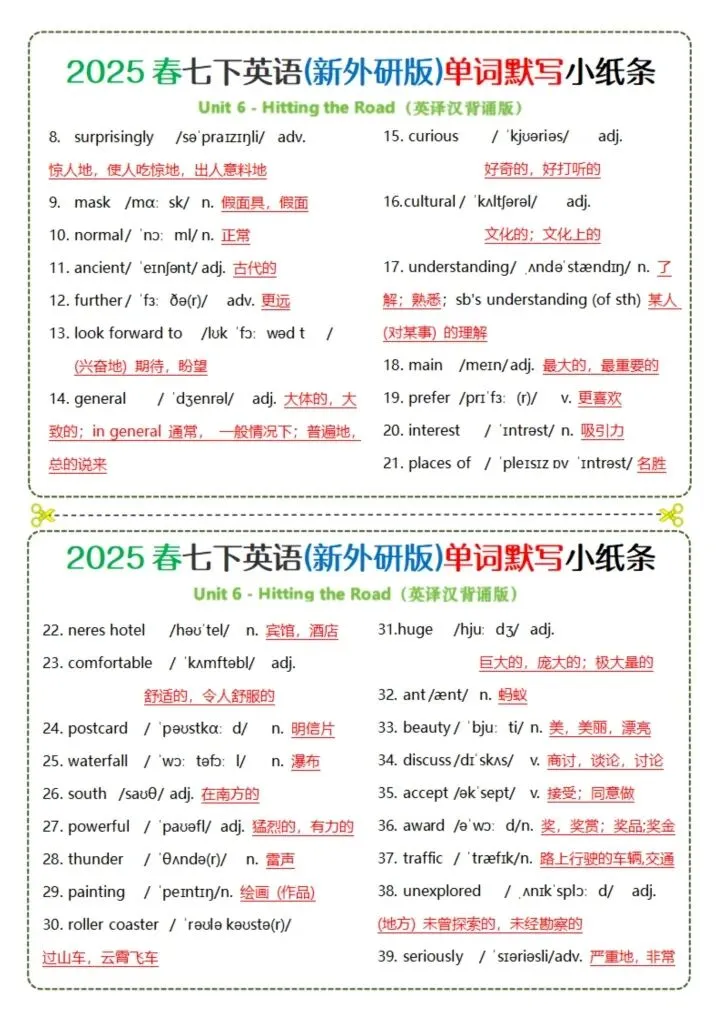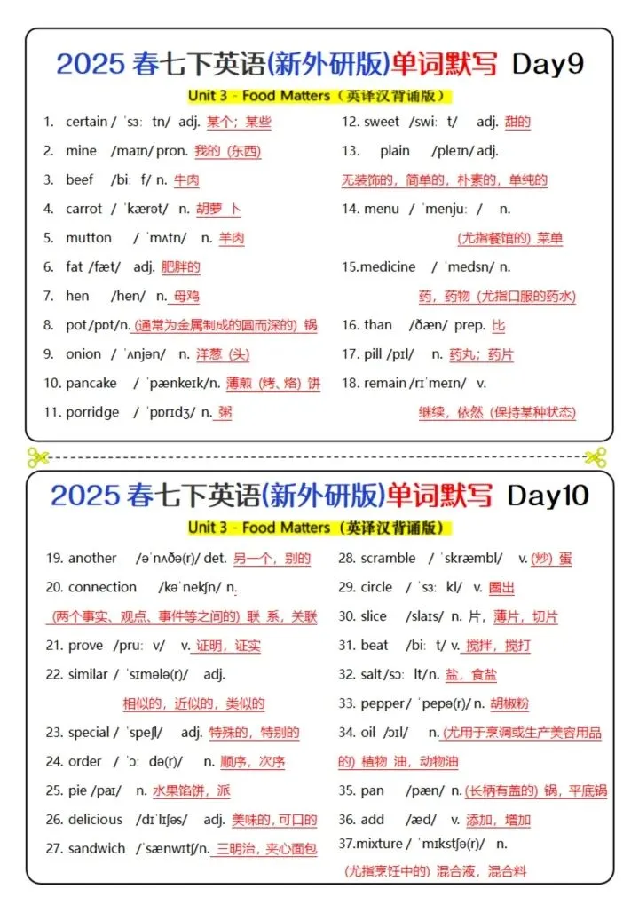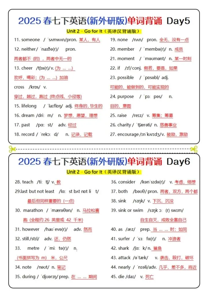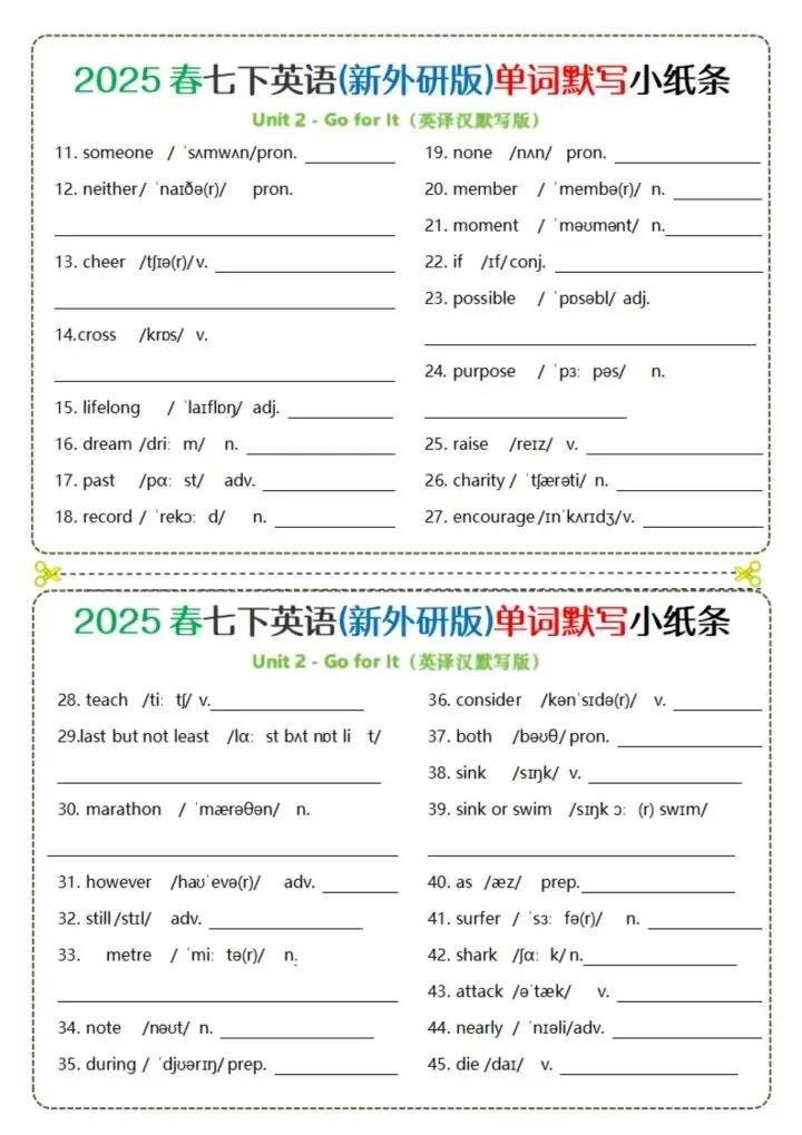 今日分享26新版七下英语(外研版)单词背诵(完整电子版可打印)!所有资料均为高清电子版,排版规整适配打印,不用费心整理,直接打印就能用。精准击破学习难点,帮孩子夯实基础、吃透考点,稳步提升学习效率!