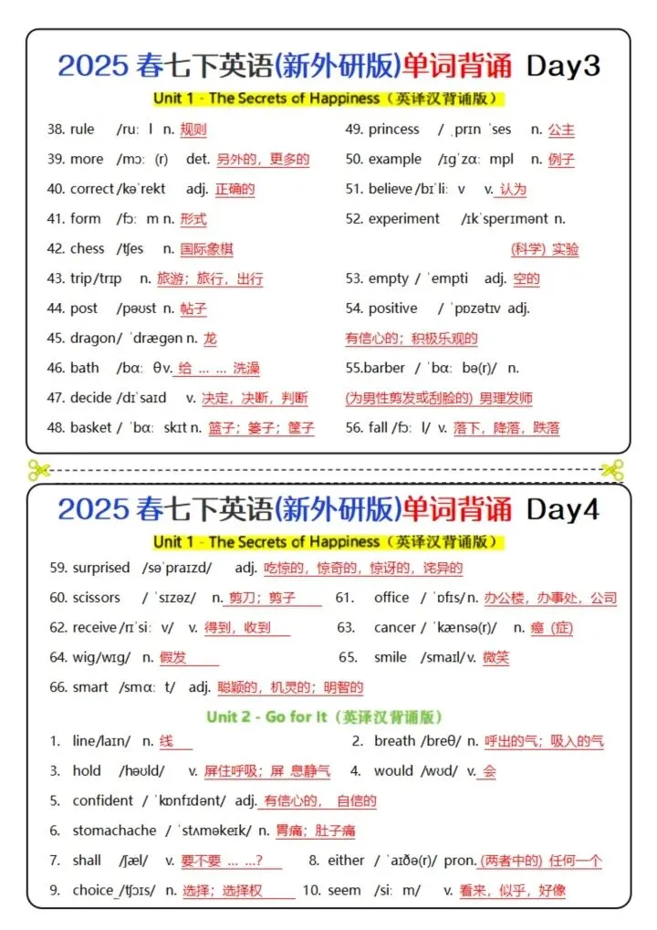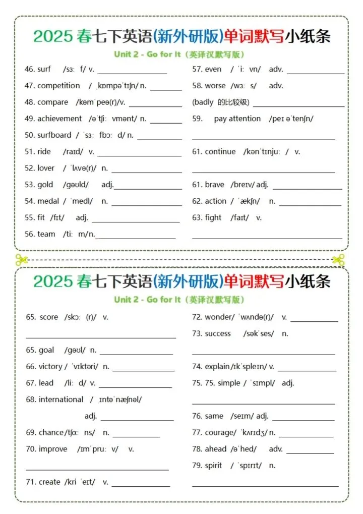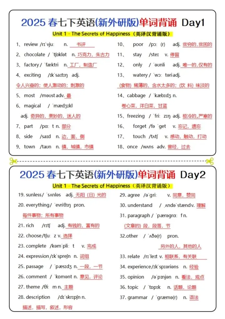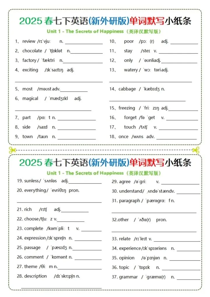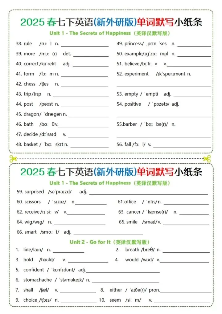 今日分享26新版七下英语(外研版)单词背诵(完整电子版可打印)!所有资料均为高清电子版,排版规整适配打印,不用费心整理,直接打印就能用。精准击破学习难点,帮孩子夯实基础、吃透考点,稳步提升学习效率!