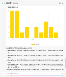 除了文字形式的数据解读,【AI数据问答】还能为你自动生成各种图表,如条形图、柱形图、饼图等。这些图表能够更直观地展示数据之间的关系和趋势,帮助你更快地把握数据背后的含义。
