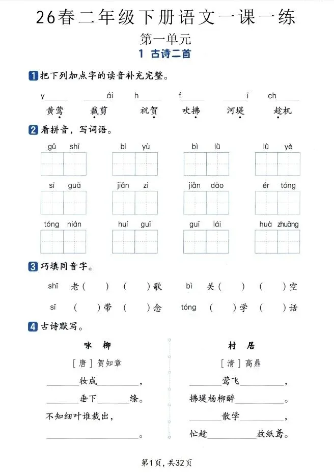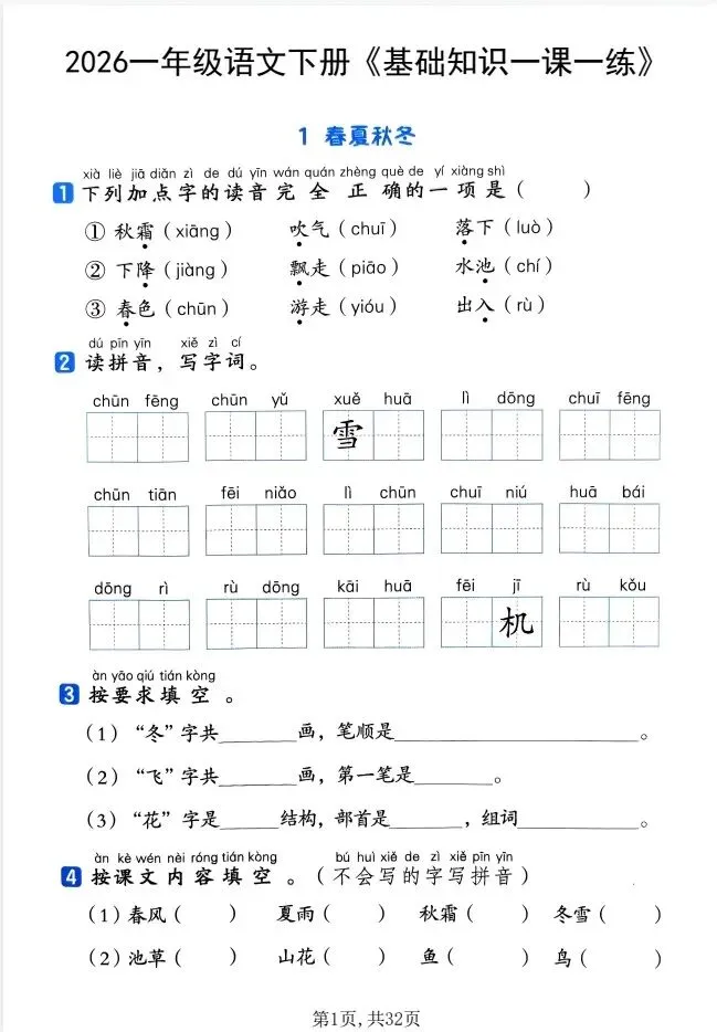 今天给大家整理了26春语文人教《基础知识一课一练》1-6年级,转发给朋友或班级群,受益更多人,帮助孩子学习!