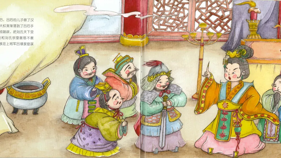 相传,汉高祖刘邦死后,吕后的儿子做了汉惠帝。汉惠帝生性懦弱,大权渐渐落到了吕后手中。惠帝病死后,吕后独揽朝政,把刘氏天下变成了吕氏天下。朝中老臣和刘氏宗室敢怒不敢言。吕后病逝后,吕氏家族在上将军吕禄家密谋作乱,想夺取刘氏江山。