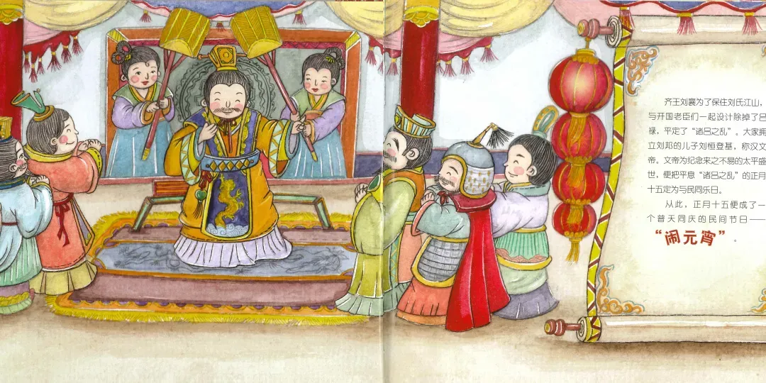 齐王刘襄为了保住刘氏江山,与开国老臣们一起设计除掉了吕禄,平定了“诸吕之乱”。大家拥立刘邦的儿子刘恒登基,称汉文帝。文帝为纪念来之不易的太平盛世,便把平息“诸吕之乱”的正月十五定为与民同乐日。