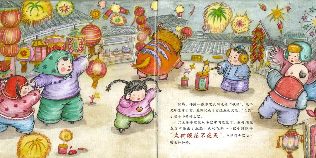 突然,伴随着一连串震天动地的“咆哮”,几个火球直冲云霄,随即化成千百道五色火光,“点燃”了整个小镇的上空。