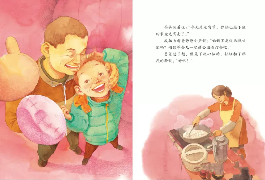 爸爸笑着说:“ 今天是元宵节,你妈已经下班回家煮元宵去了。”