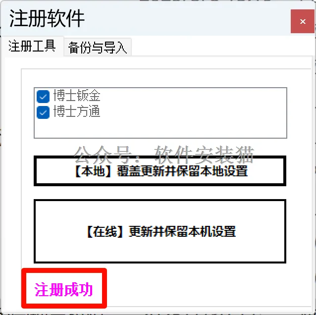 5.显示【注册成功】,说明安装成功!