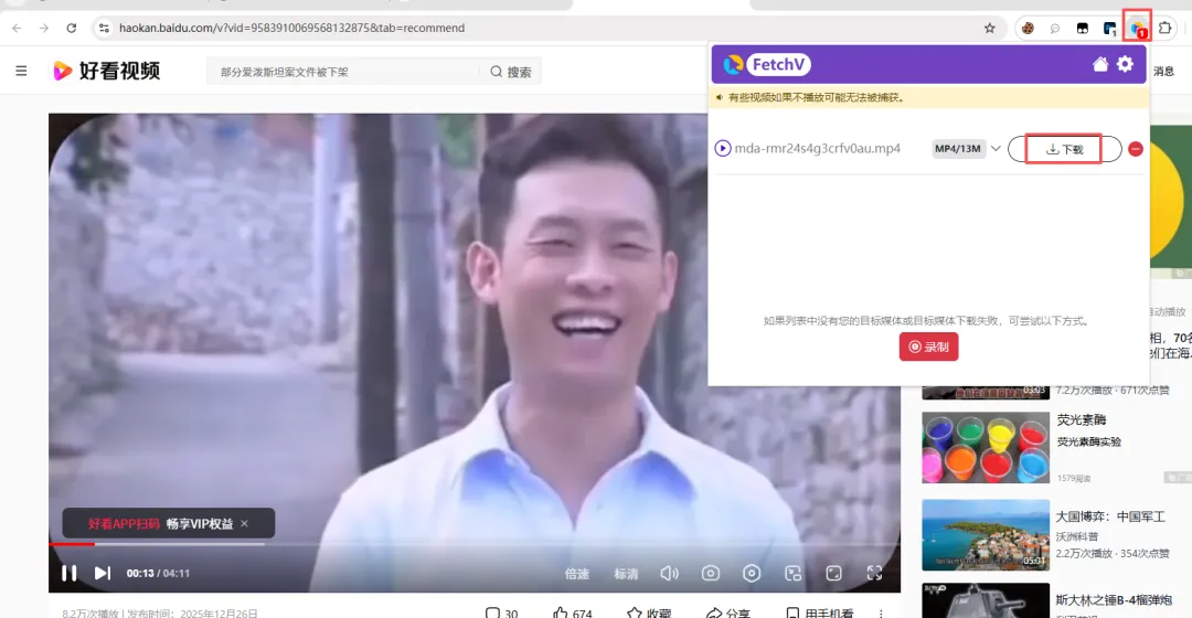 [软件名称]:FetchV [软件大小]:0.4MB [系统要求]:chrome浏览器 |