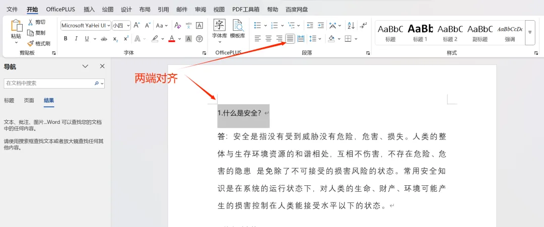 – 两端对齐:选中段落,点击“两端对齐”按钮,也可按Ctrl+J。