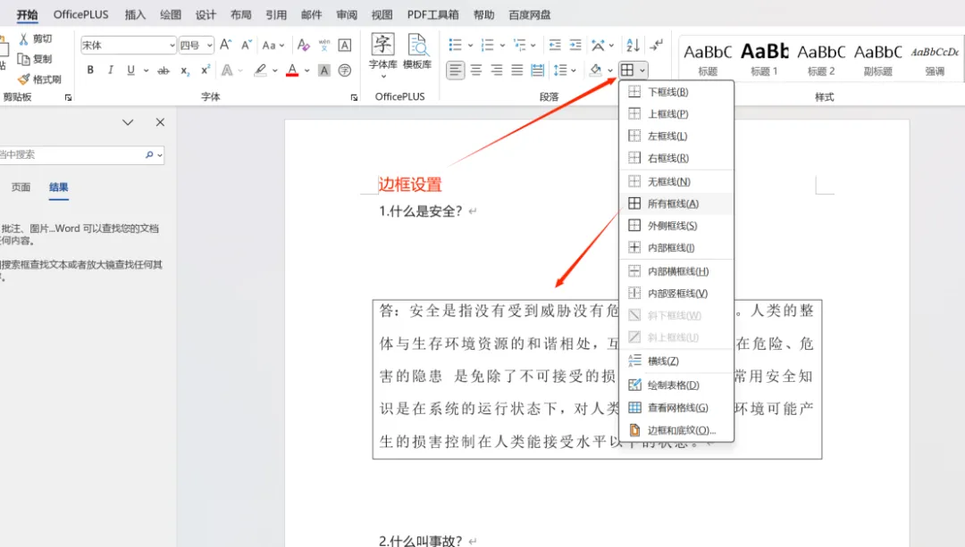 – 添加边框:选中段落,在“开始”选项卡的“段落”组中,点击“边框”按钮,选择所需的边框样式、颜色和应用范围。