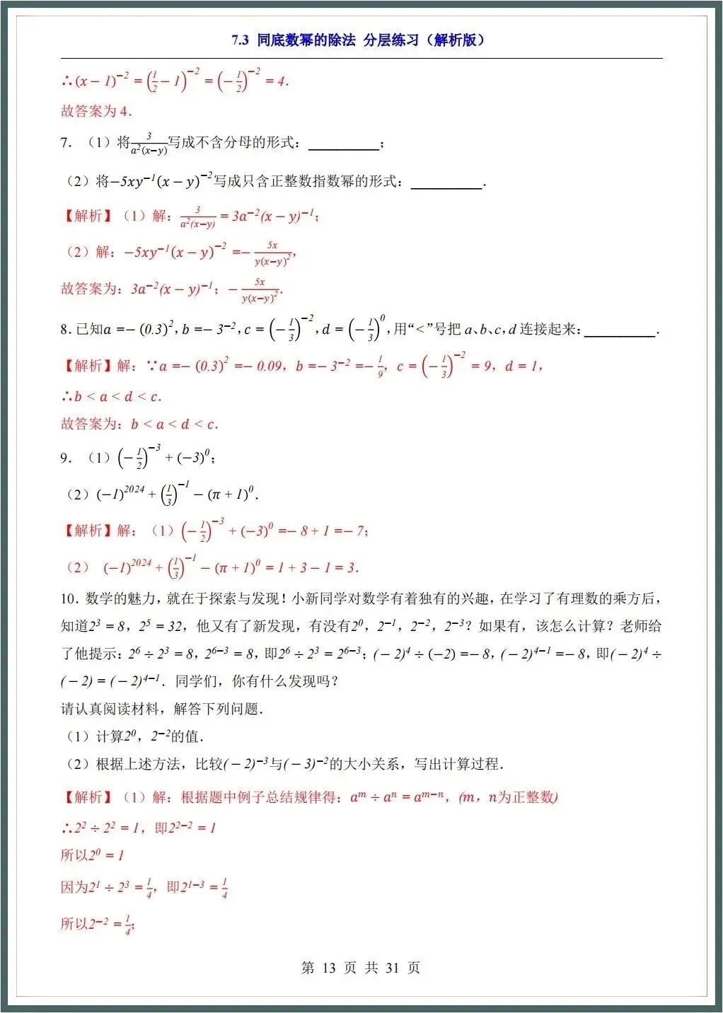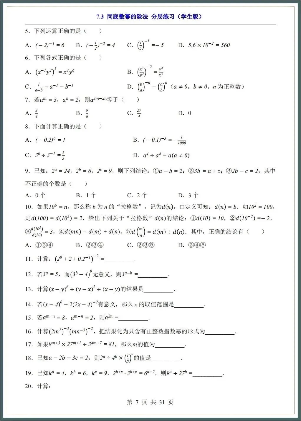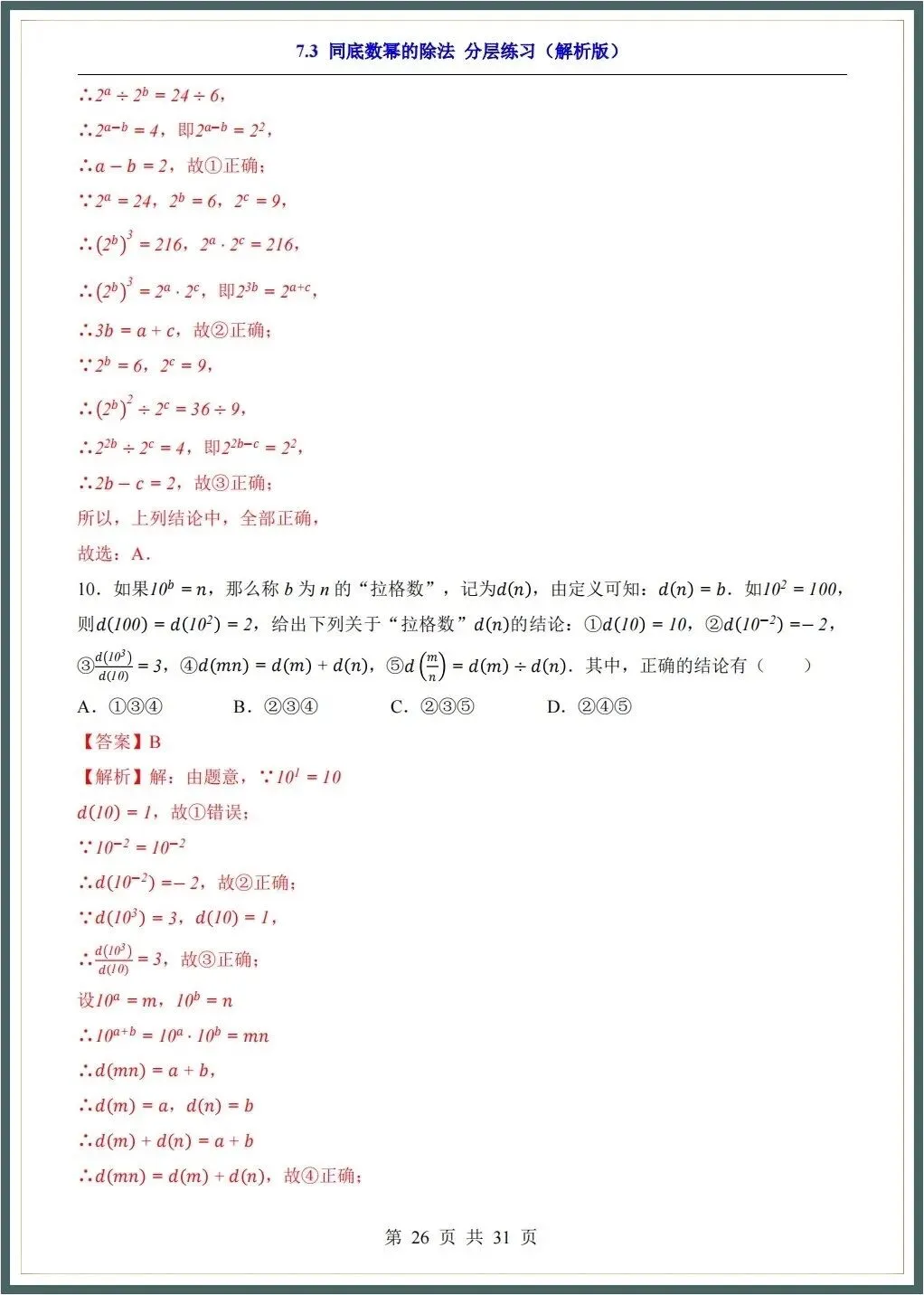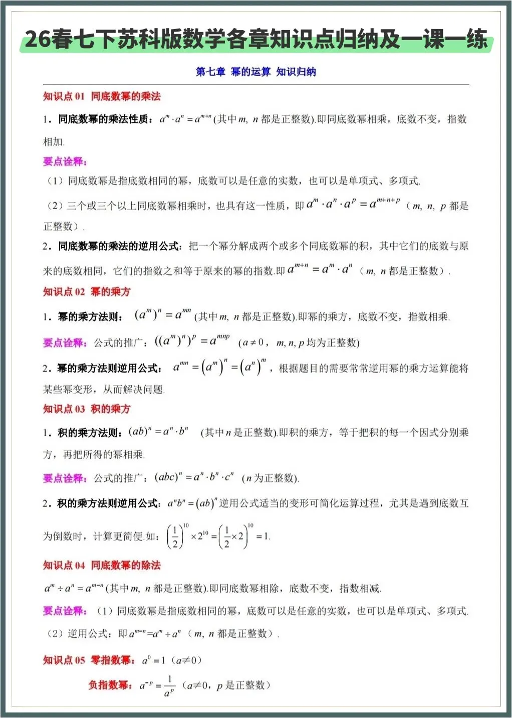 🌟2026春新苏科版七年级下册数学各章知识点归纳+一课一练(附答案),完整电子版可下载打印