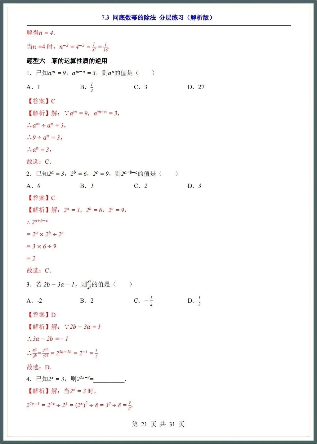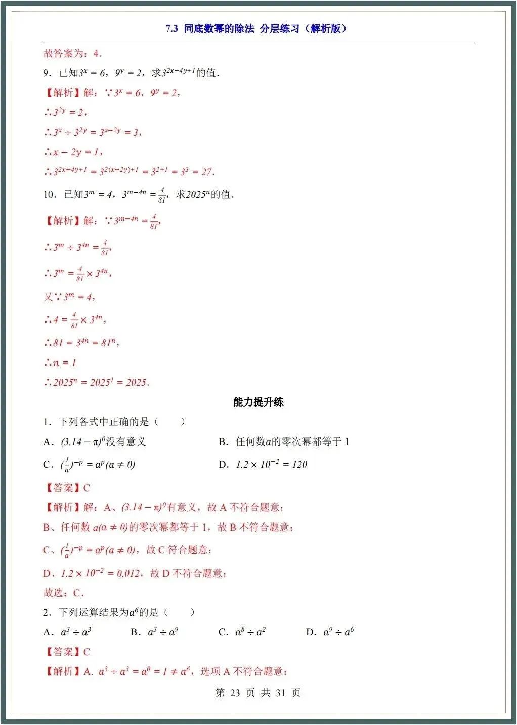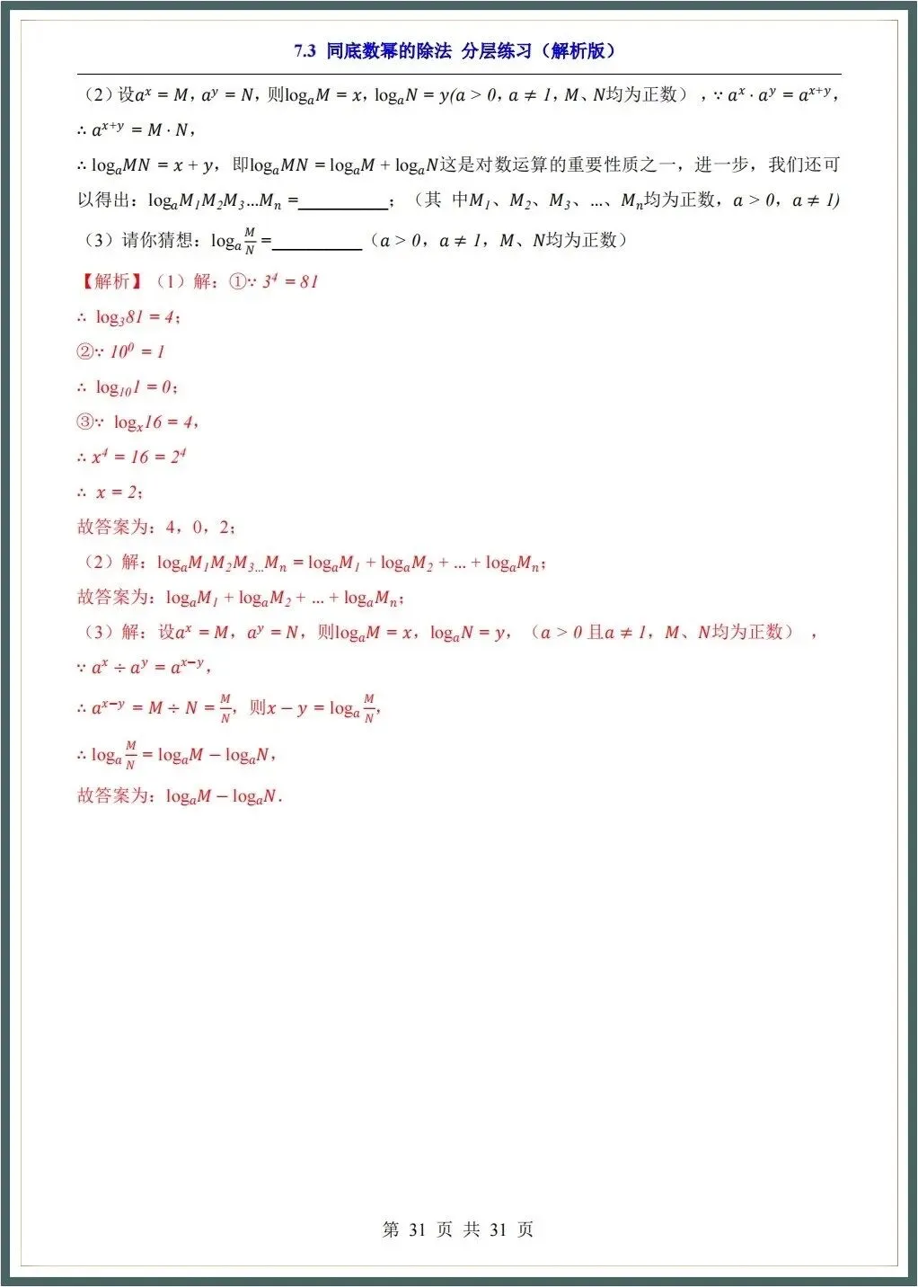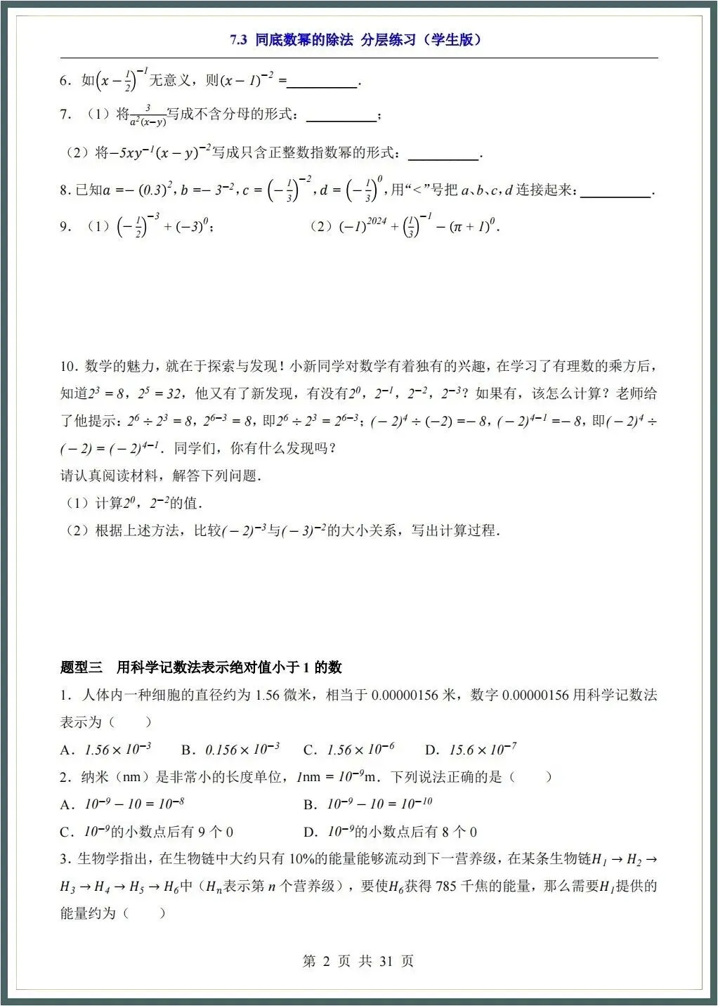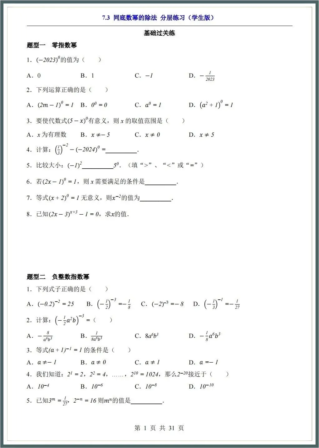 🌟2026春新苏科版七年级下册数学各章知识点归纳+一课一练(附答案),完整电子版可下载打印