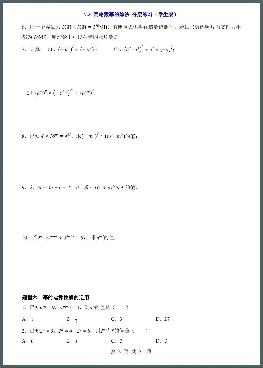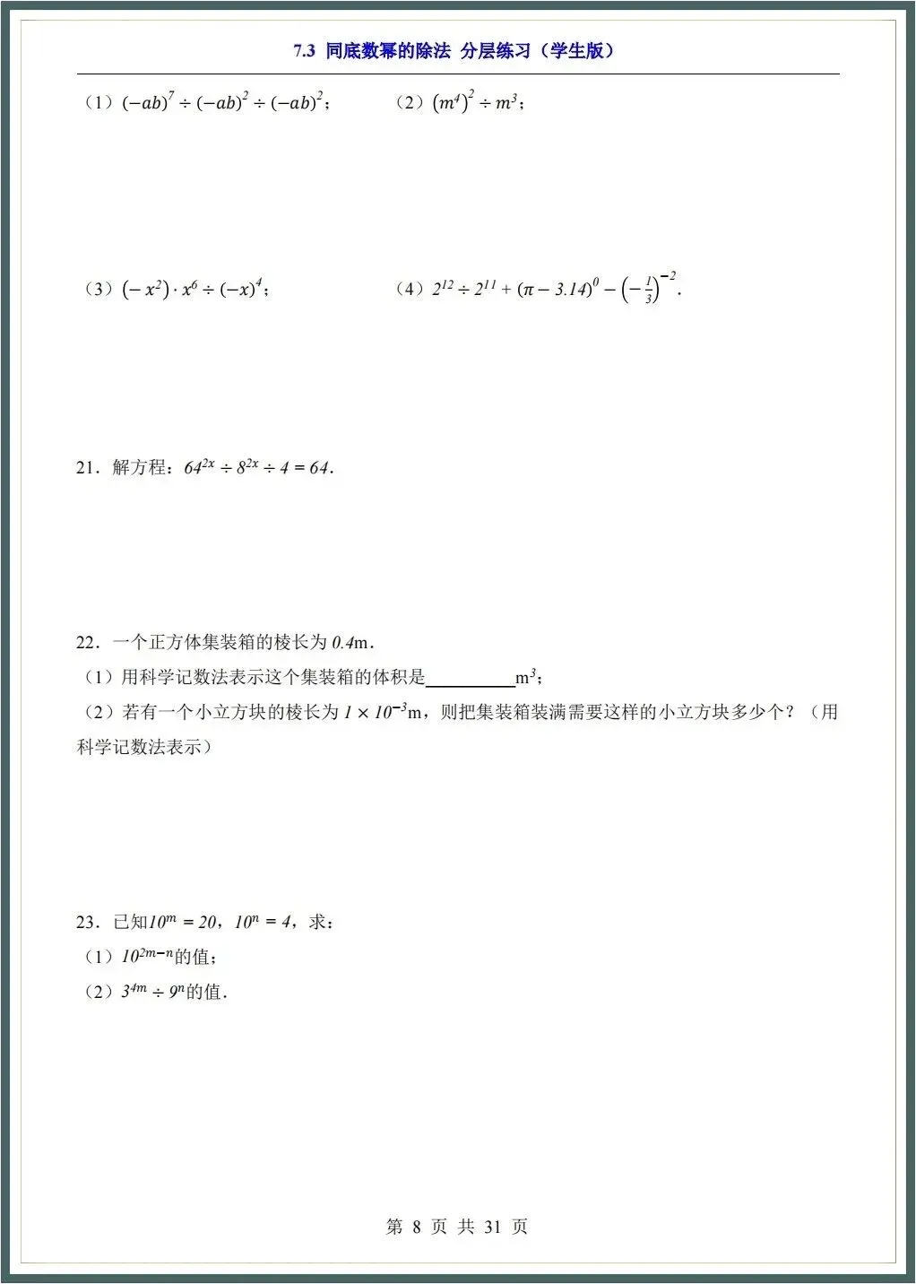 【寒假预习】2026春新苏科版七年级下册数学各章知识点归纳+一课一练(附答案),完整可下载打印