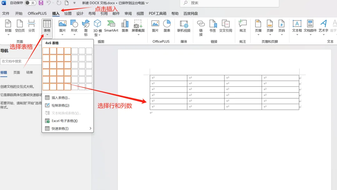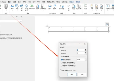 也可选择“插入表格”,在弹出的对话框中输入行数和列数后点击“确定”。